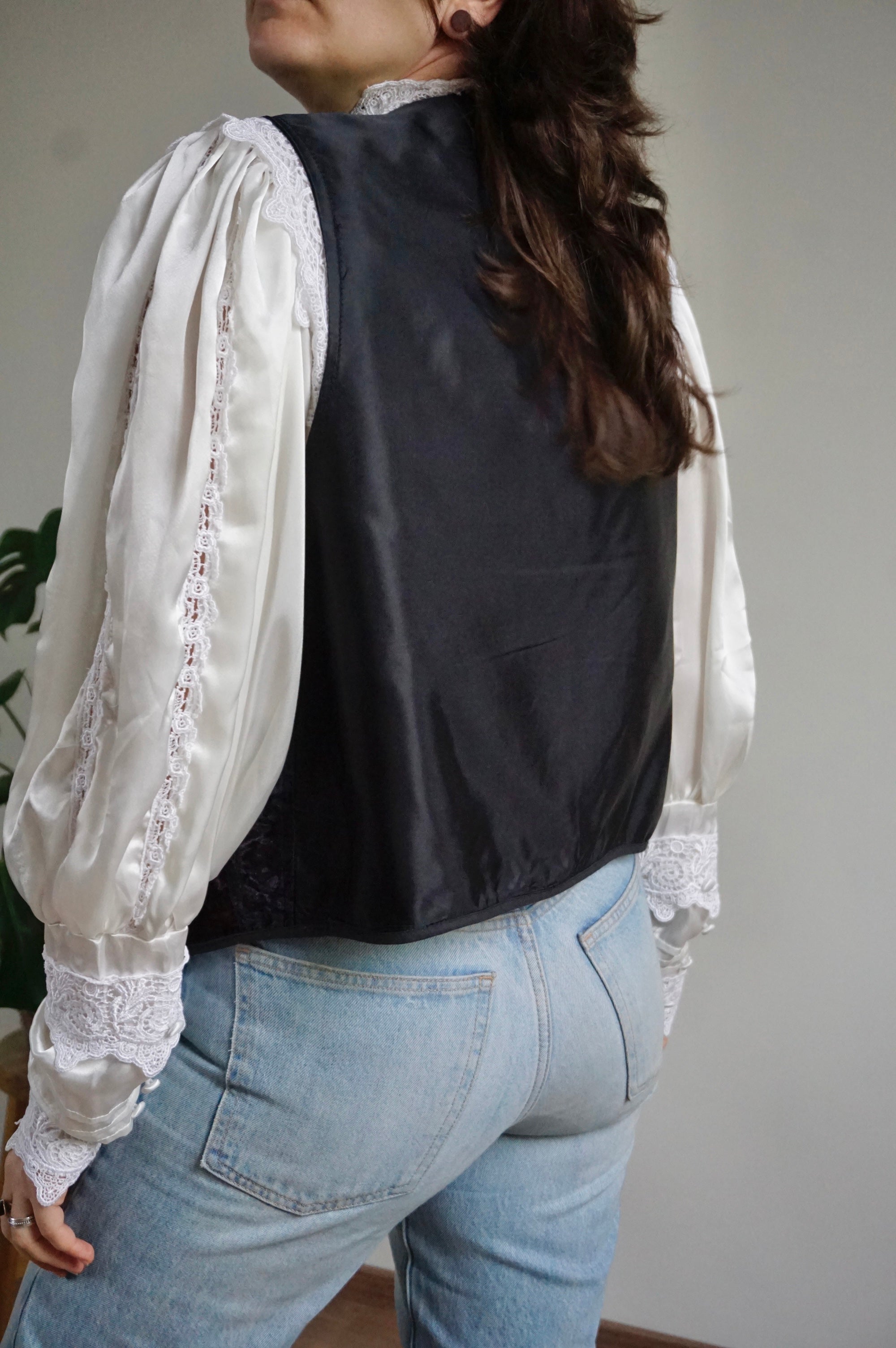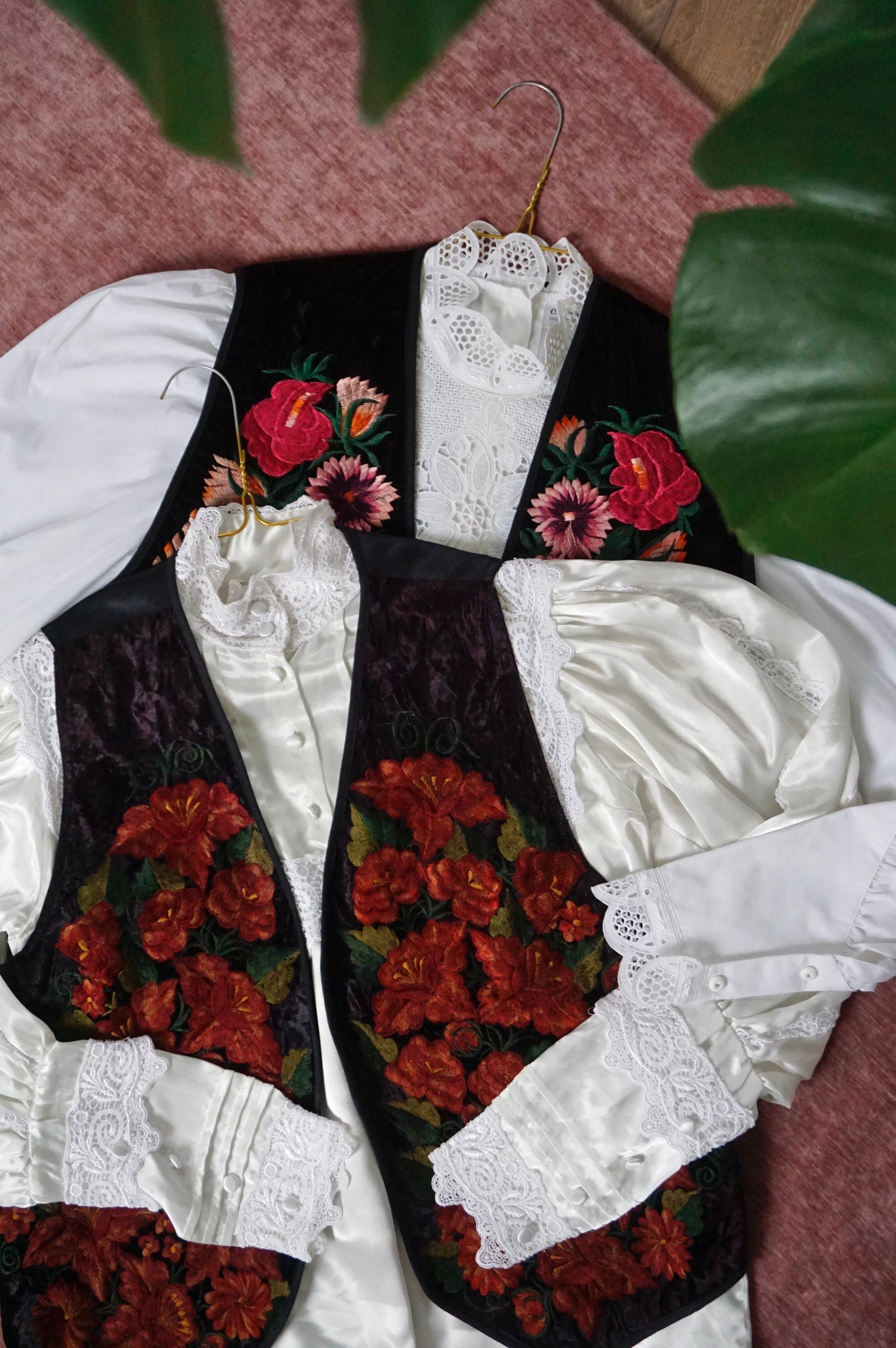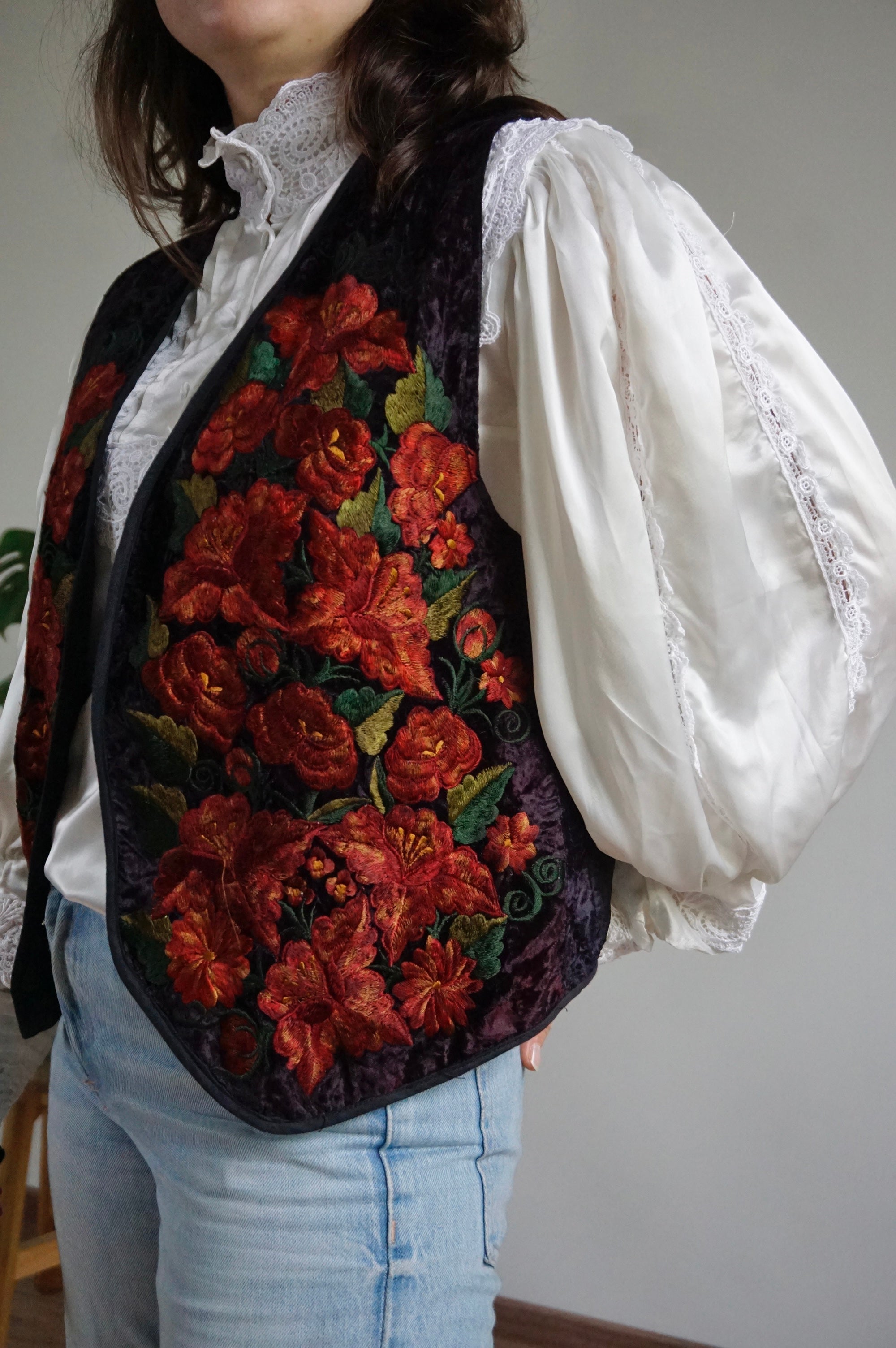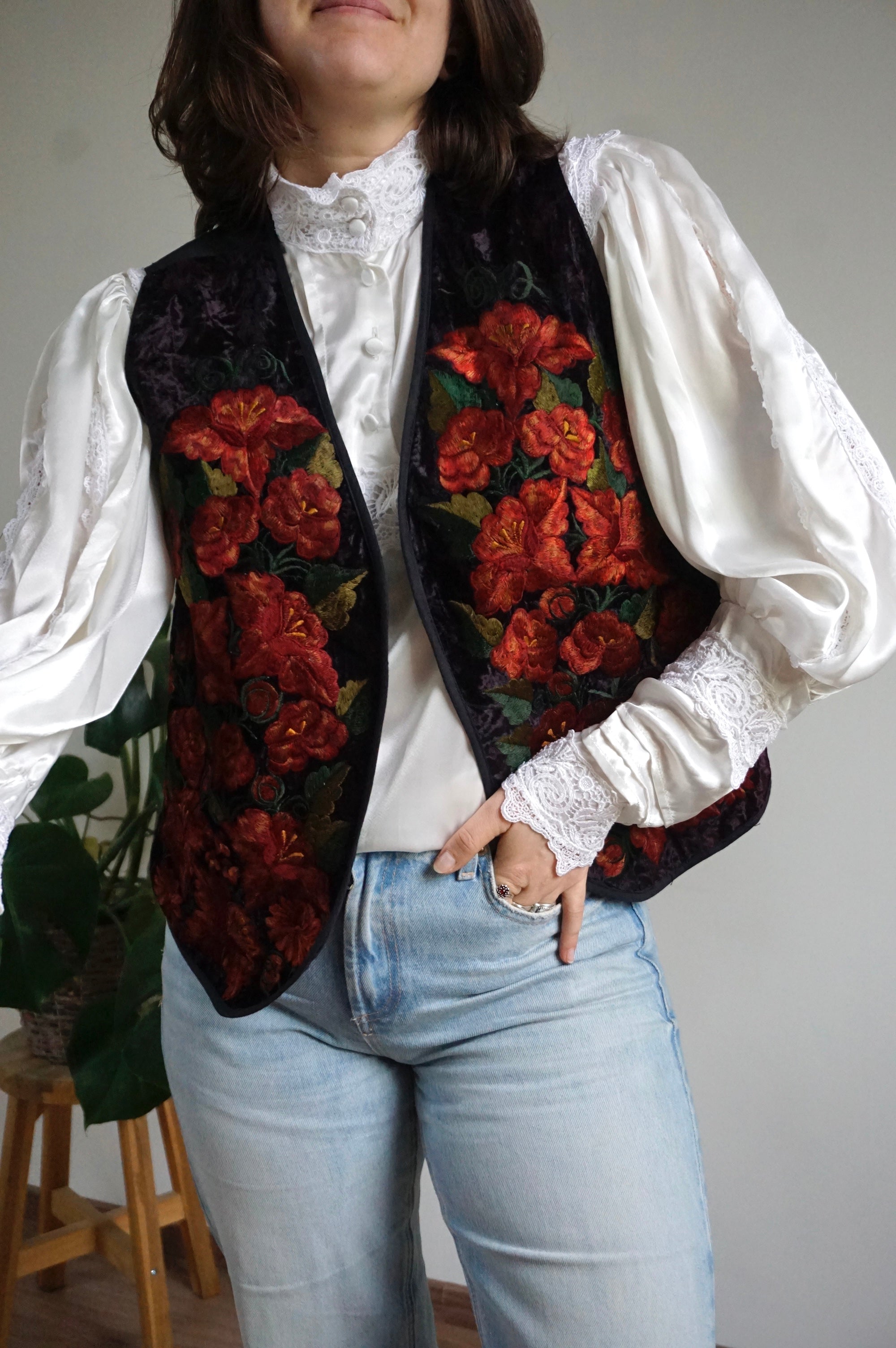 The Dark Rose - Vintage Gilet/Waistcoat - Velvet - Embroidered - L