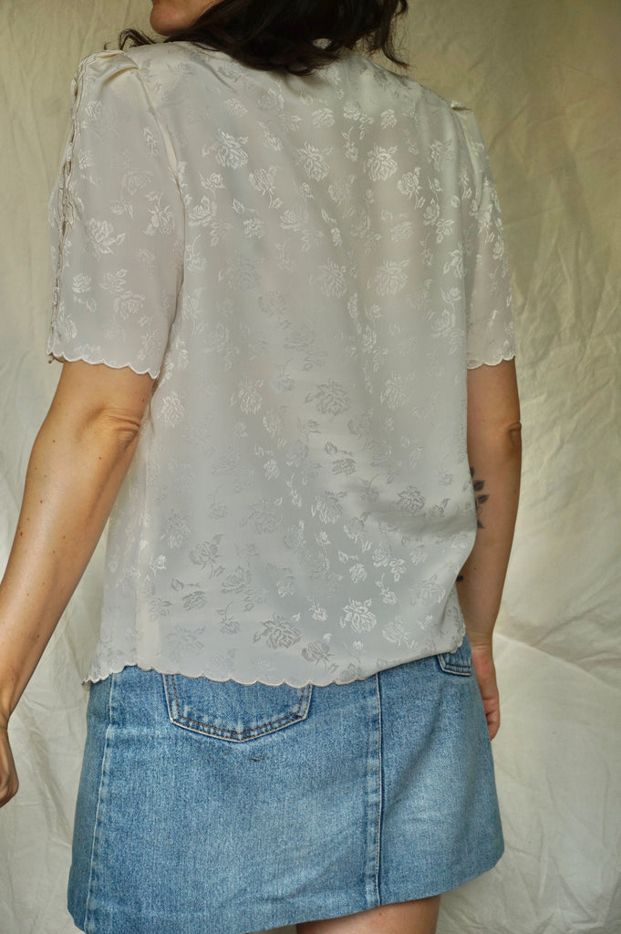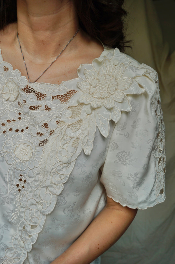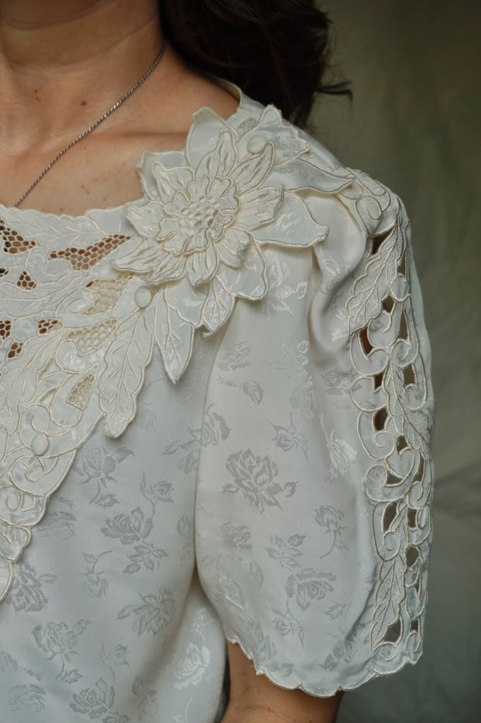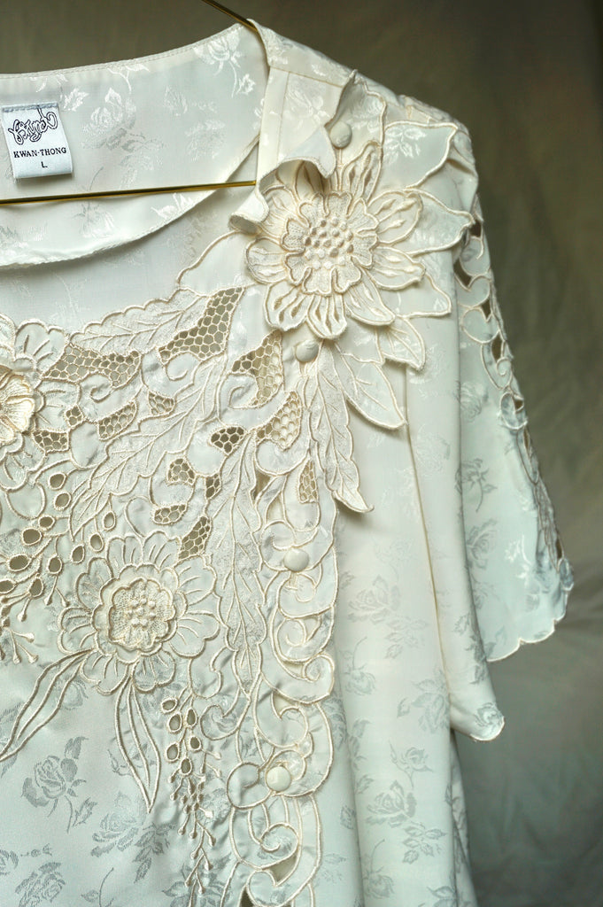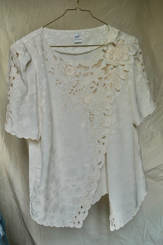 The Holy Grail - Vintage Blouse - Embroidered & Lace Details - L