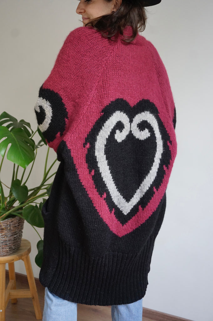 Queen of Hearts - Vintage BIG Cardigan - Mohair Wool - Free Size