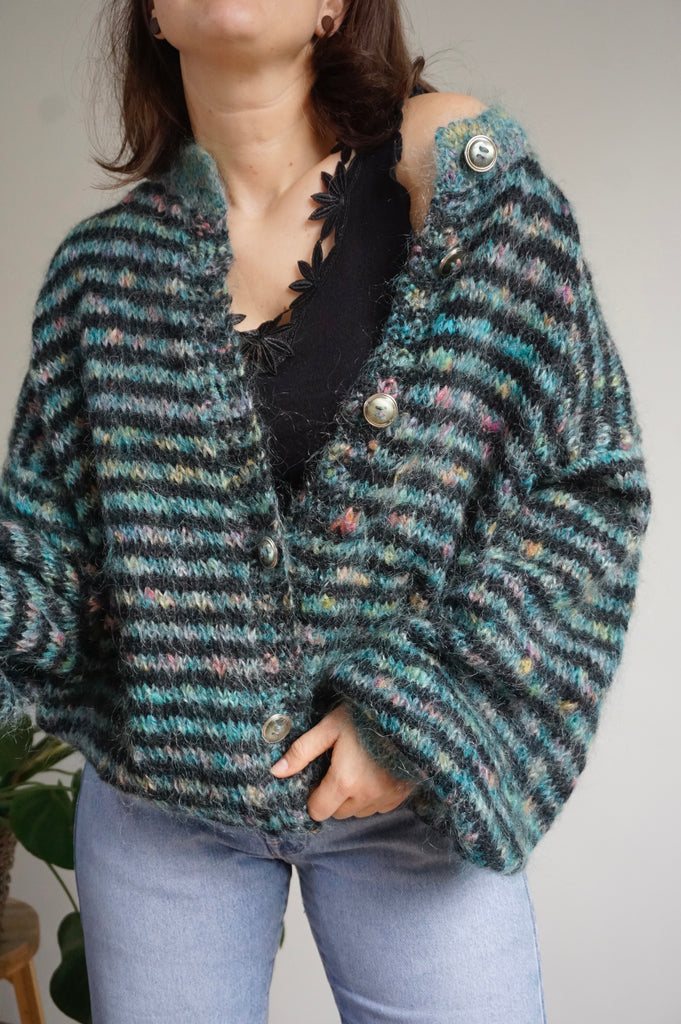 Fluffy Margot - Vintage Cardigan - Mohair Wool - L/XL