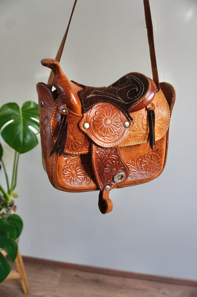 Saddle Up Guuurl - Vintage Leather Saddle Bag - Sheepskin lining