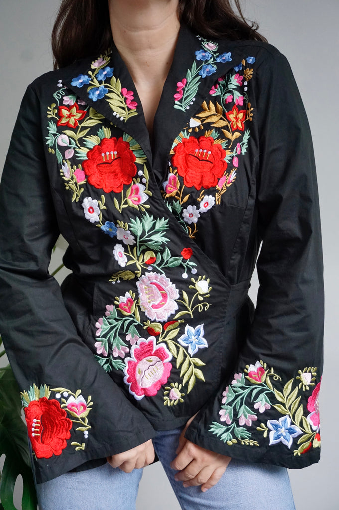 The Goddess - Pre Loved Wrap Top/Blouse - Embroidered details - M
