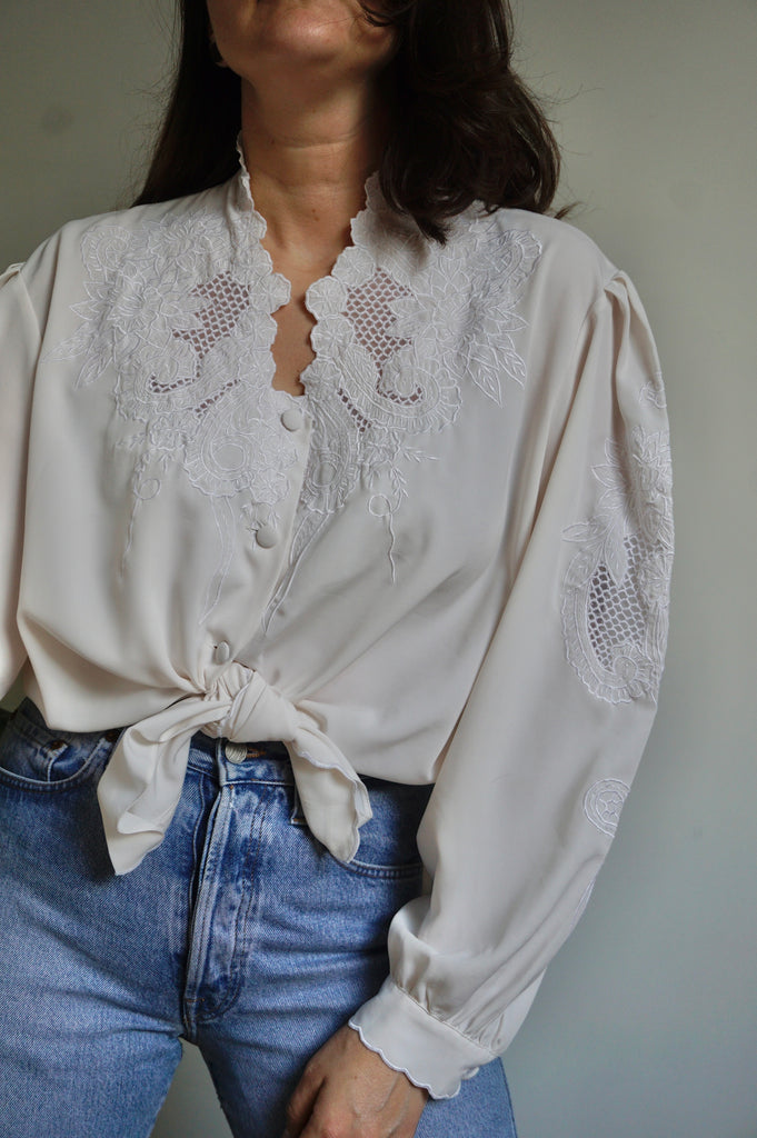 Elizabeth- Vintage Blouse - Lace & Embroidered details - L
