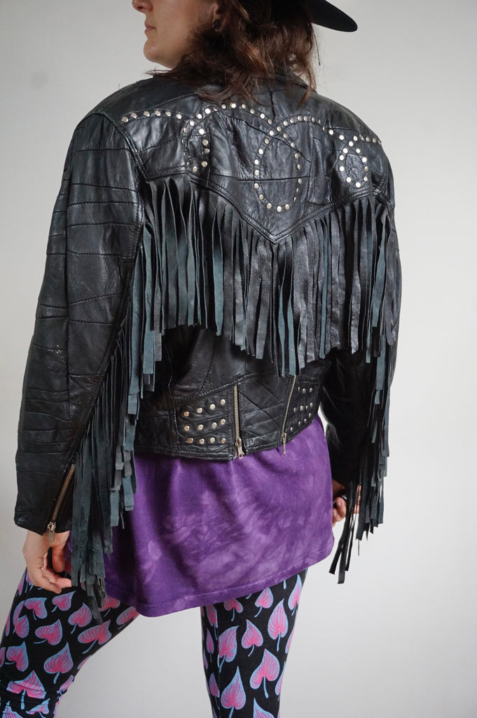 Party Girl - Vintage Leather Fringe With studs - S/M