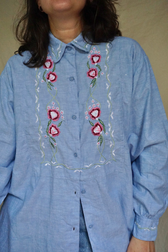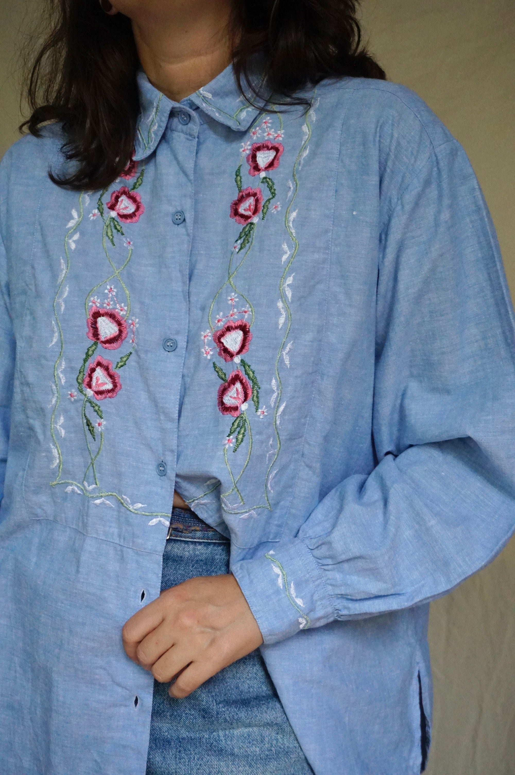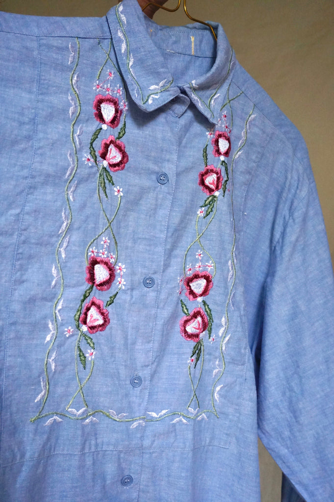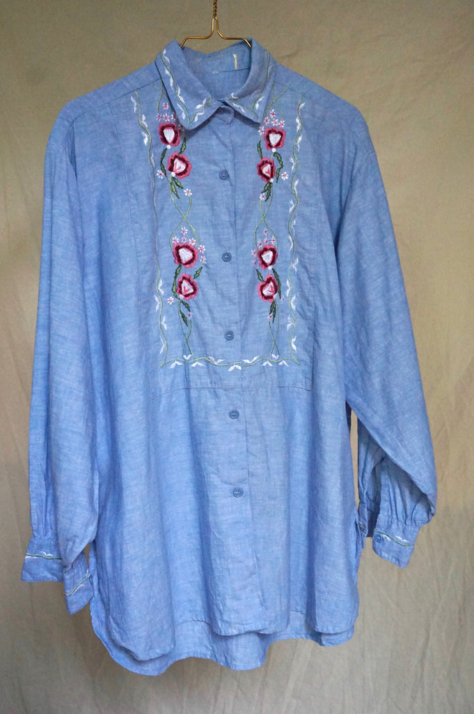 Flower Necklace- Vintage Embroidered Blouse - L/XL