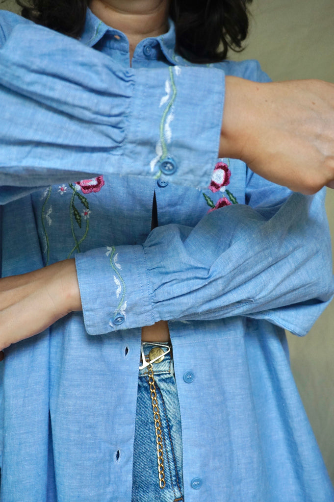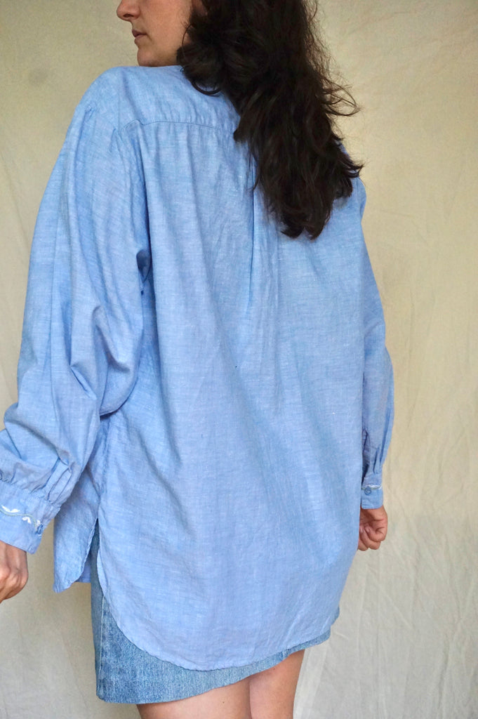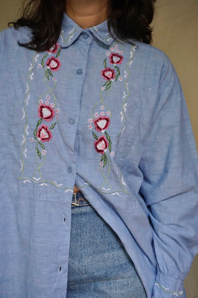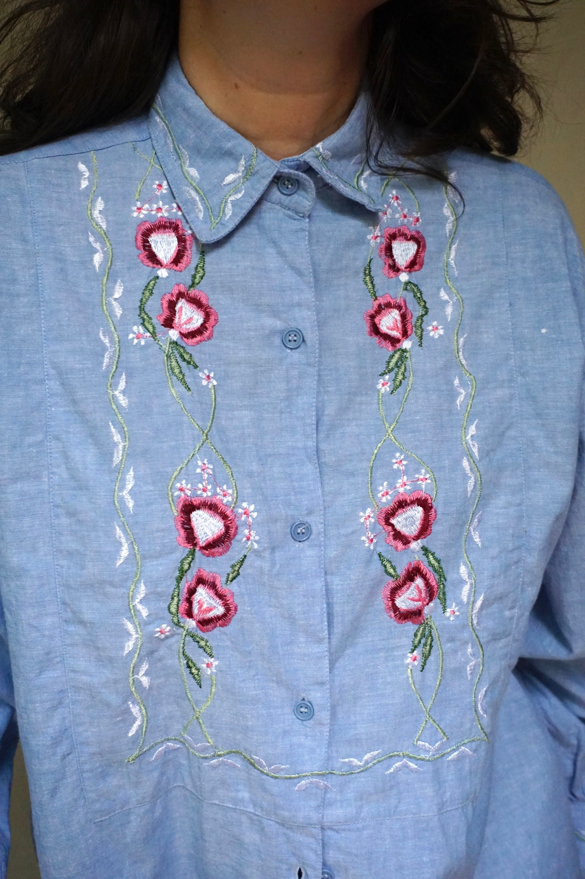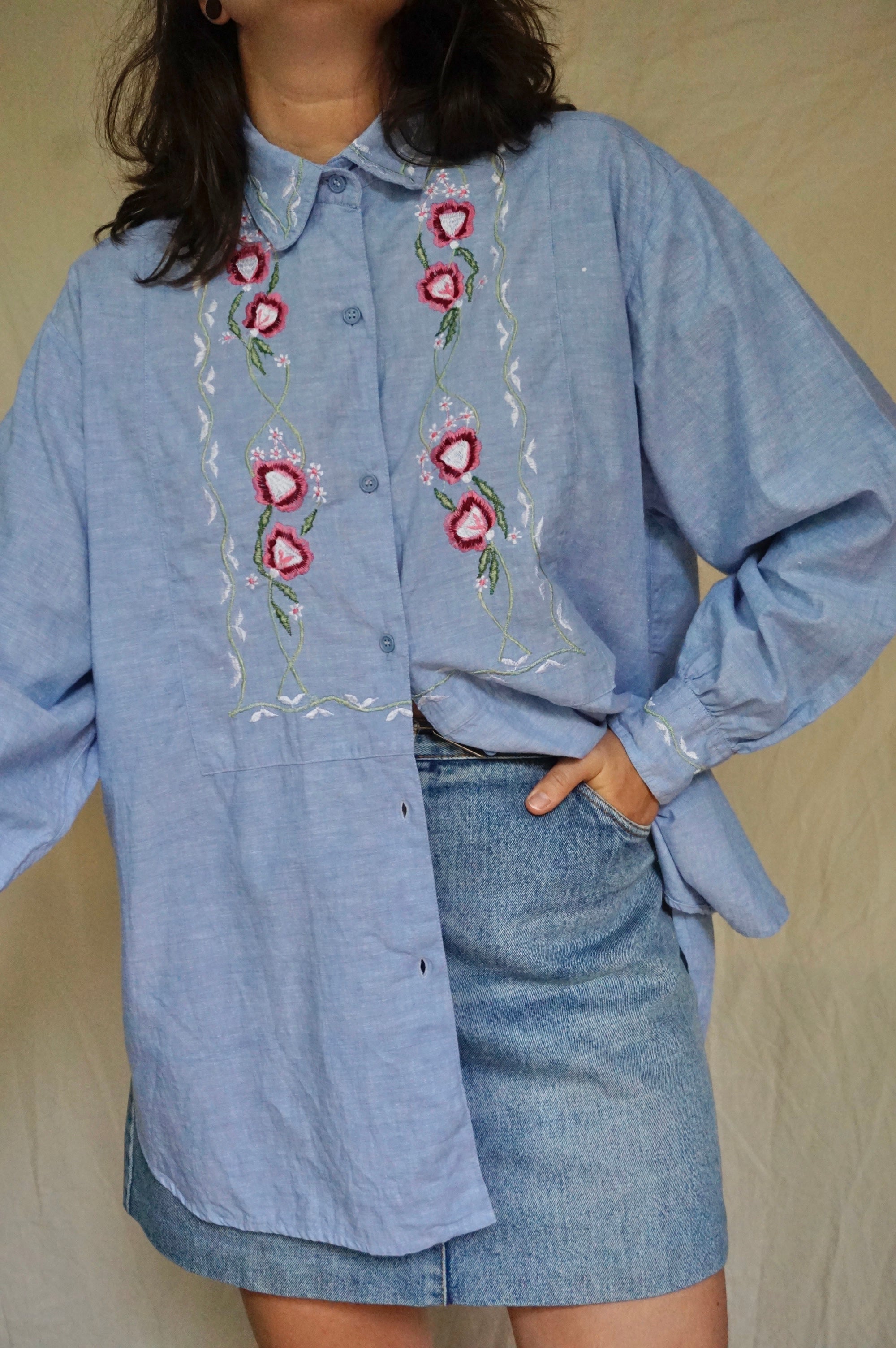 Flower Necklace- Vintage Embroidered Blouse - L/XL