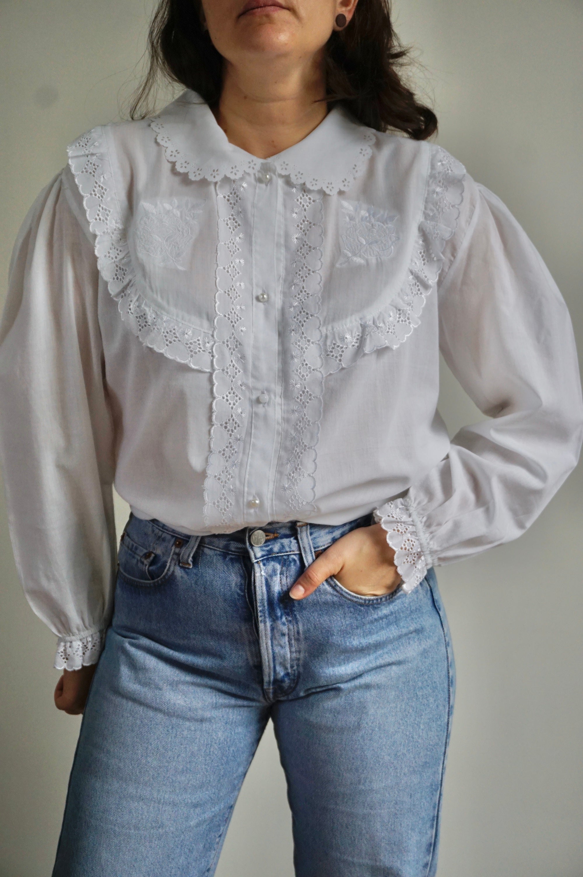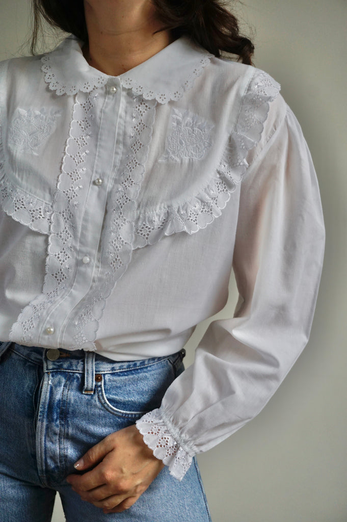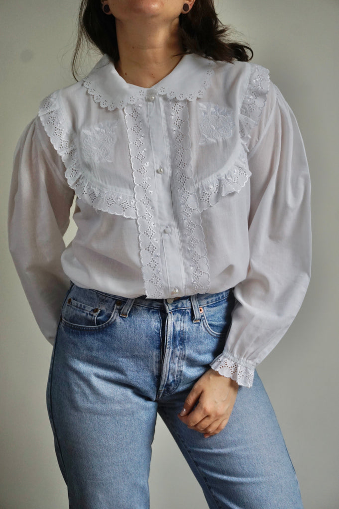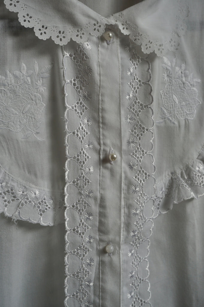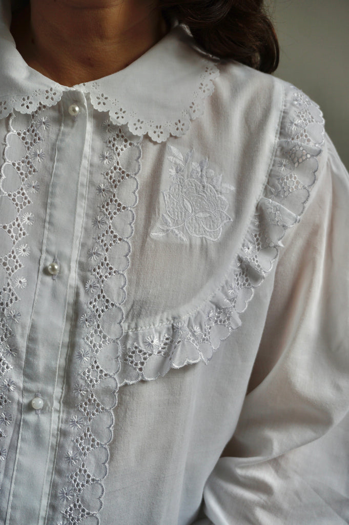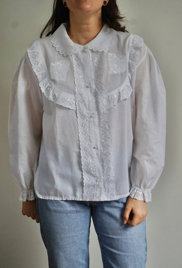 Hearts On My Sleaves - Vintage Blouse - Ruffle & Embroidered details - M/L