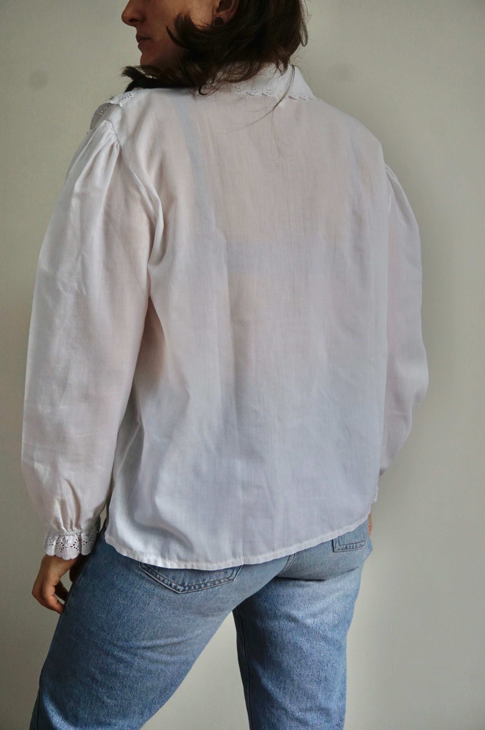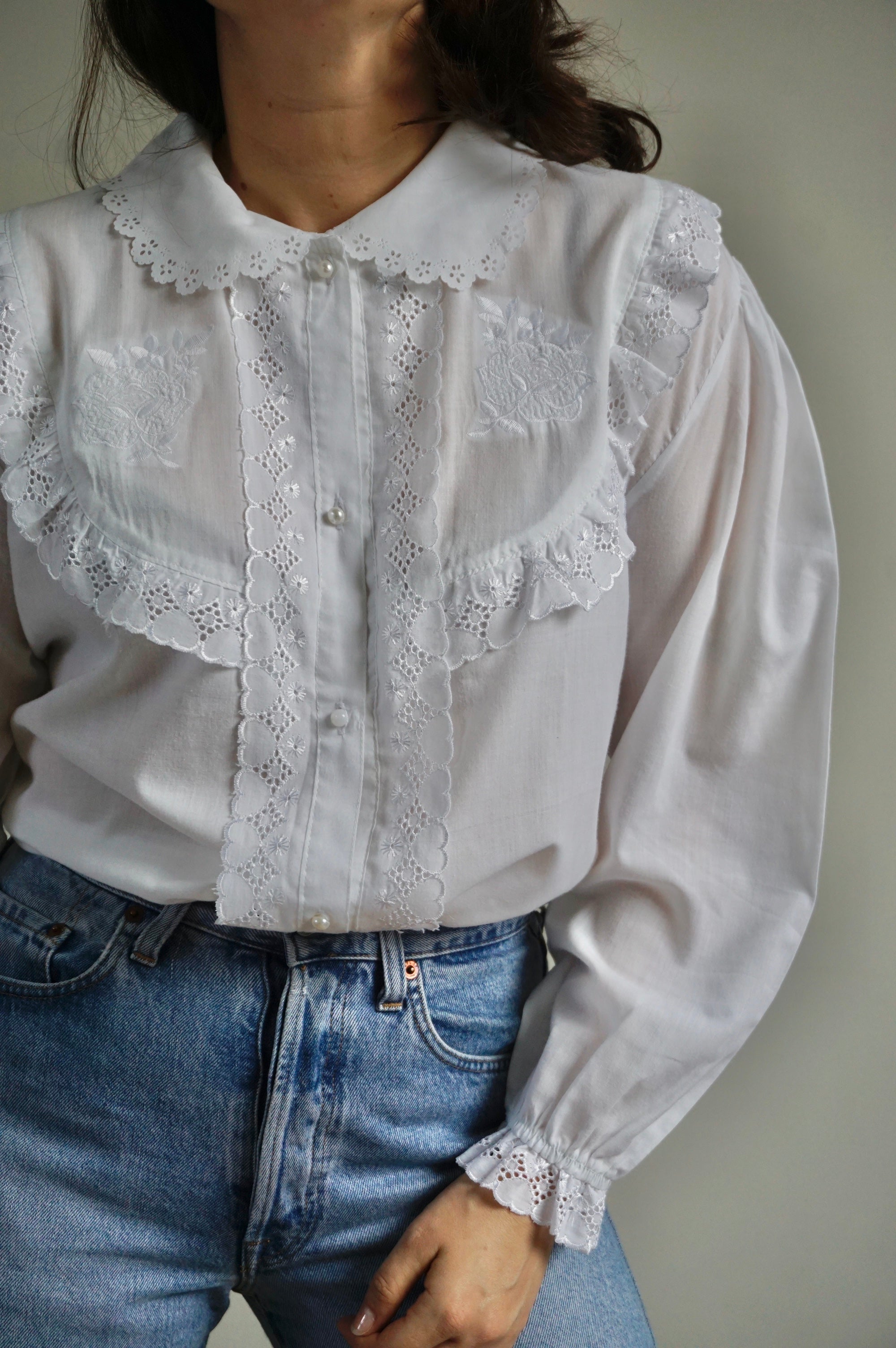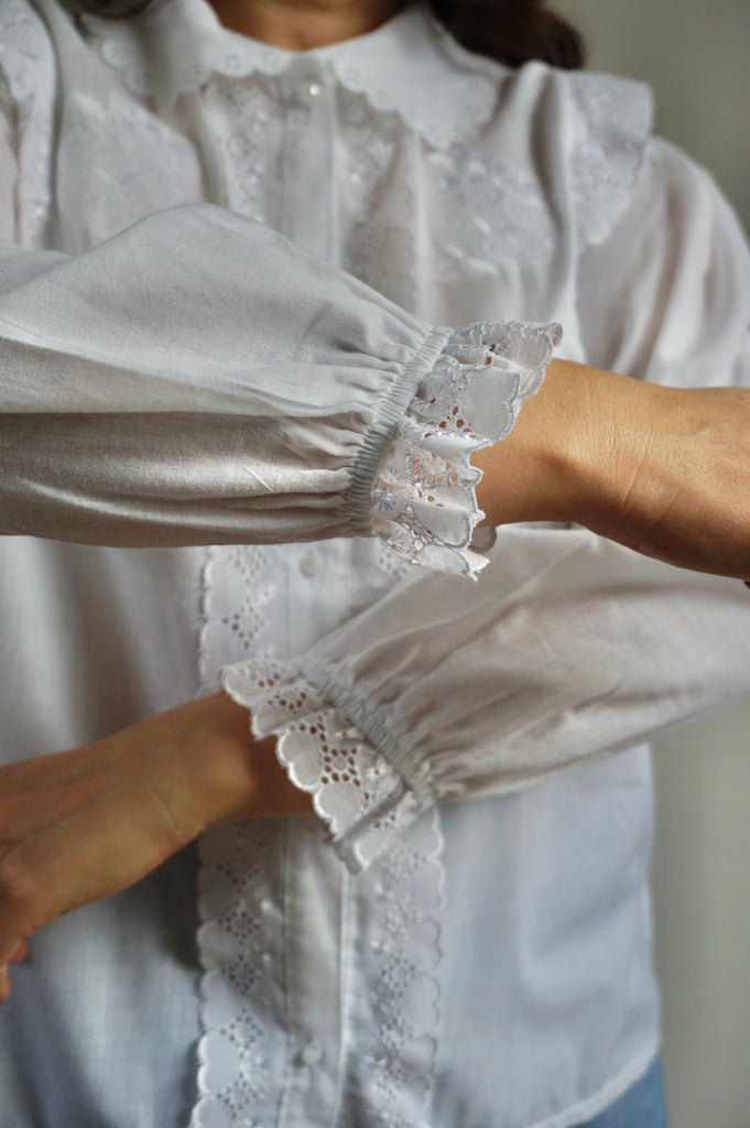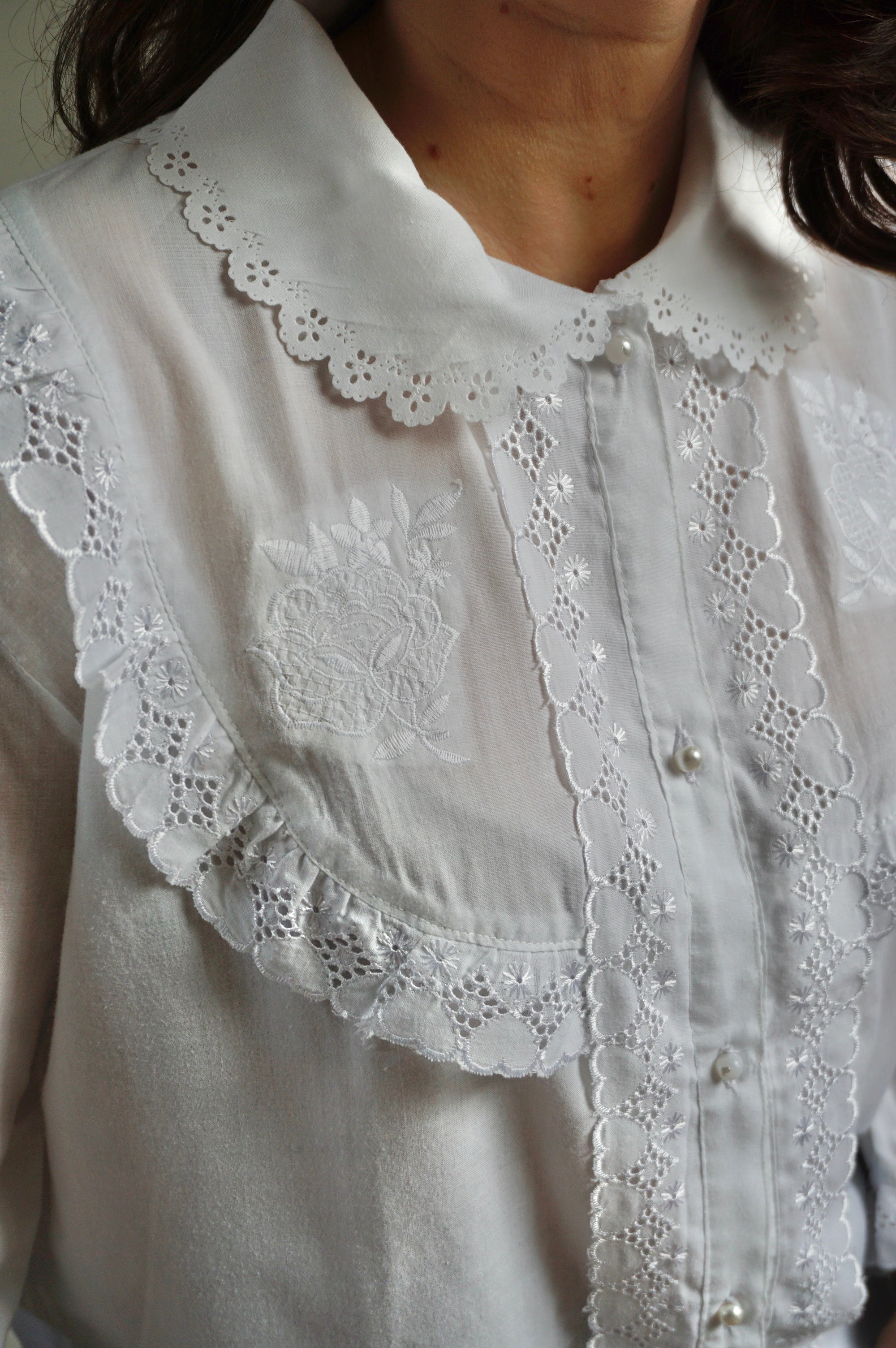 Hearts On My Sleaves - Vintage Blouse - Ruffle & Embroidered details - M/L