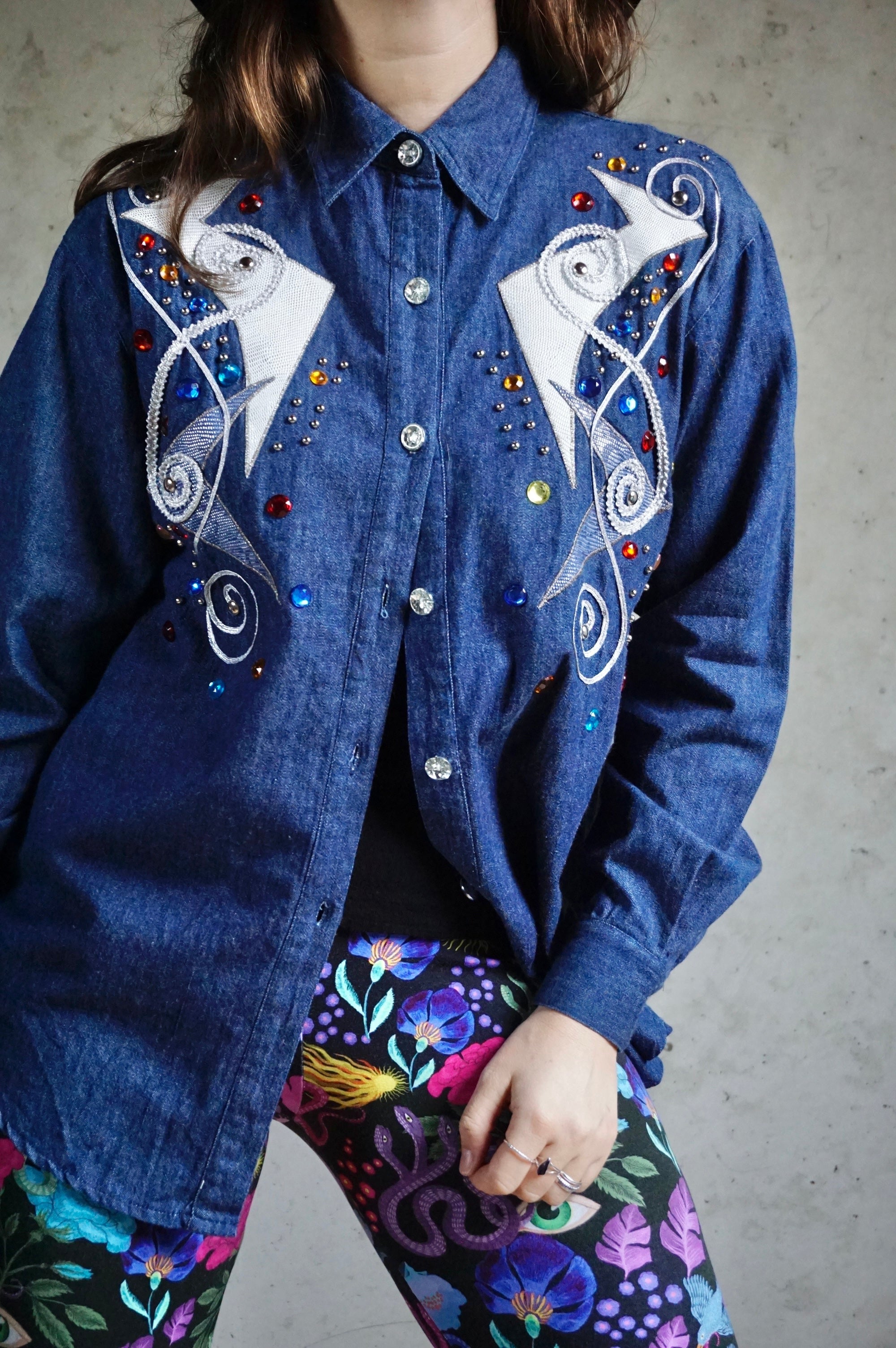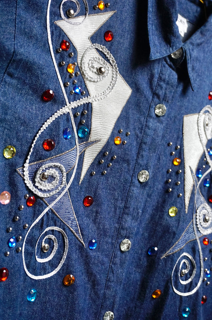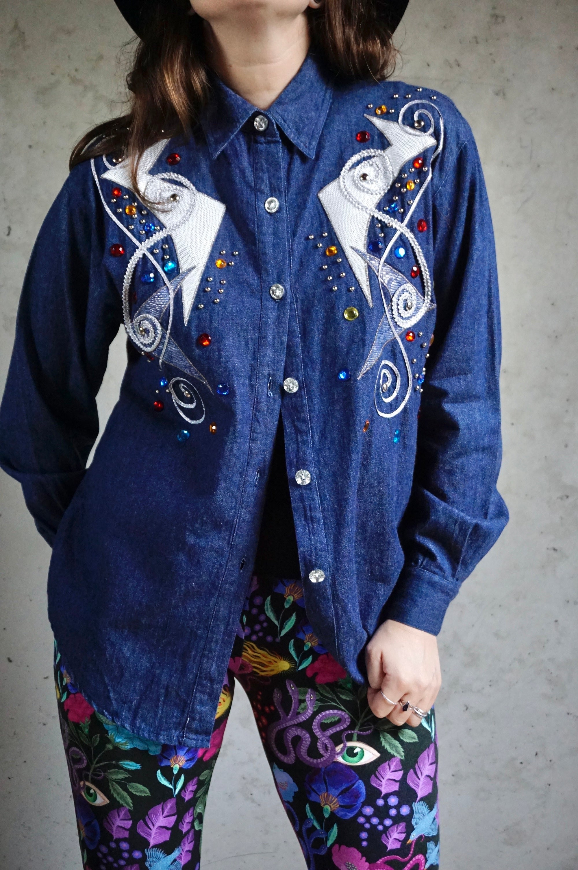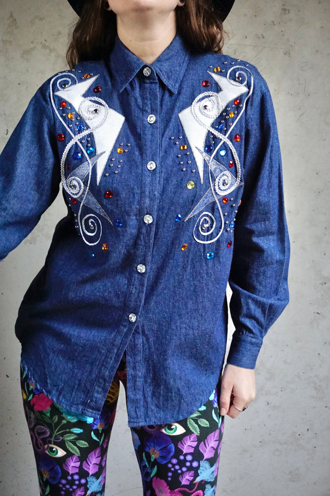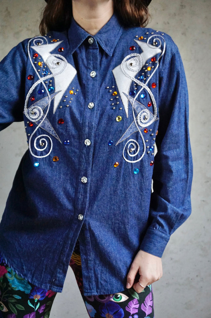 Little Darling - Vintage Blouse - Denim with embellishments - M/L