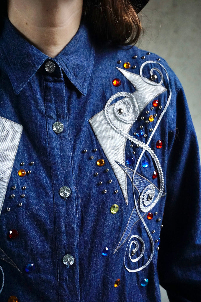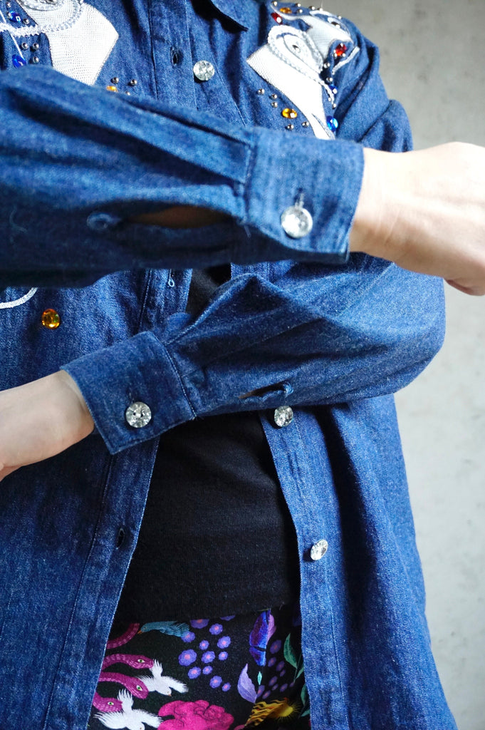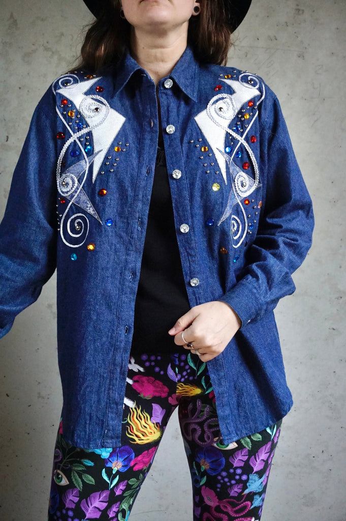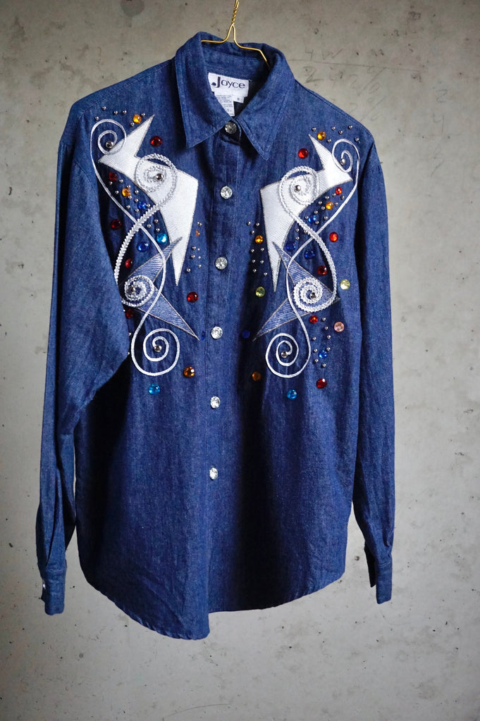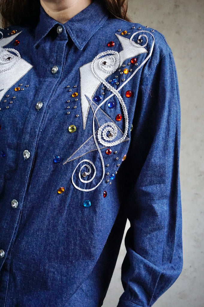 Little Darling - Vintage Blouse - Denim with embellishments - M/L