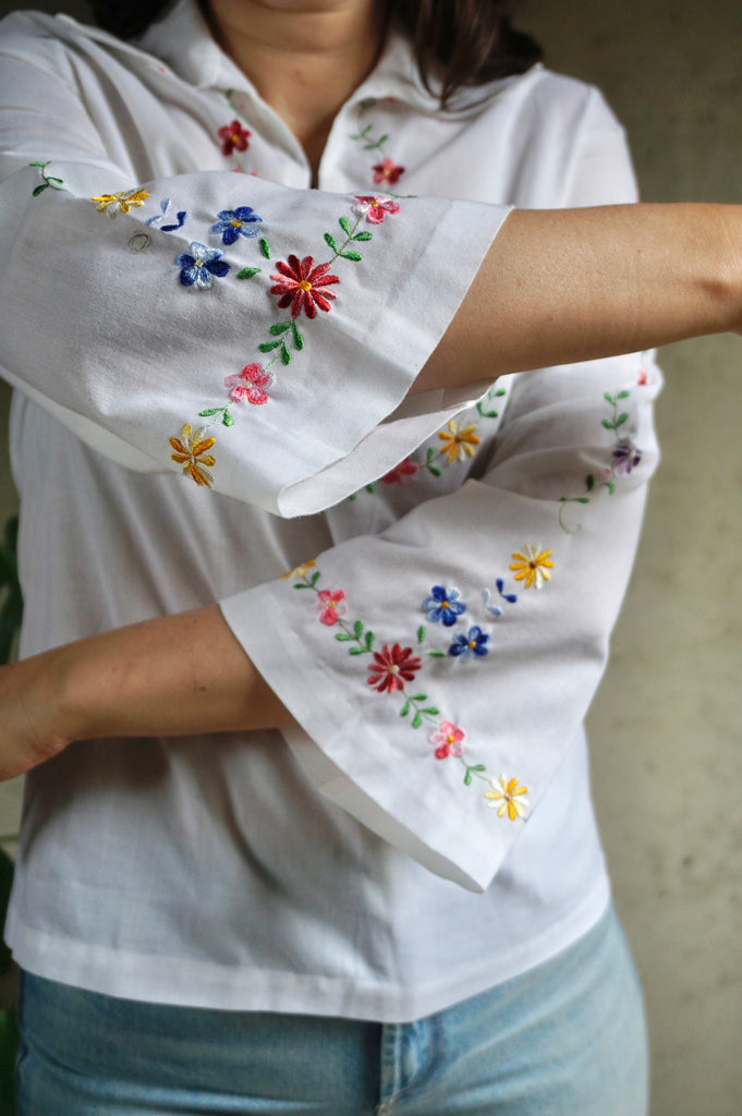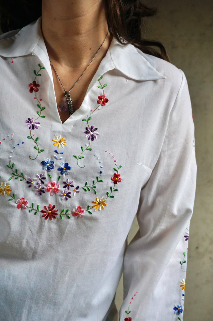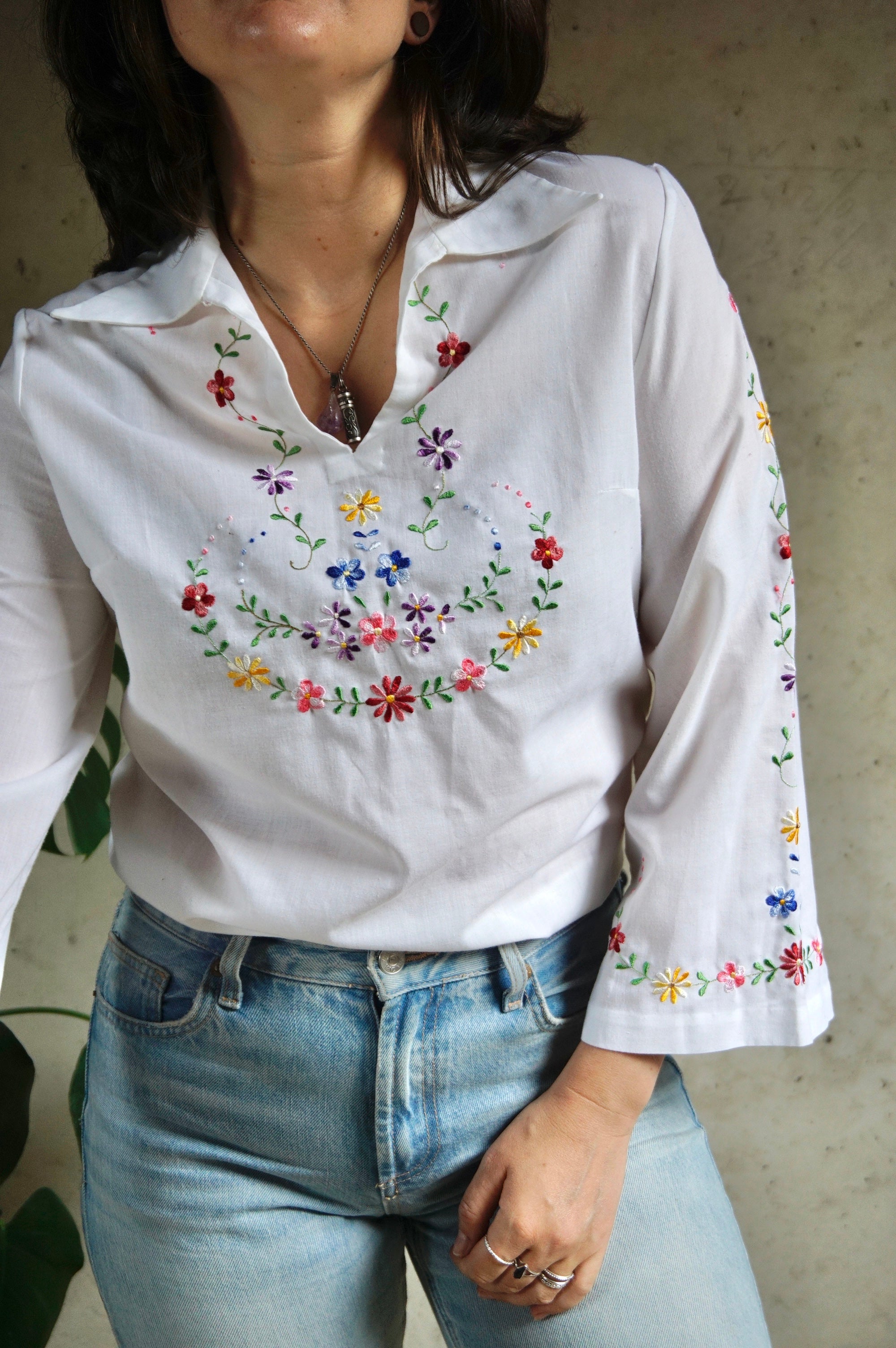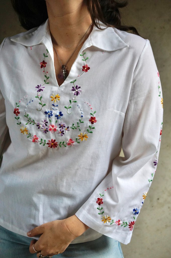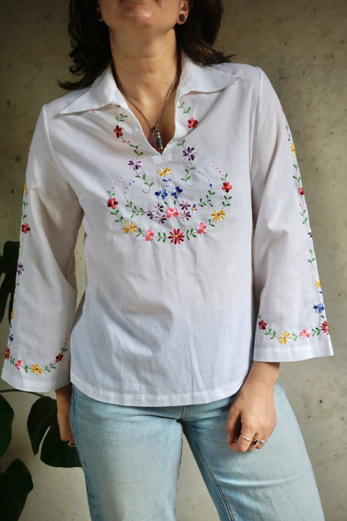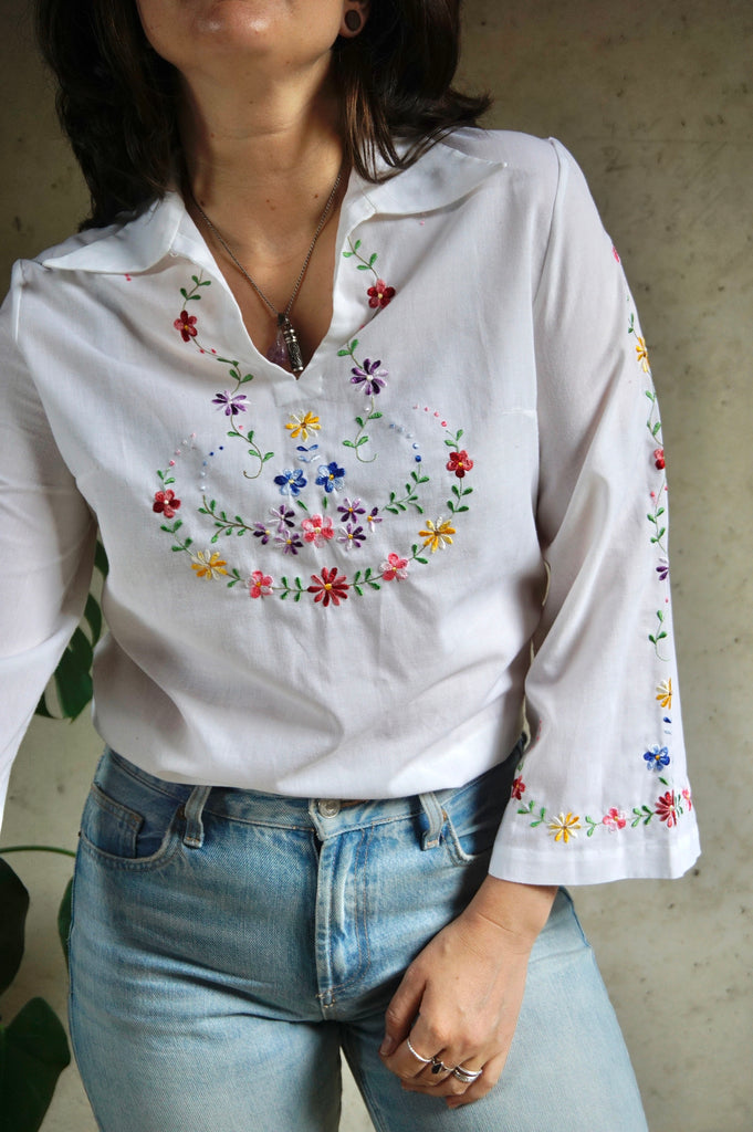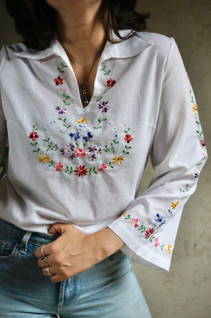 Flower Guurrl - Vintage Embroidered Top - S/M