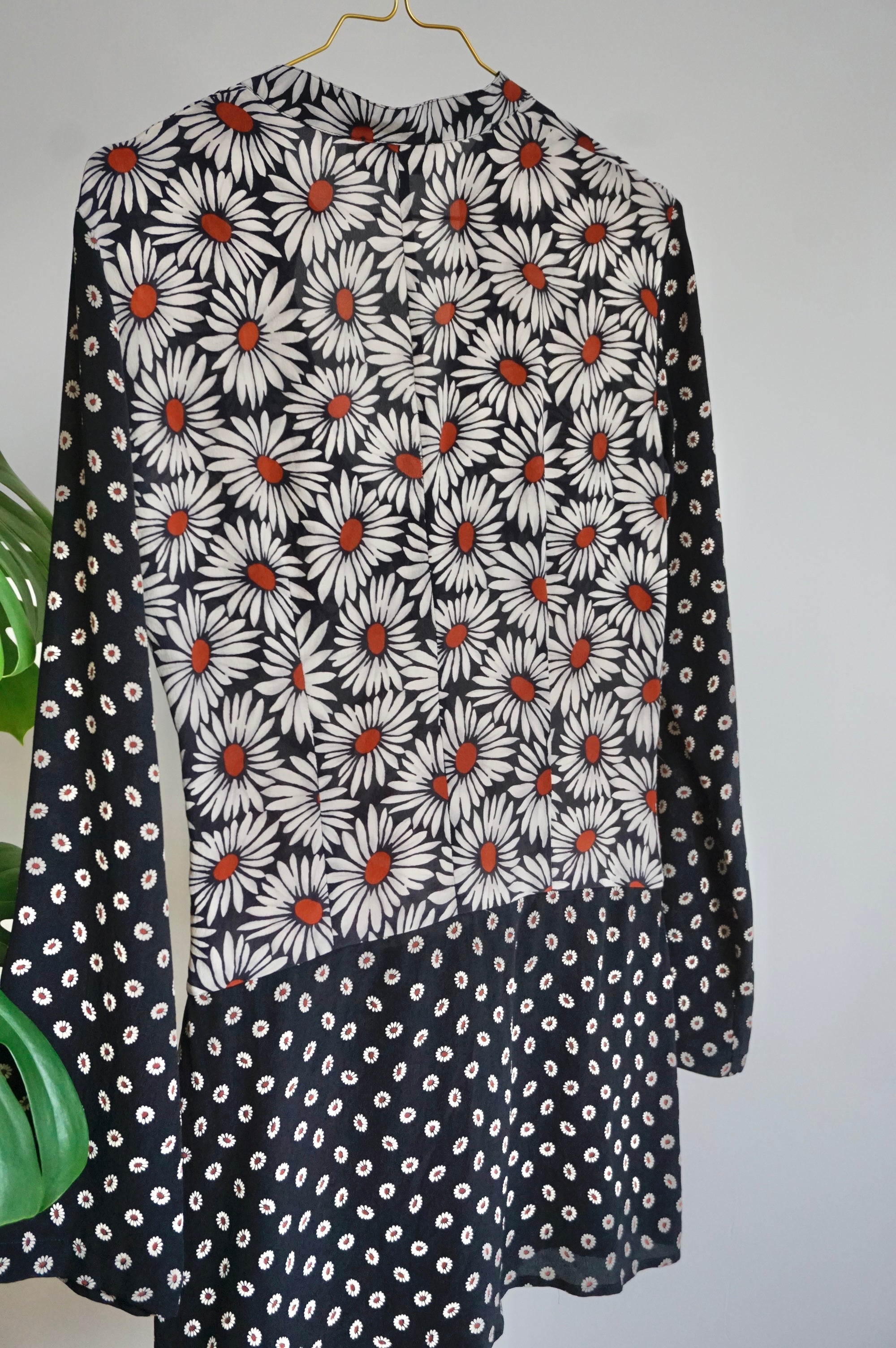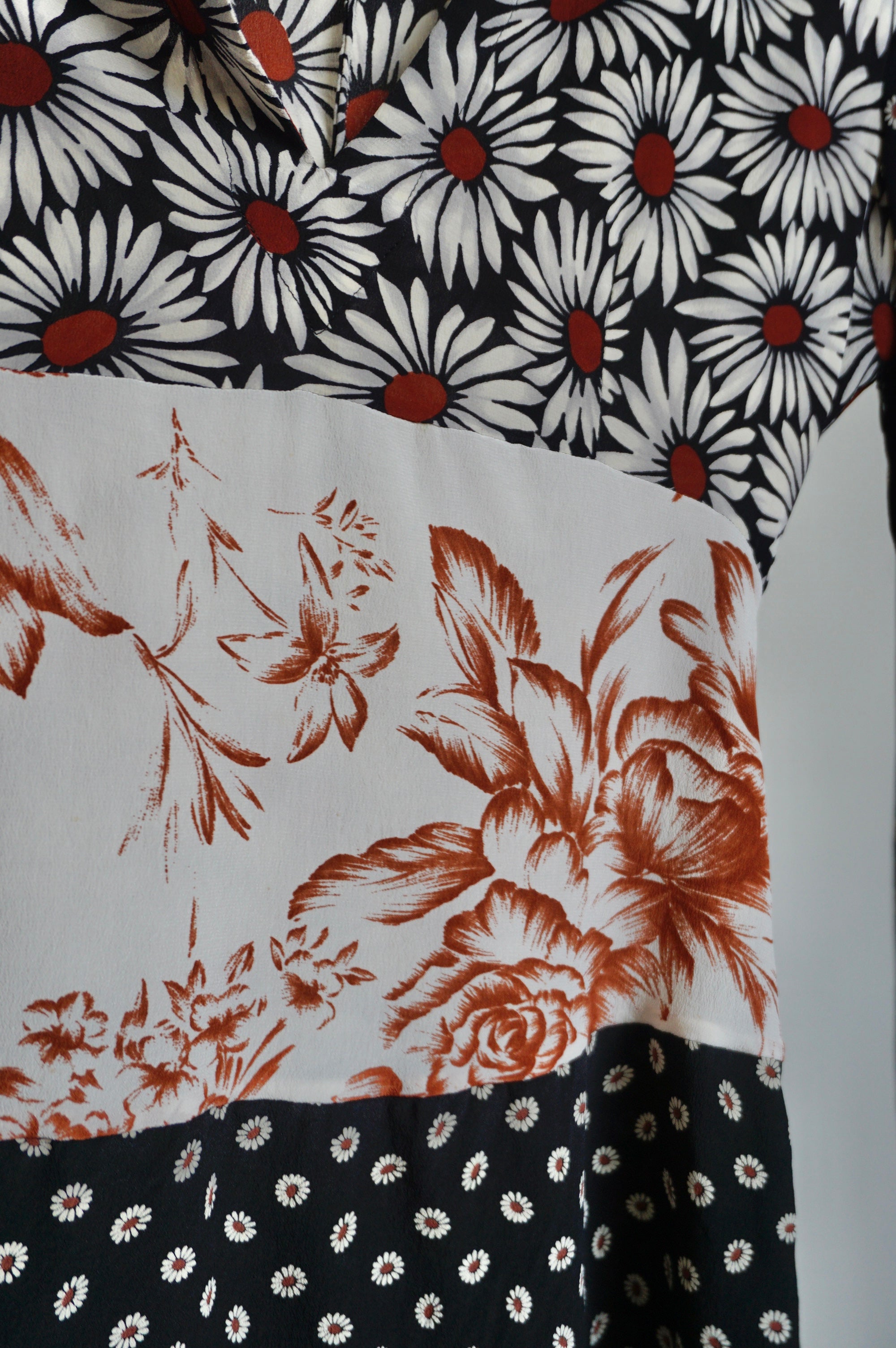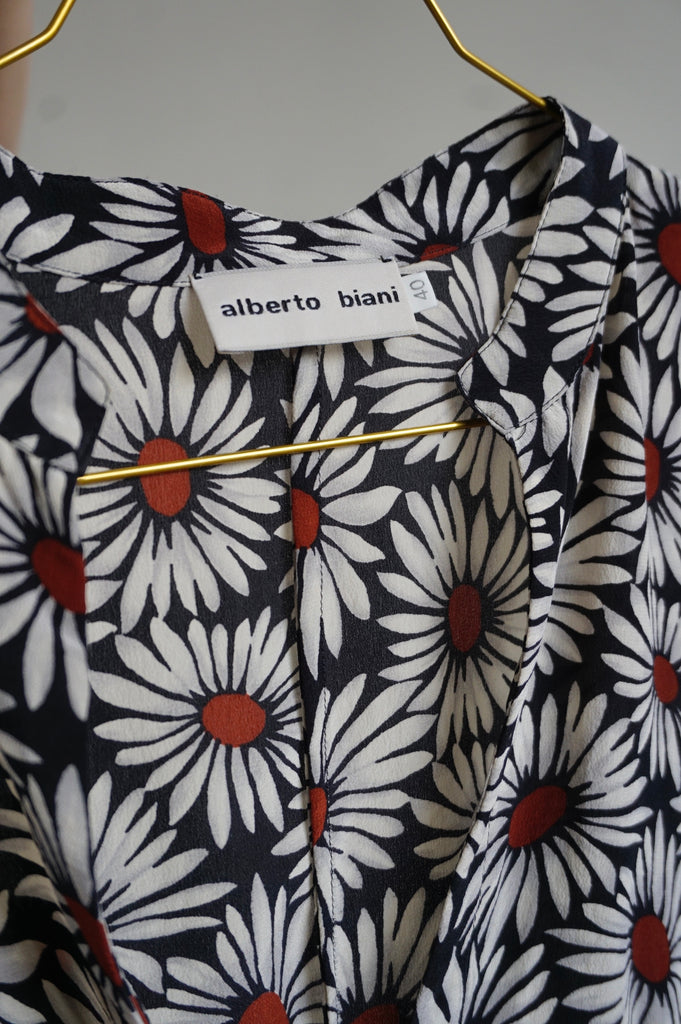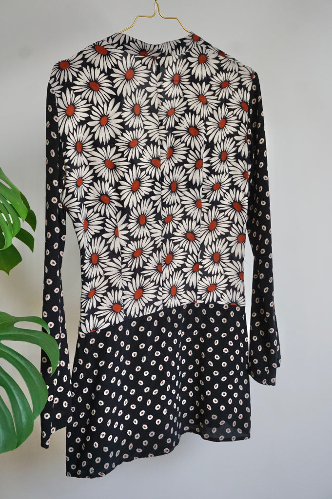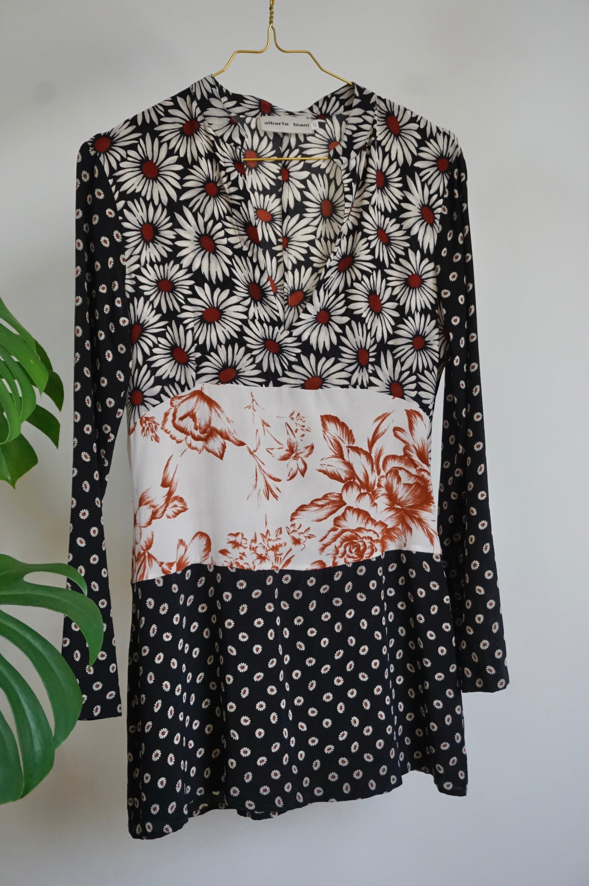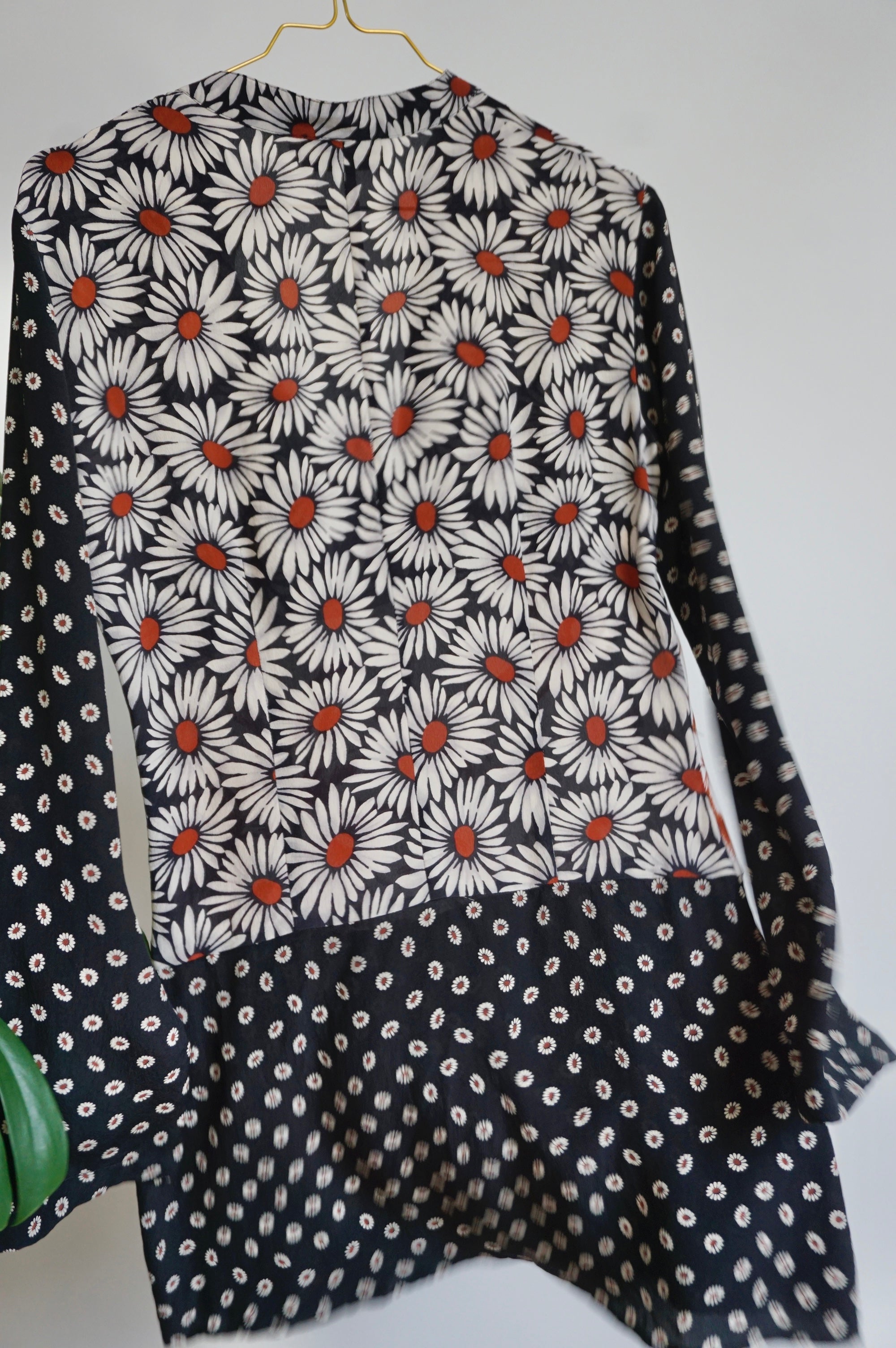 Silky Daisies - Vintage Blouse - 100% Silk - XS