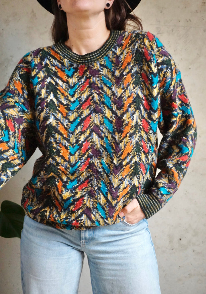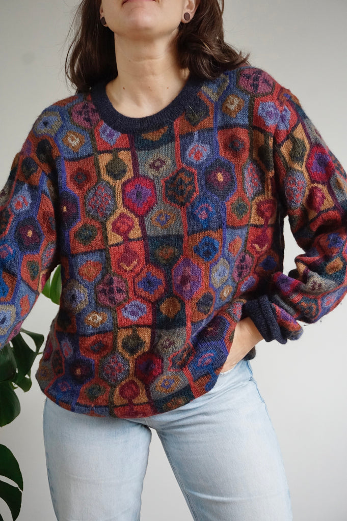 Geo Hugs - Vintage Sweater - Unisex - Alpaca Wool - L
