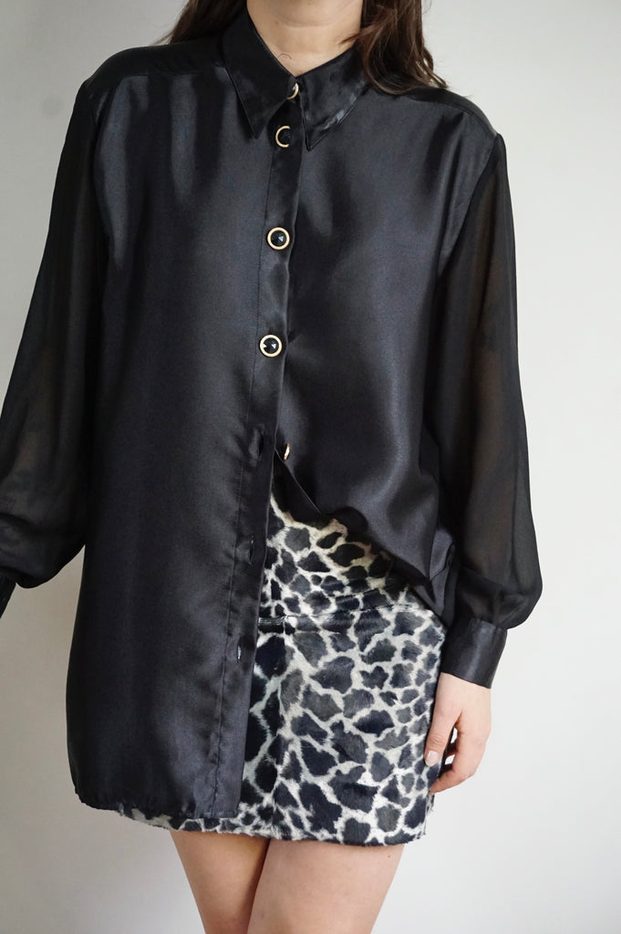 The Nightwatch - Vintage Blouse - 100% Silk - Lace Details - L