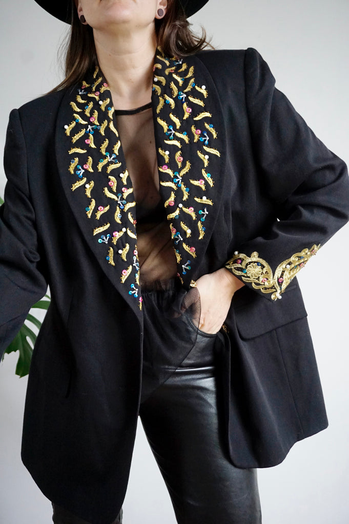 Floral Legend - Vintage Cardigan - Wool - Embroidered details - M