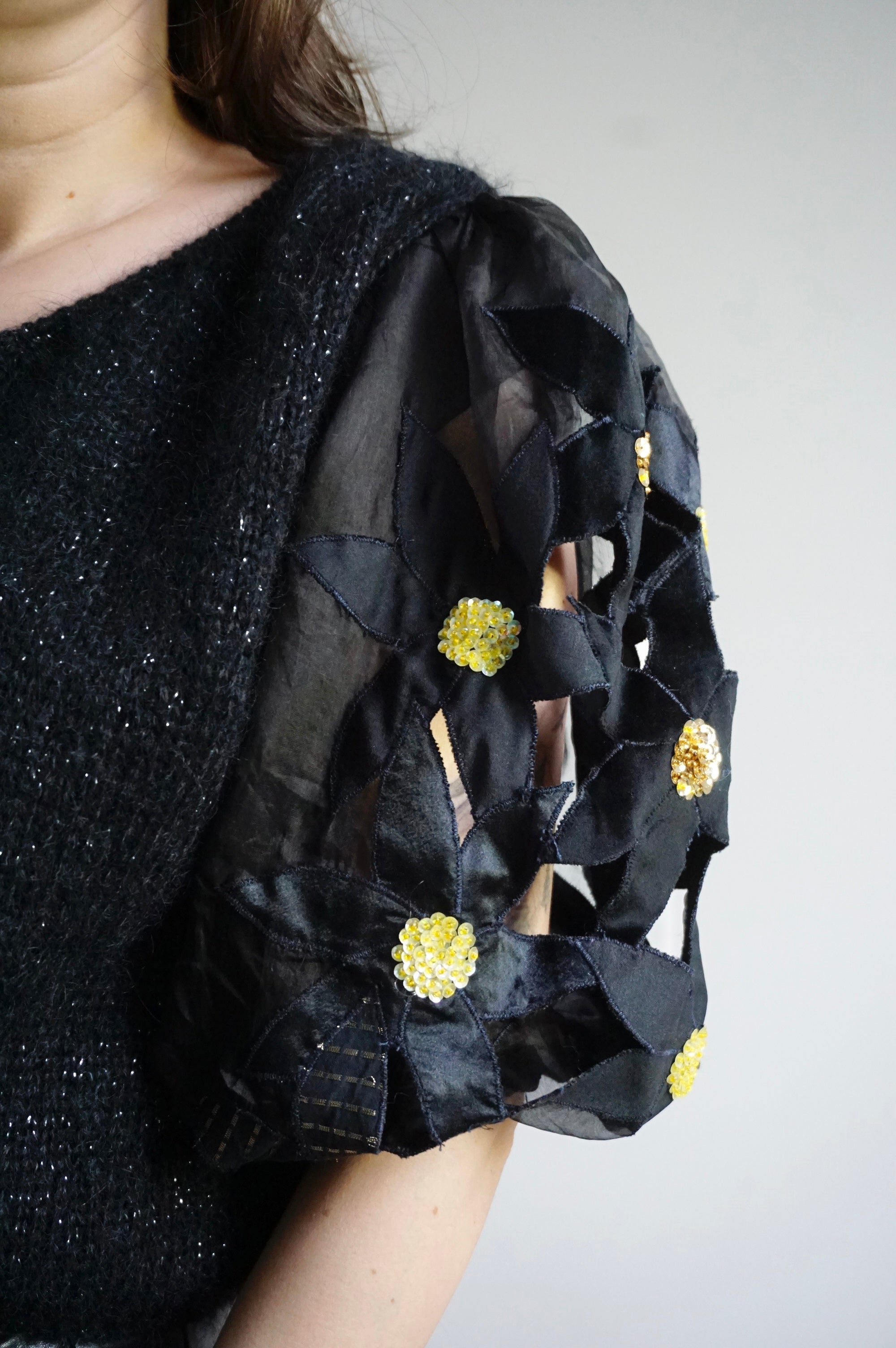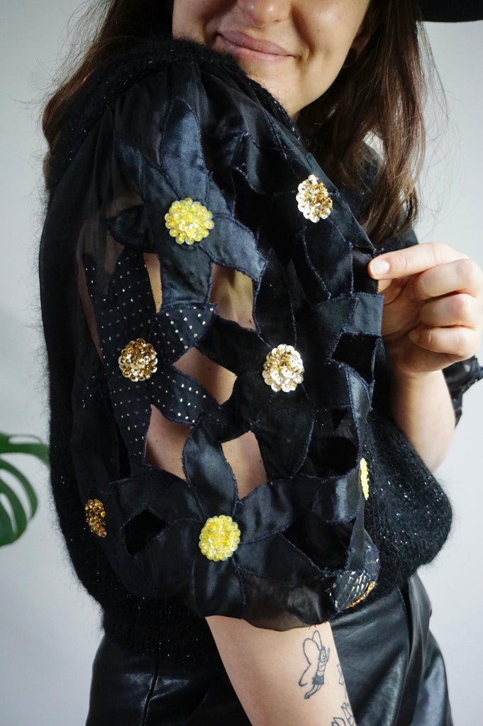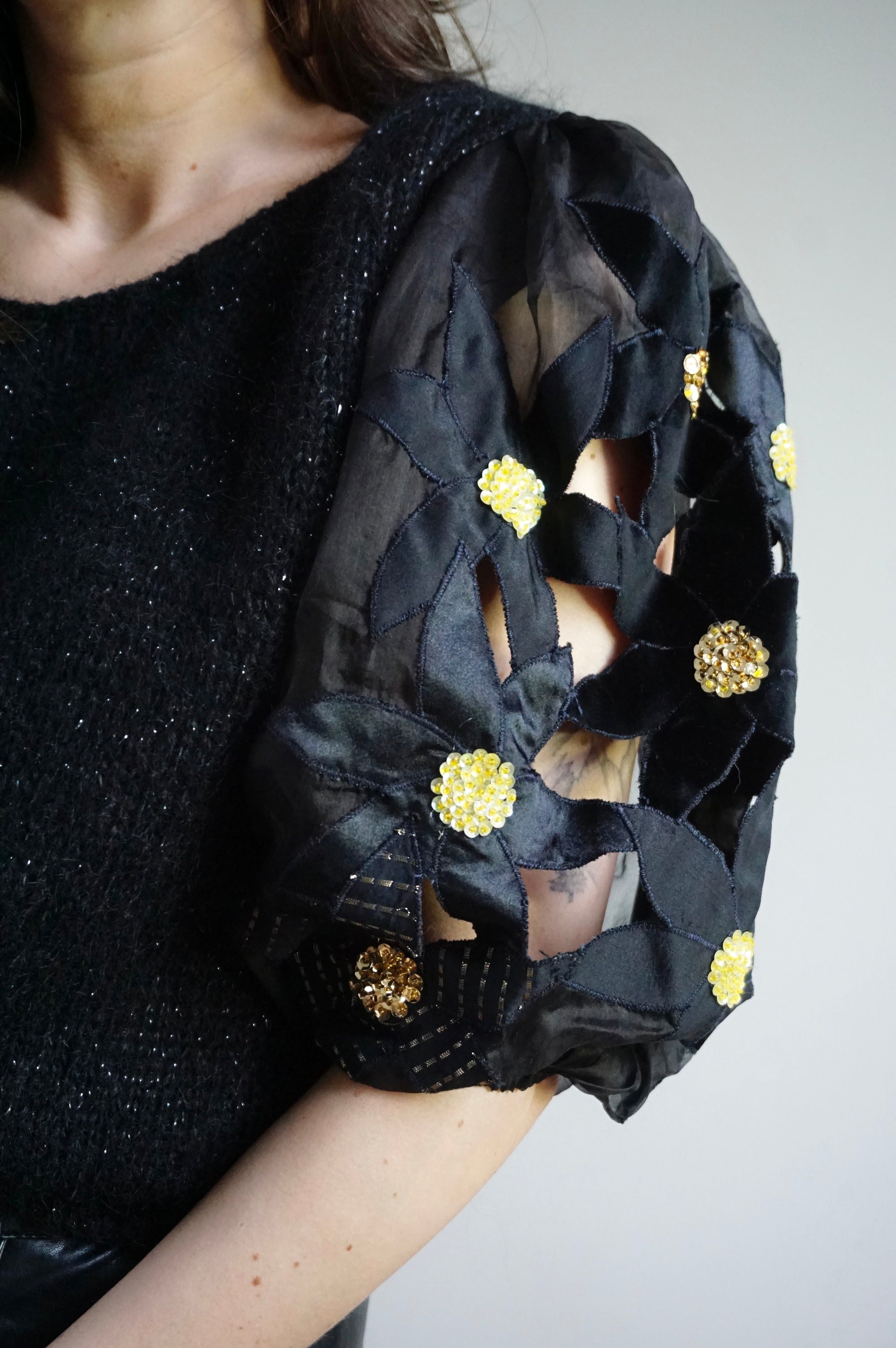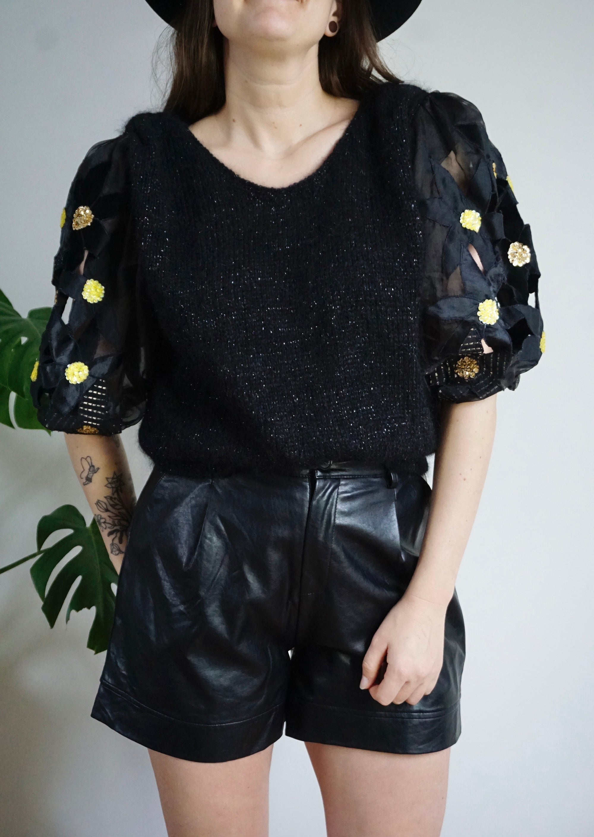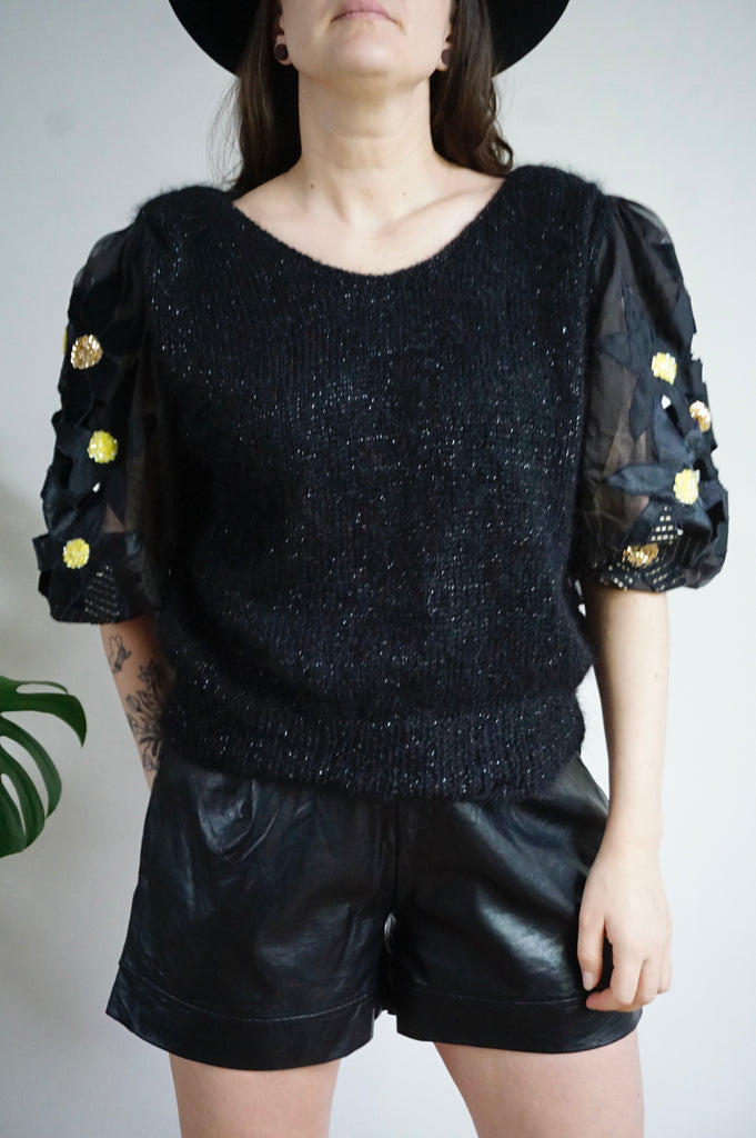 Atomic Sleeves - Vintage Glitter Top - Knitted with cut outs - L