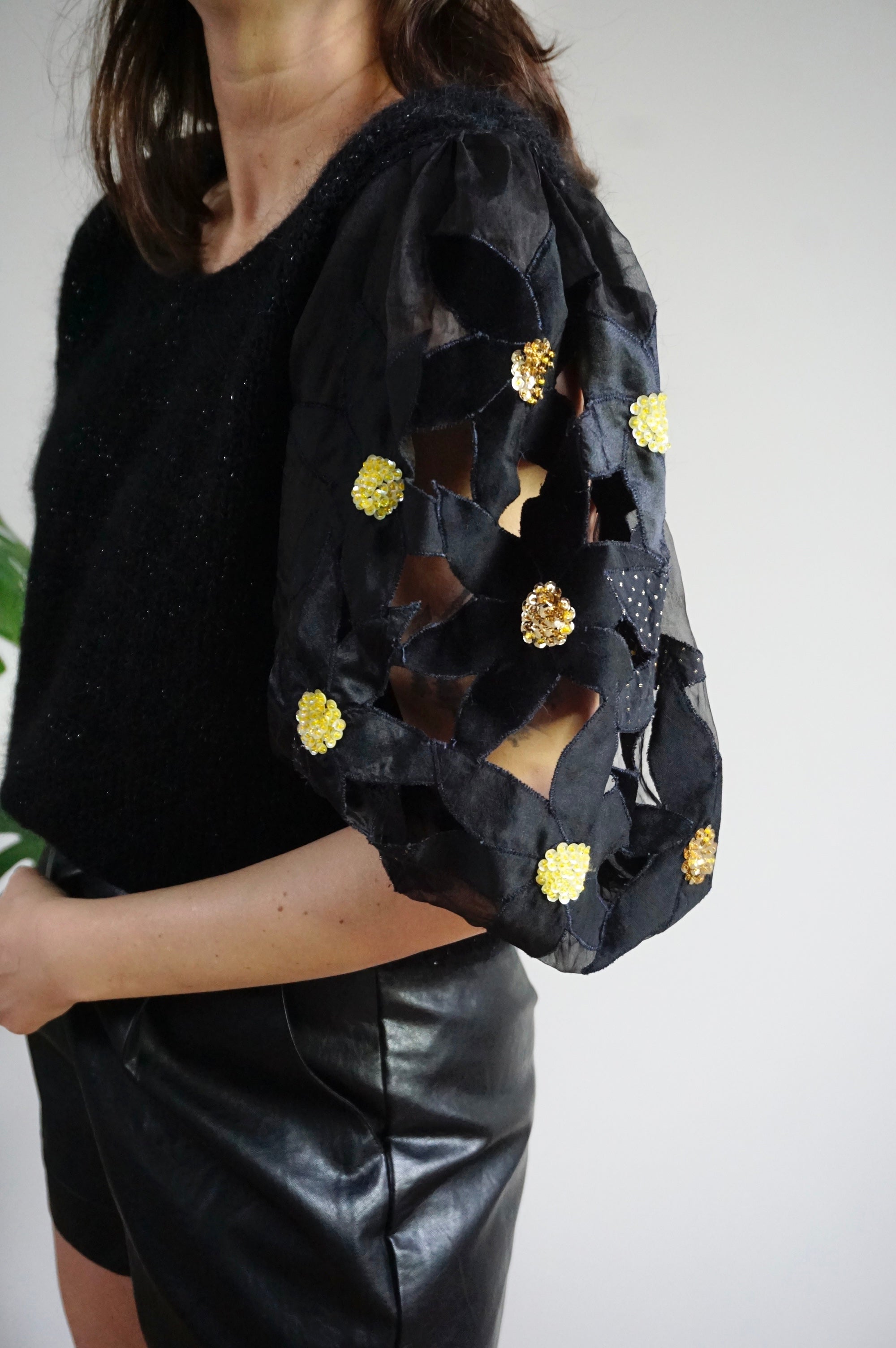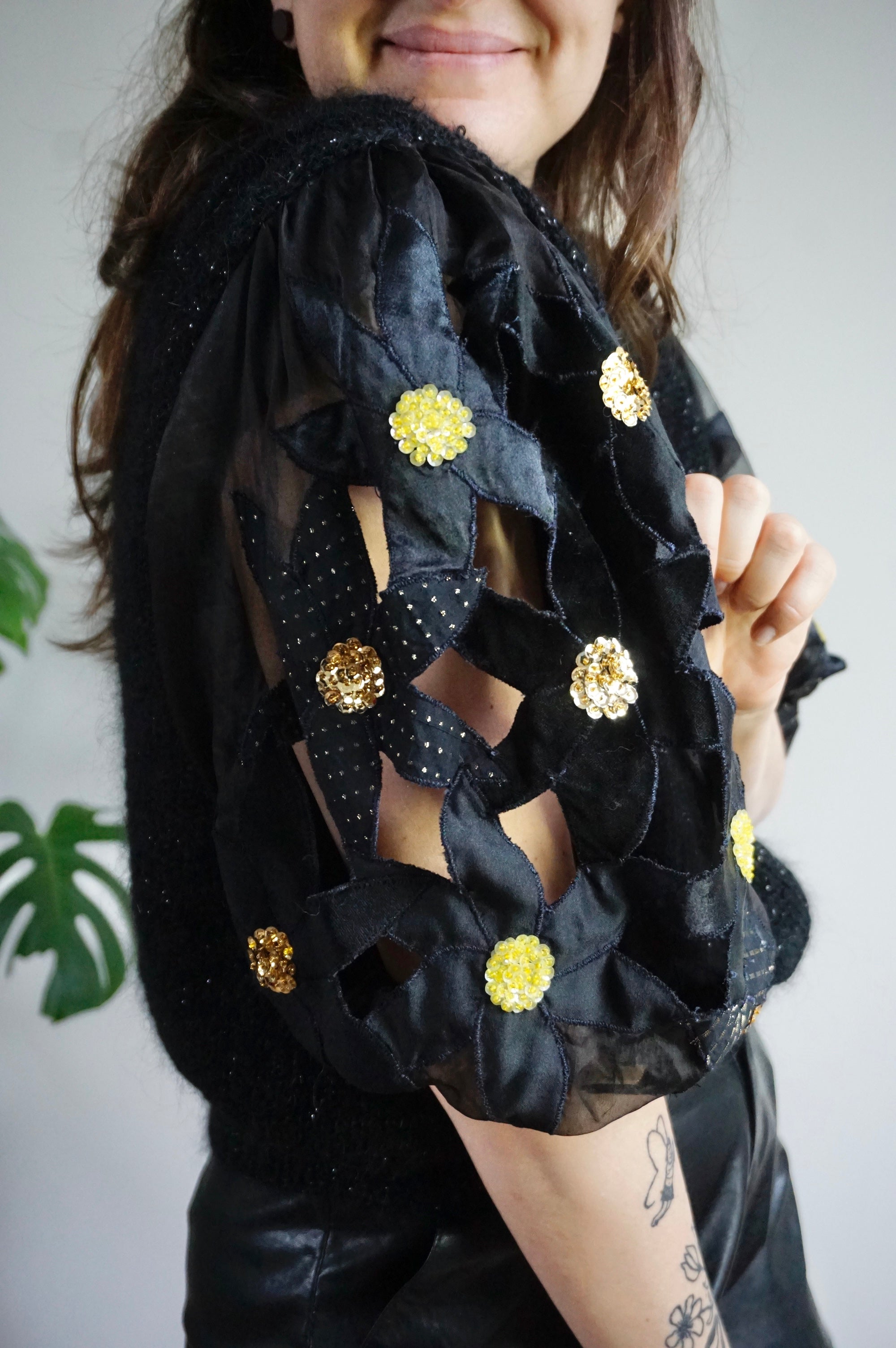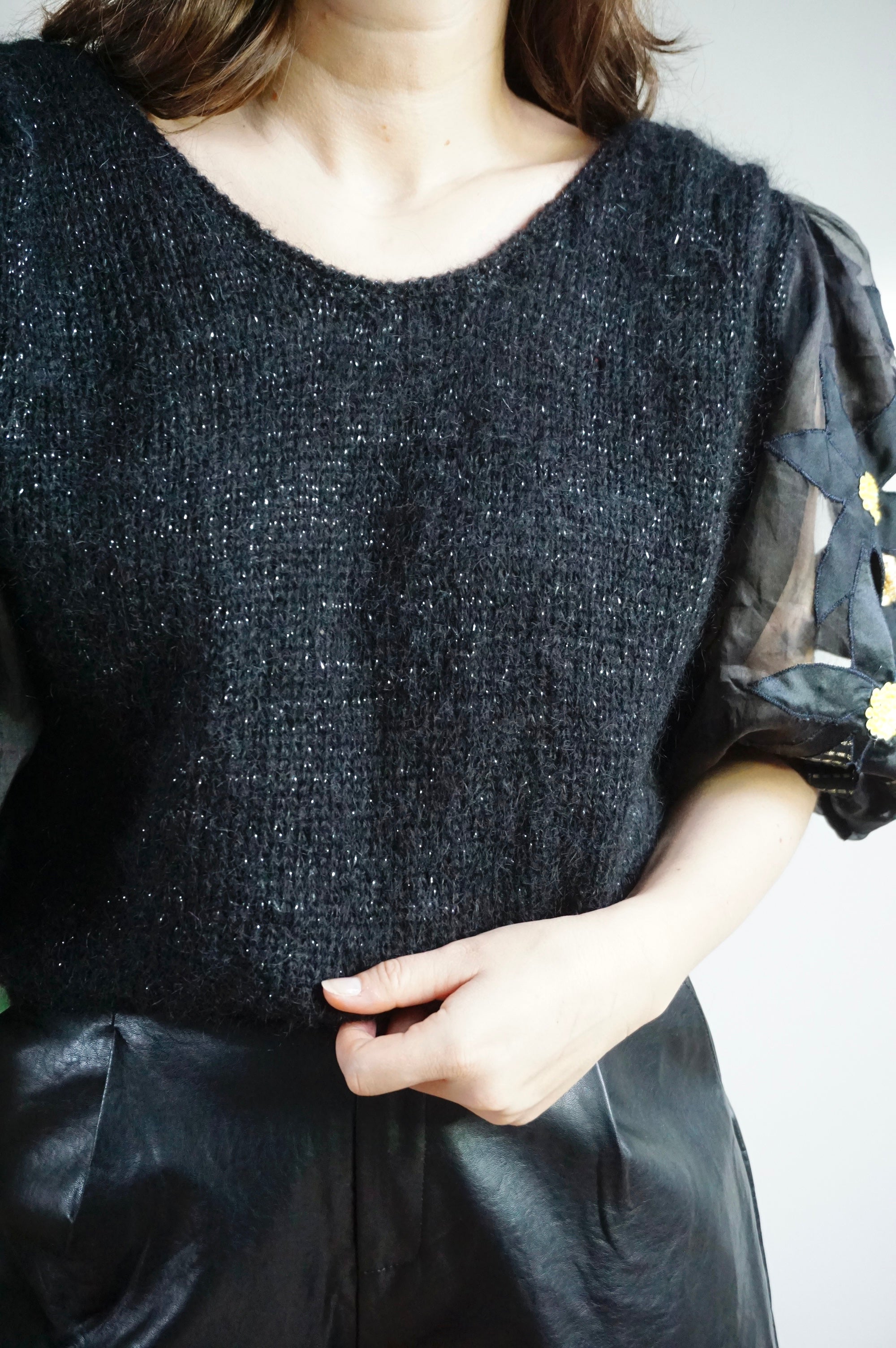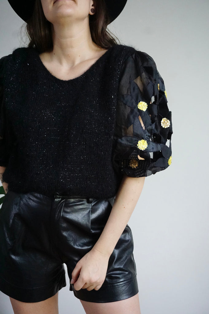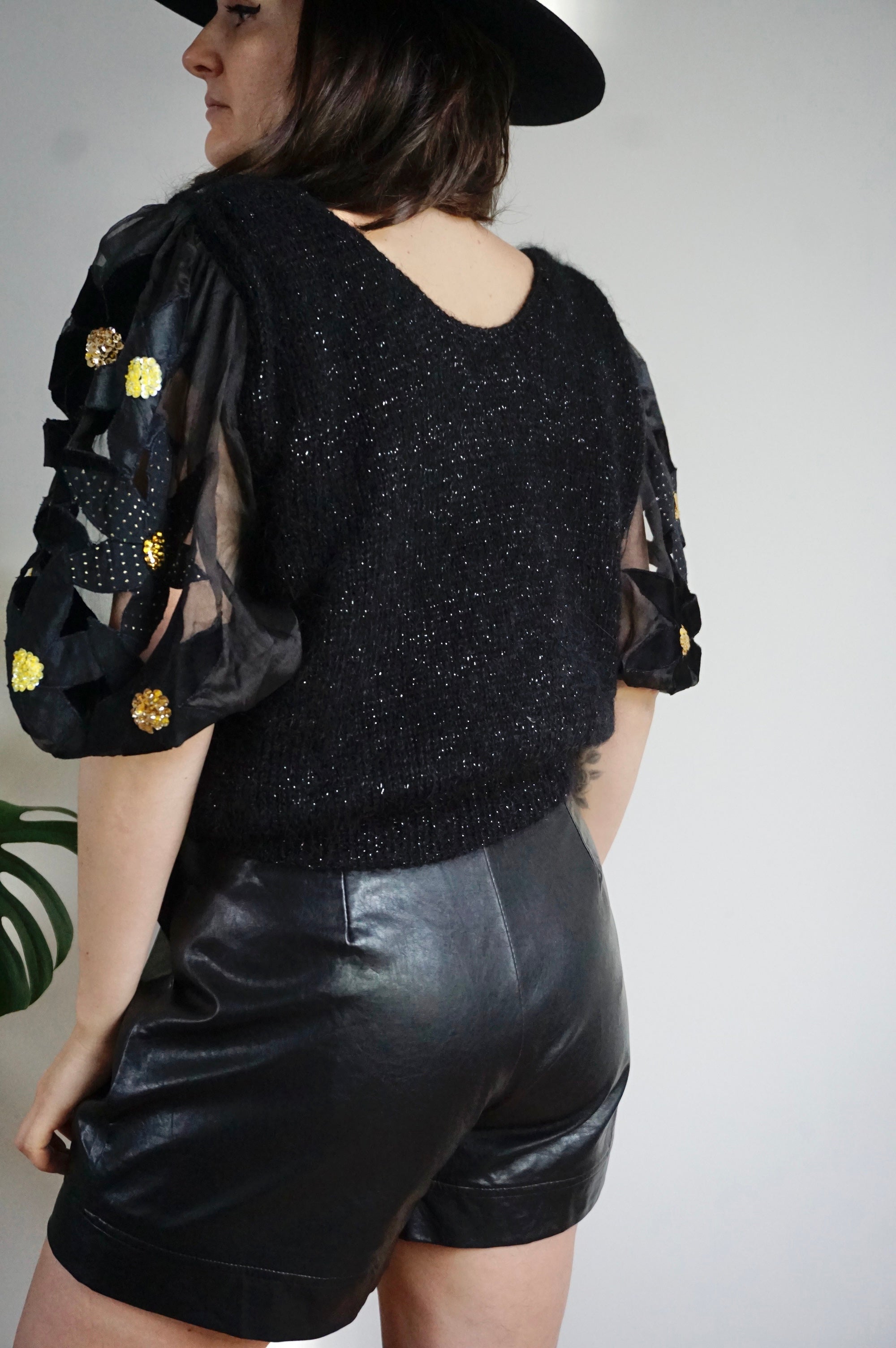 Atomic Sleeves - Vintage Glitter Top - Knitted with cut outs - L