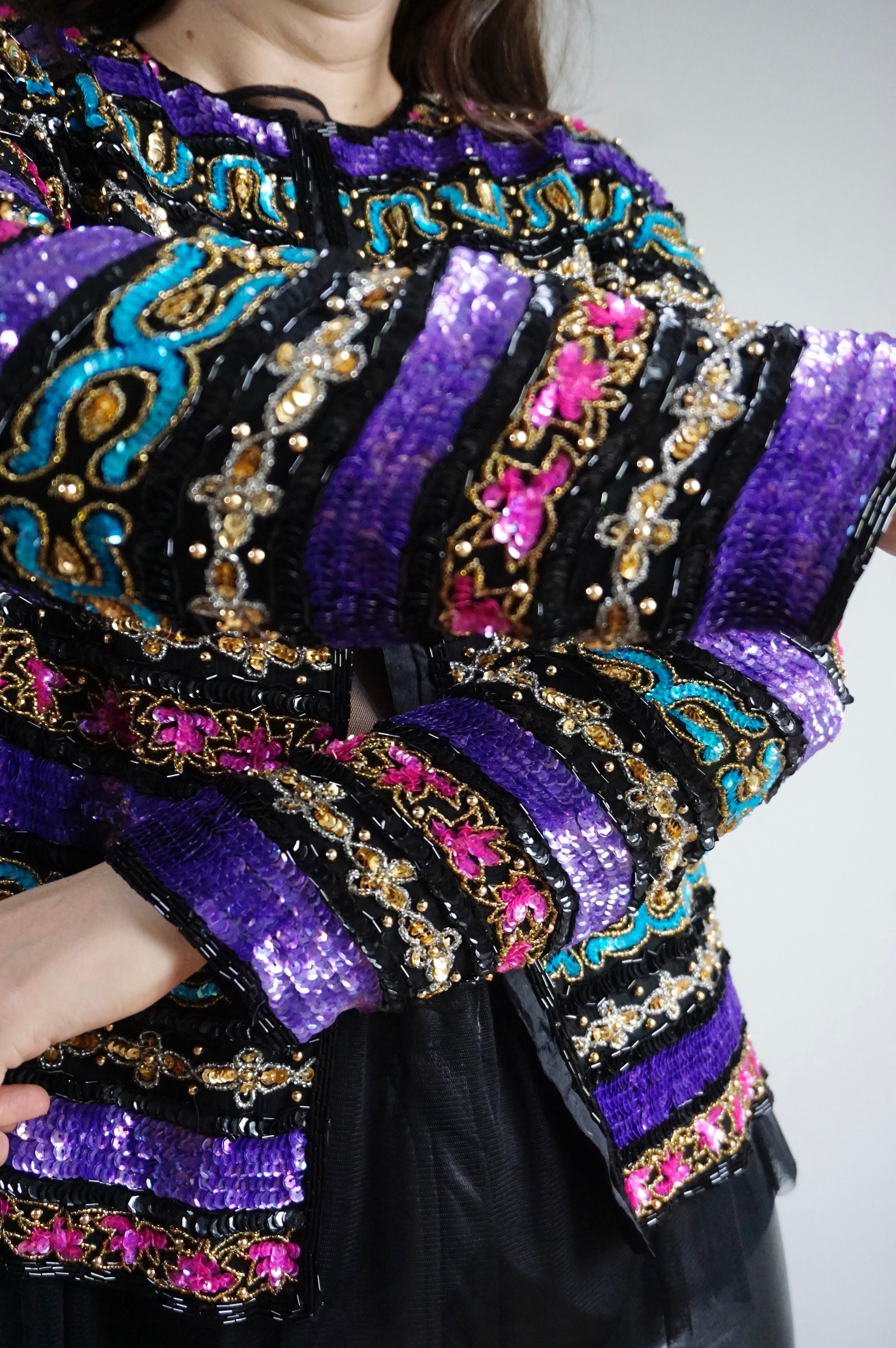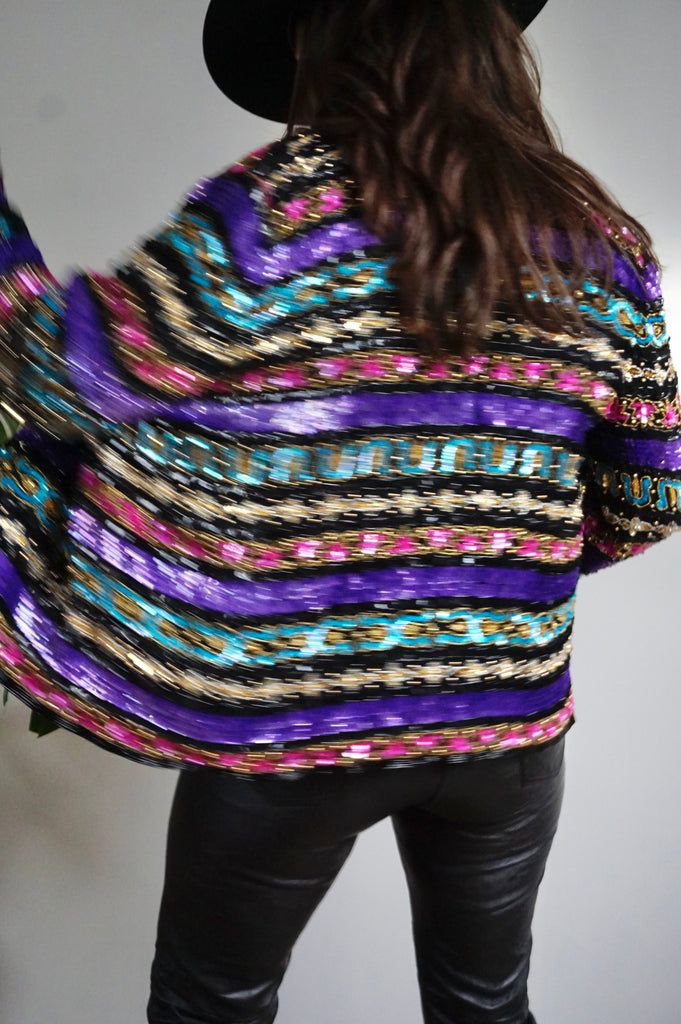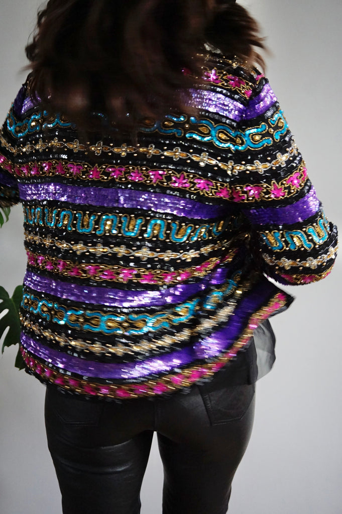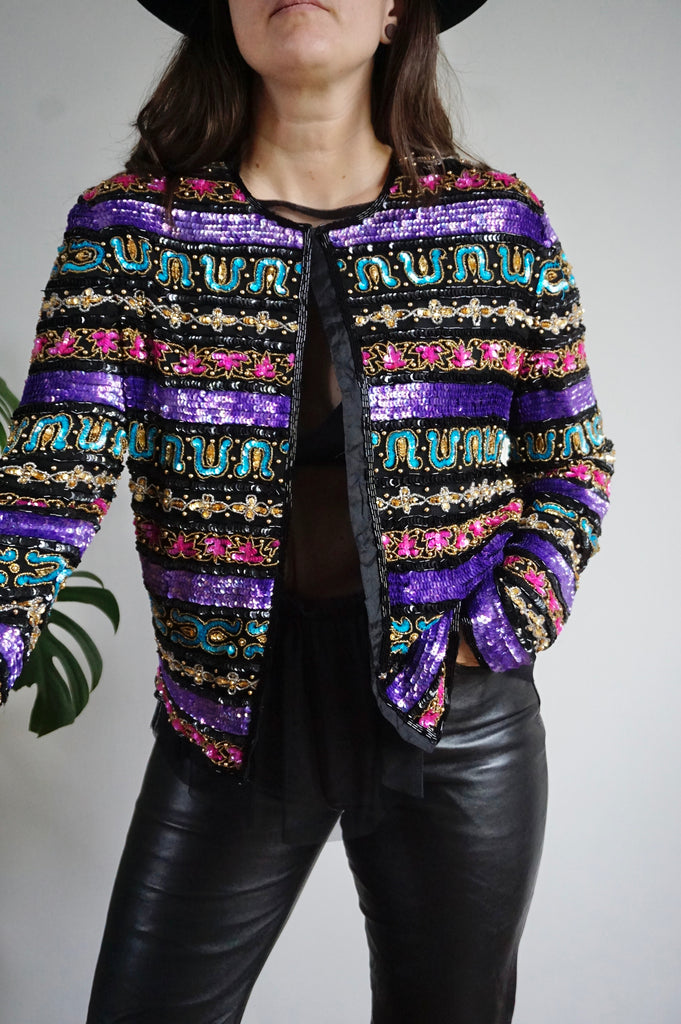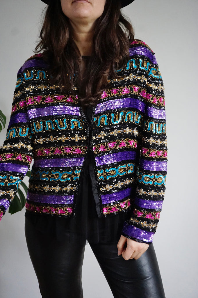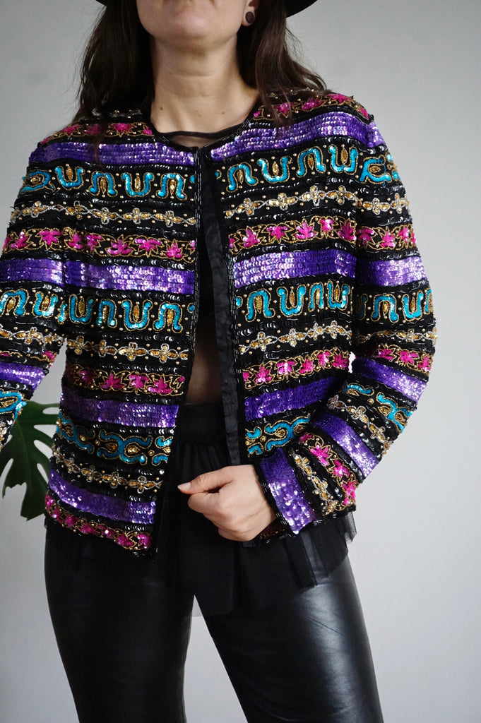 Stars in Your Eyes - Vintage 100% Silk Beaded Jacket - M