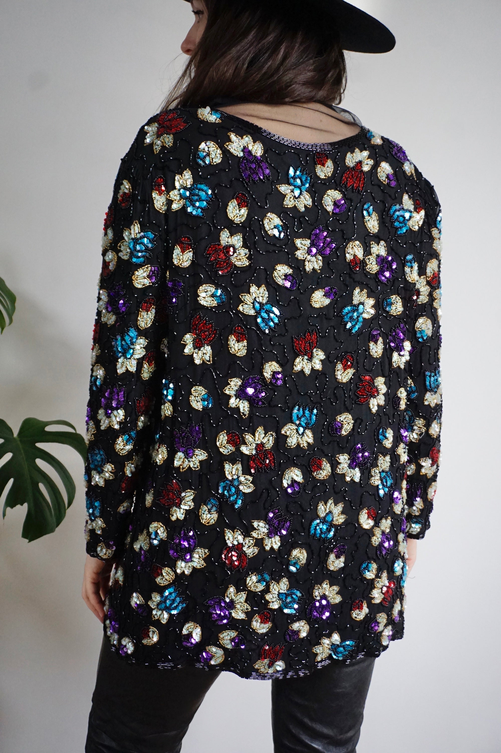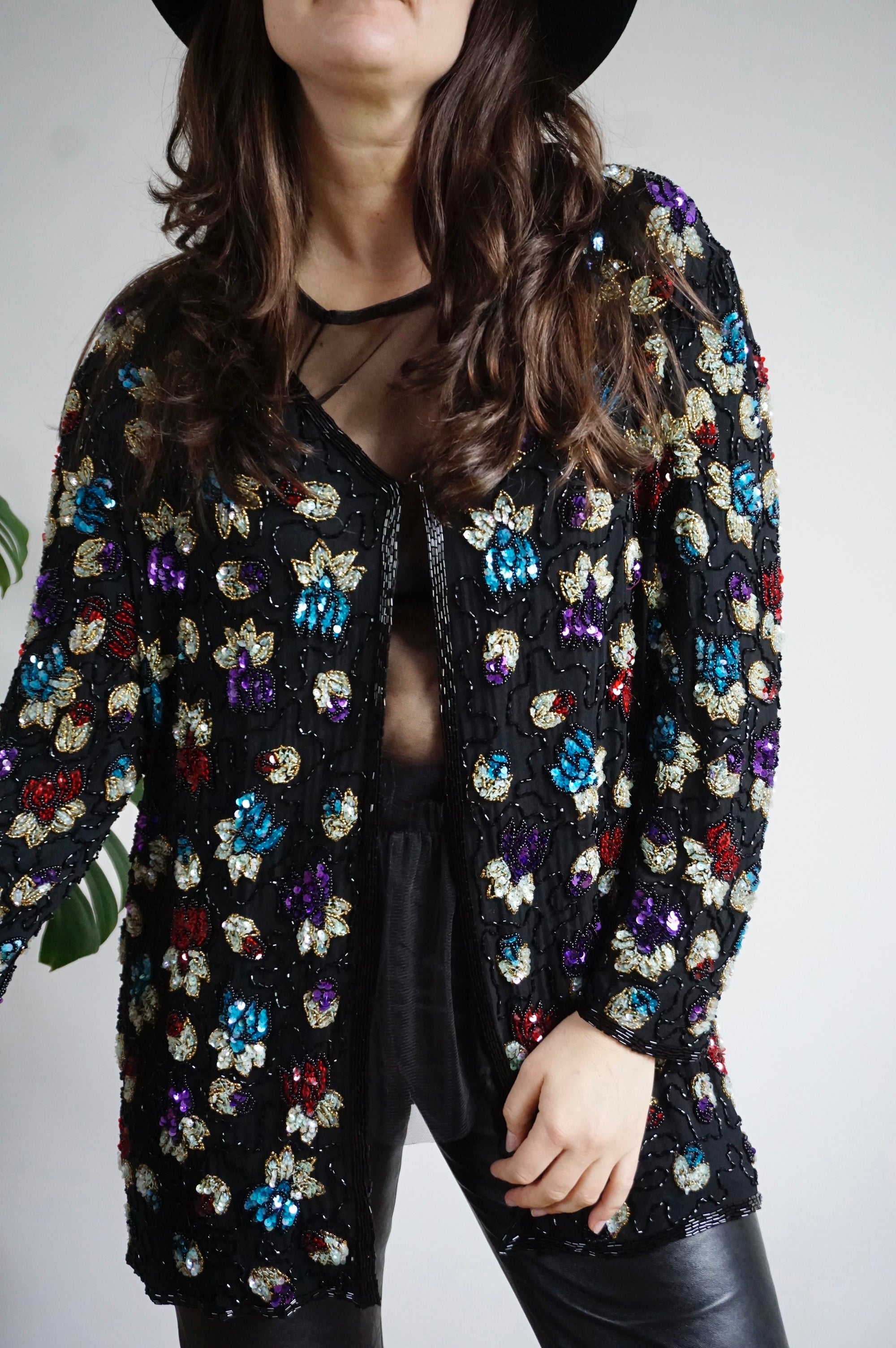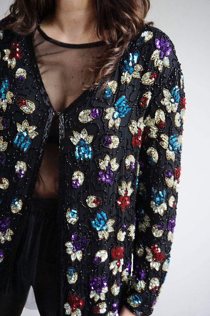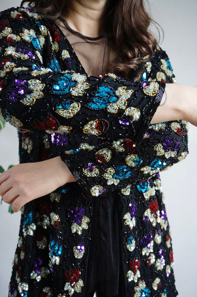 Sparkly Goddess - Vintage Beaded 100% Silk Jacket - L