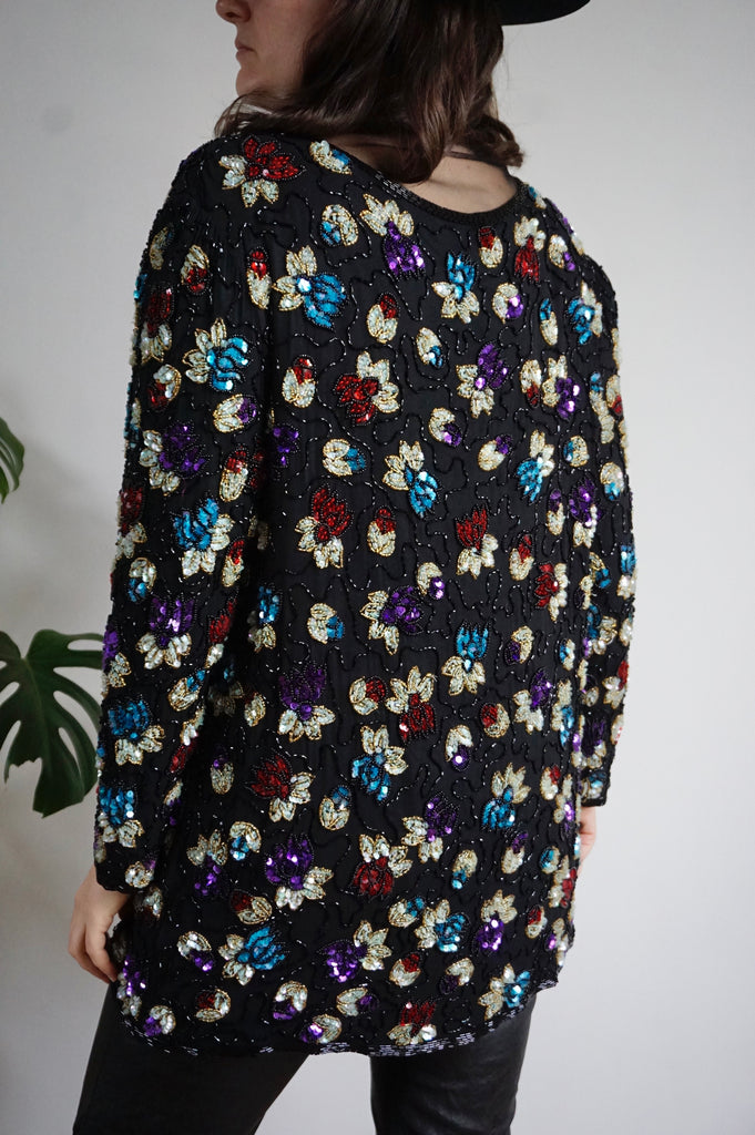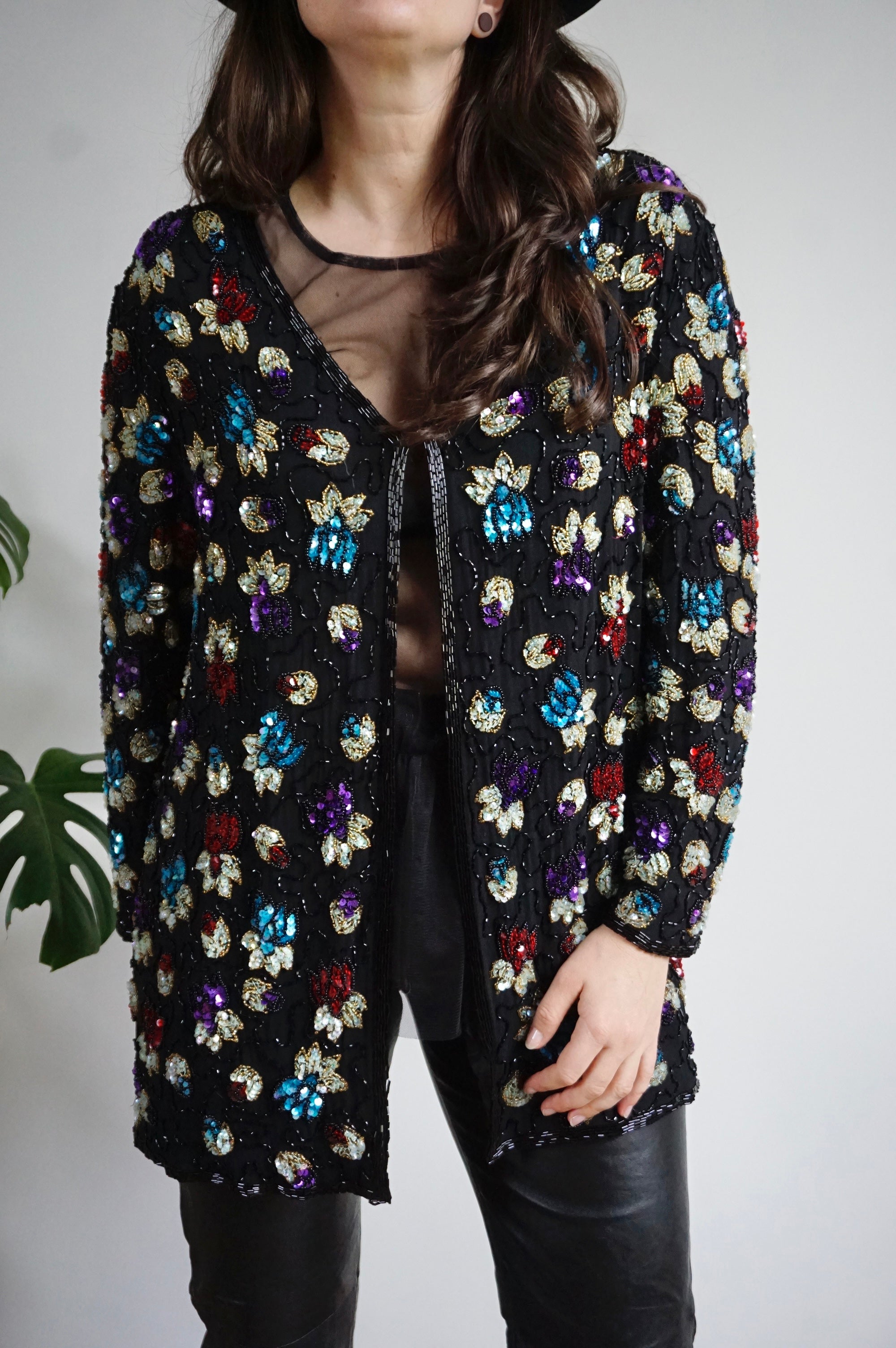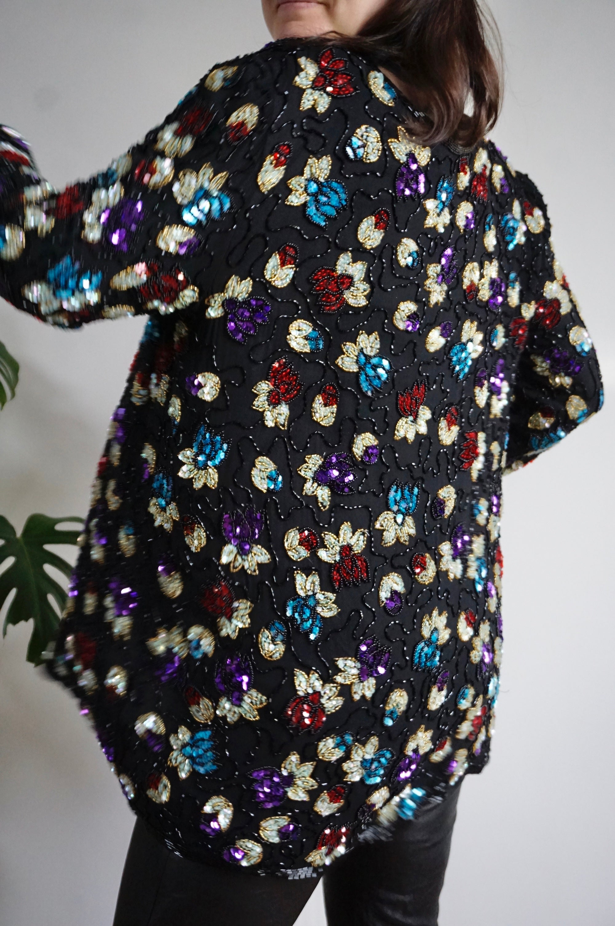 Sparkly Goddess - Vintage Beaded 100% Silk Jacket - L