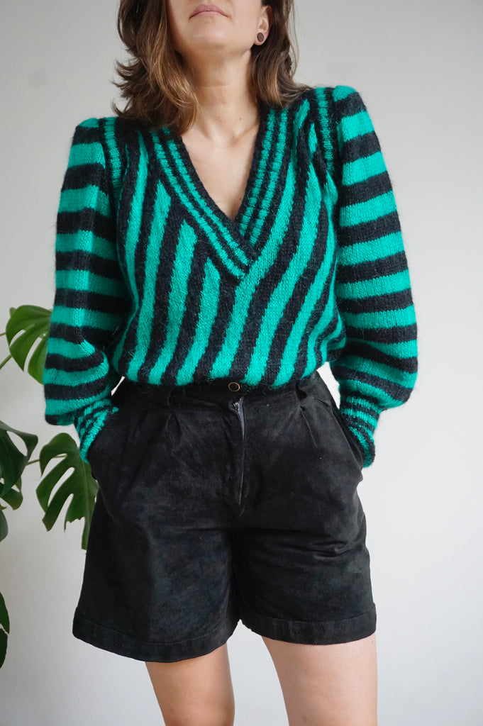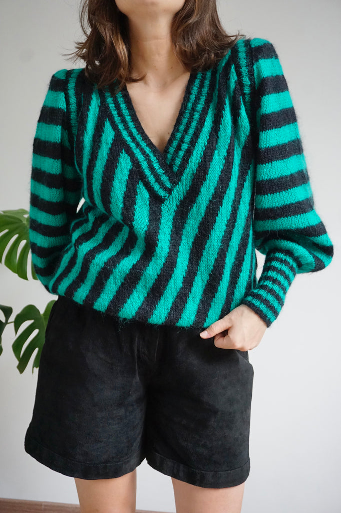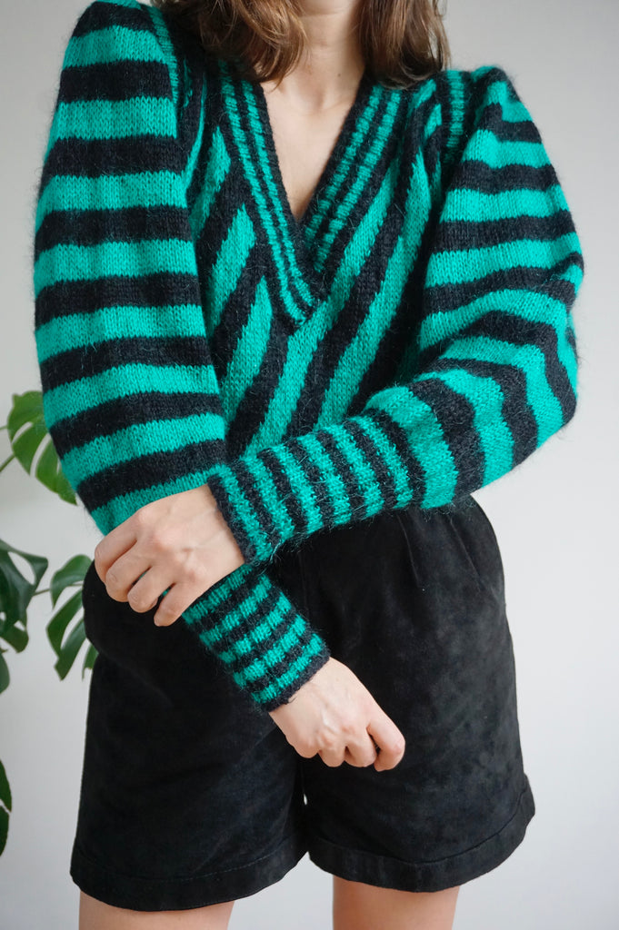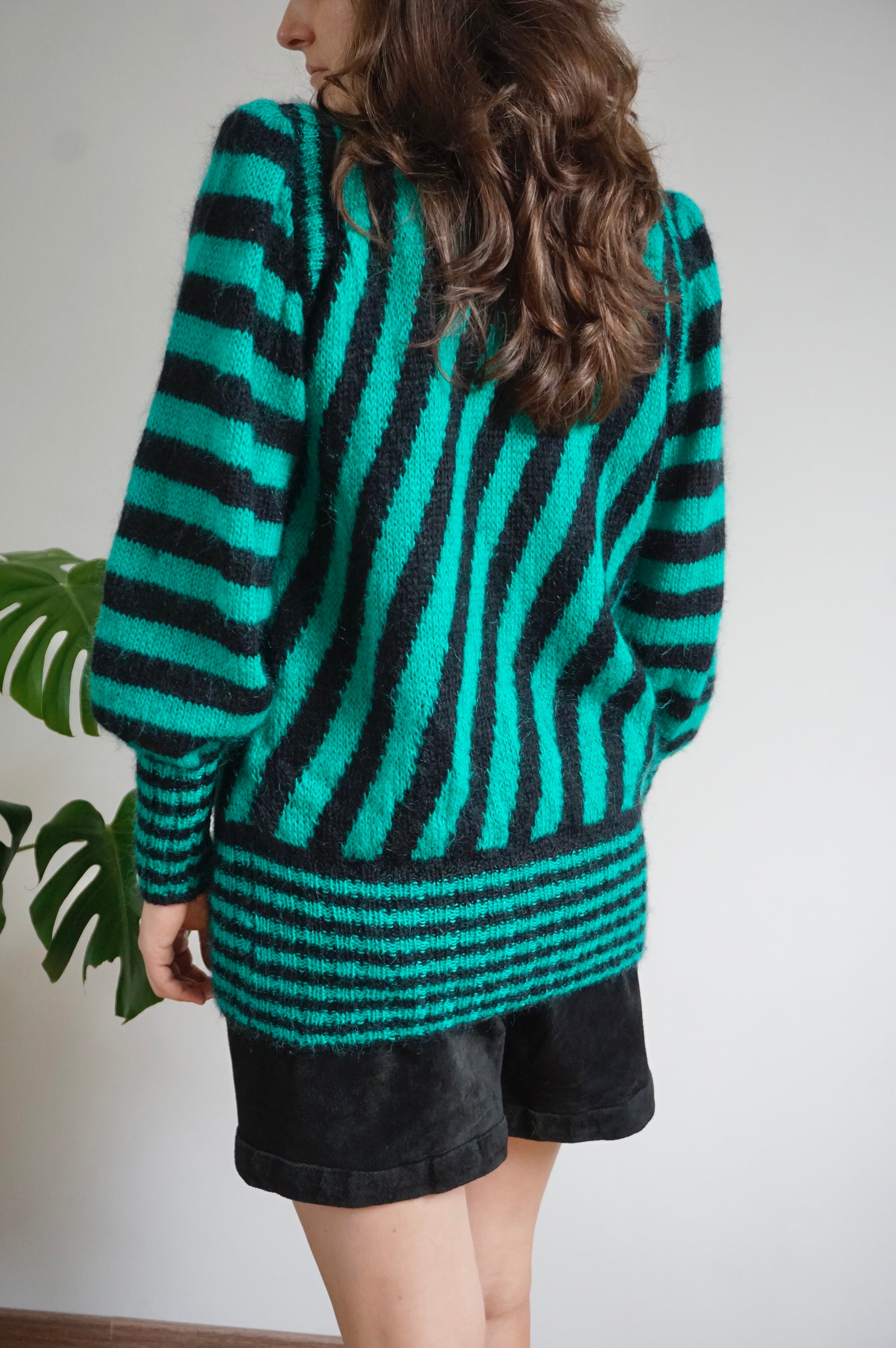 Teal Zebra - Vintage Sweater - Mohair Wool - M/L