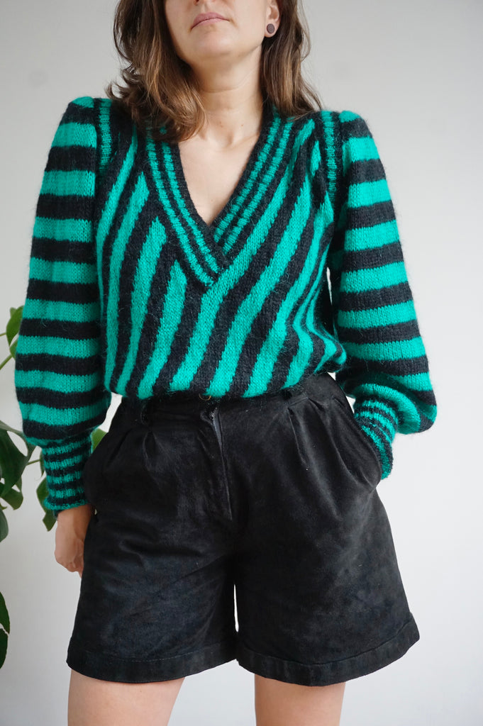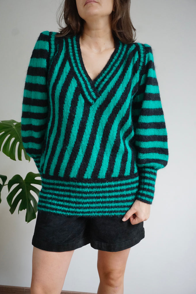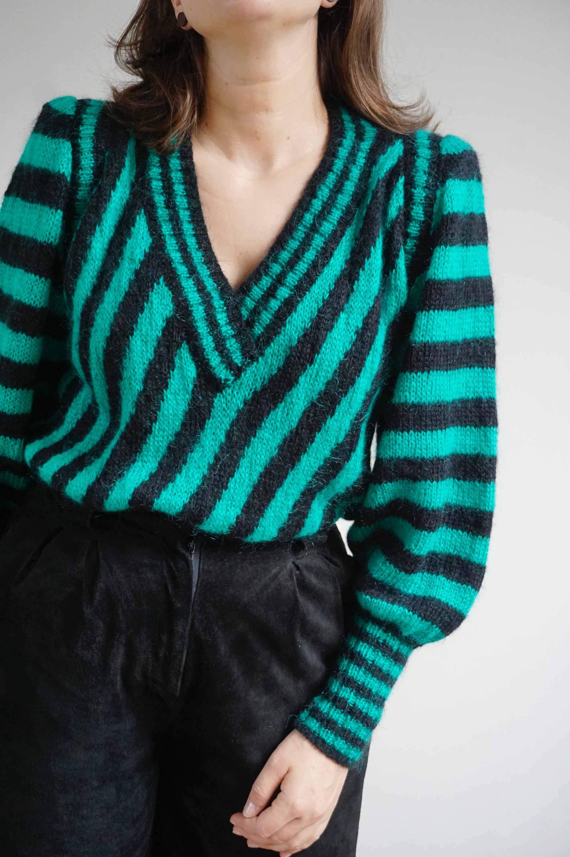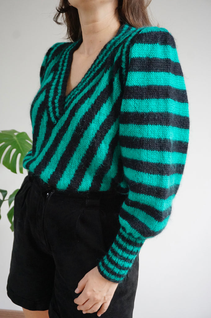 Teal Zebra - Vintage Sweater - Mohair Wool - M/L