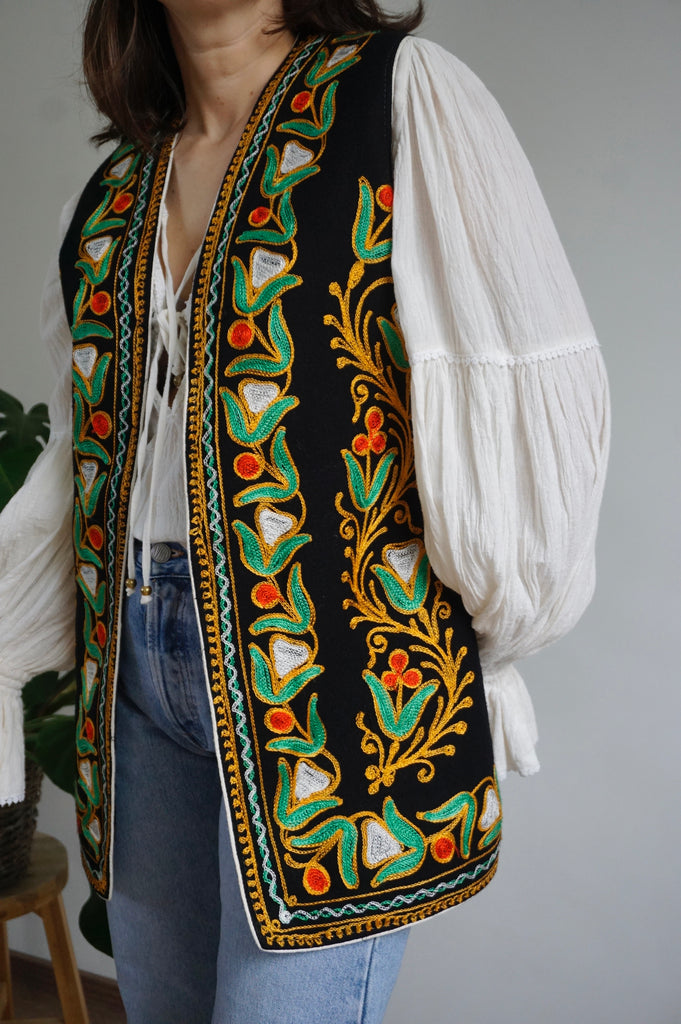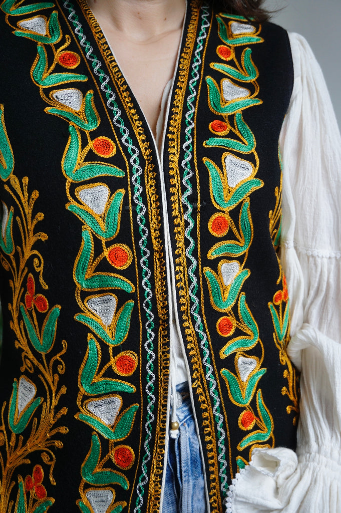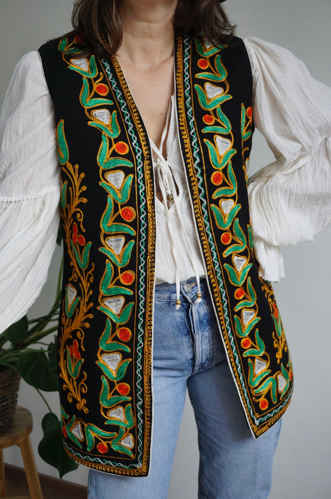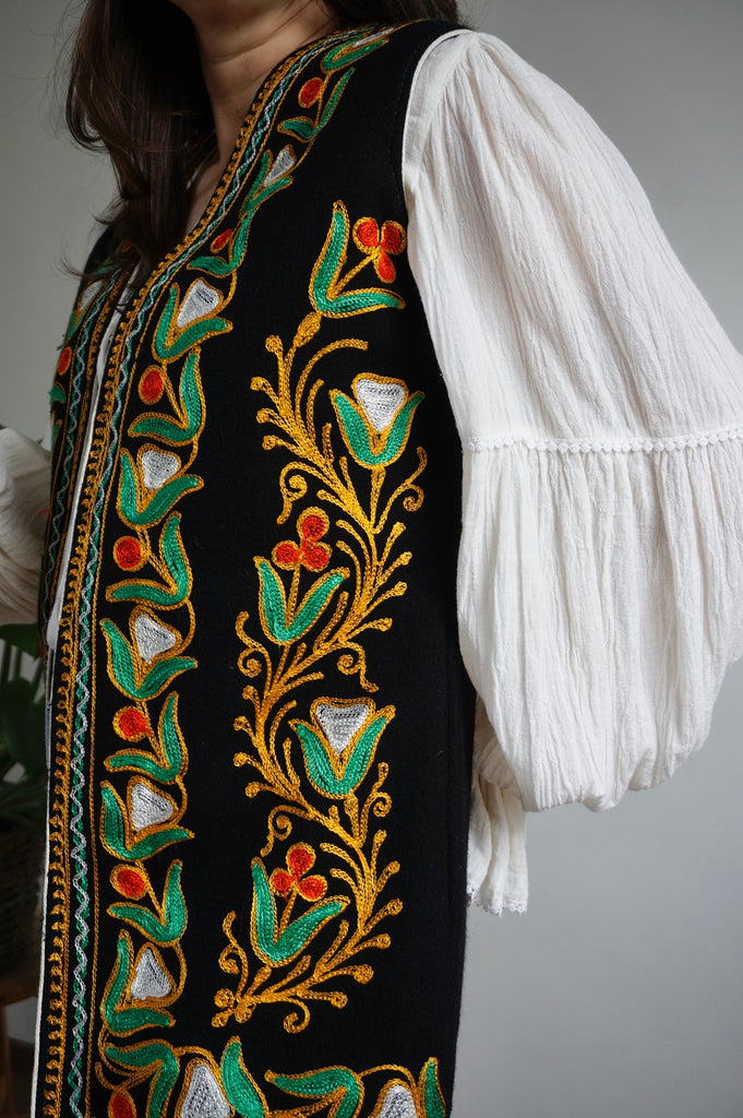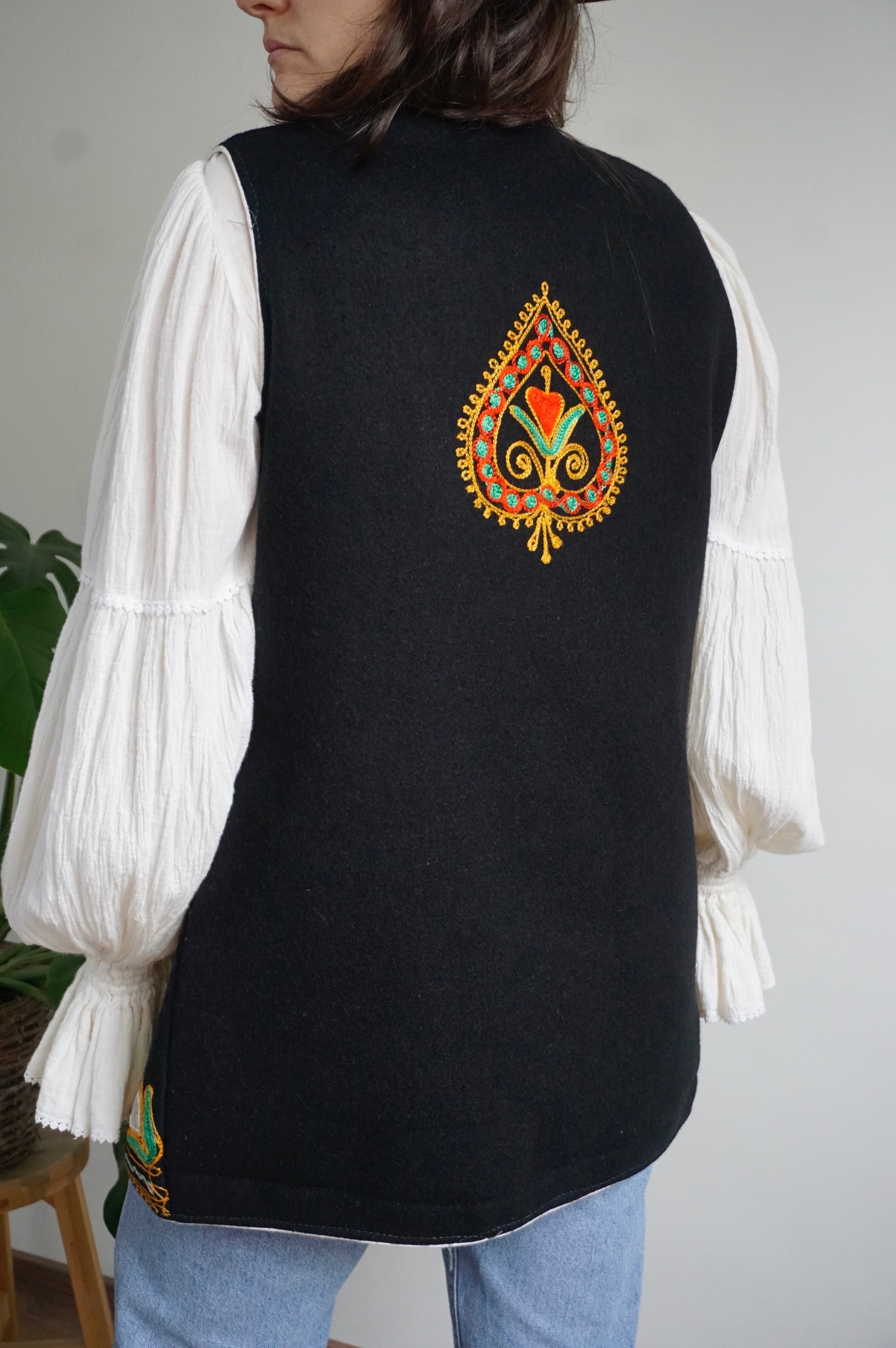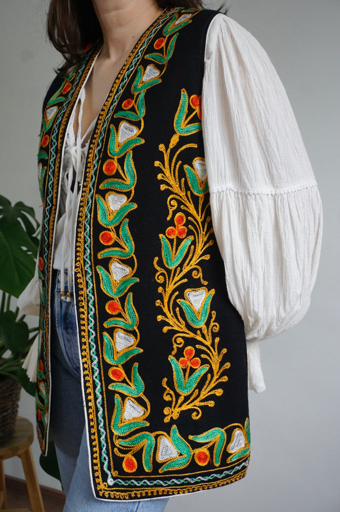 Bohémien Princess - Vintage Embroidered Gilet/Waistcoat - Wool - M