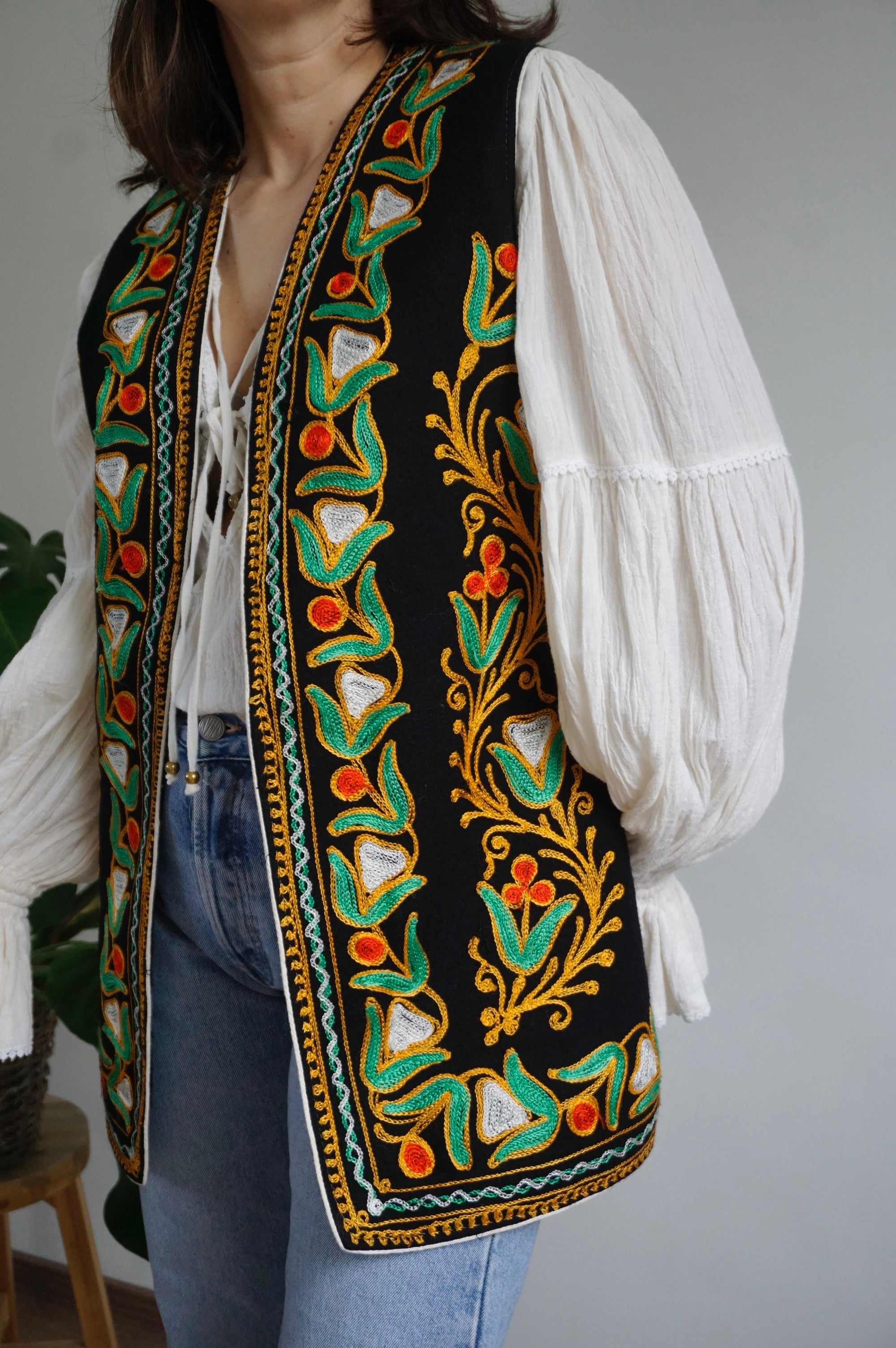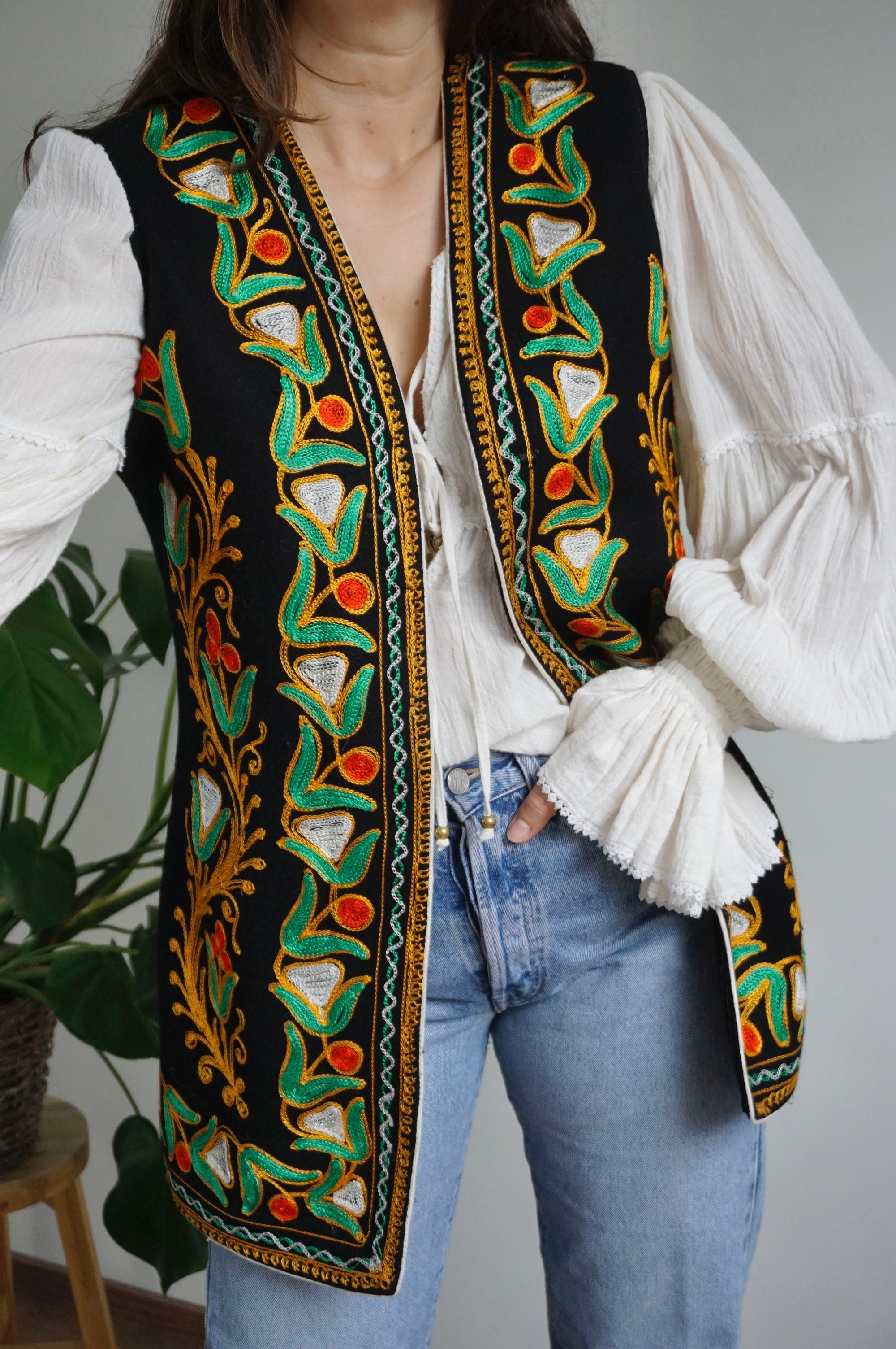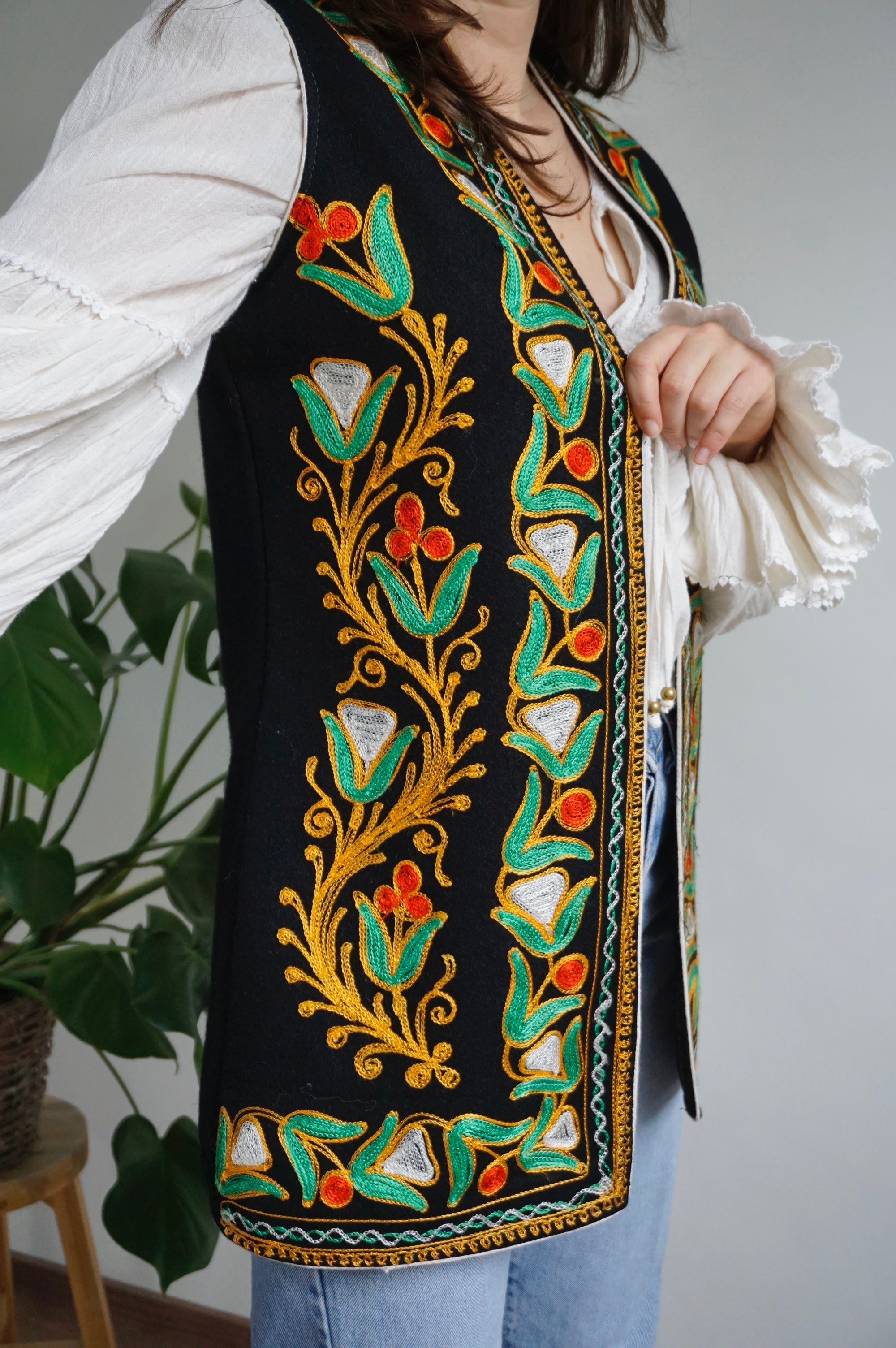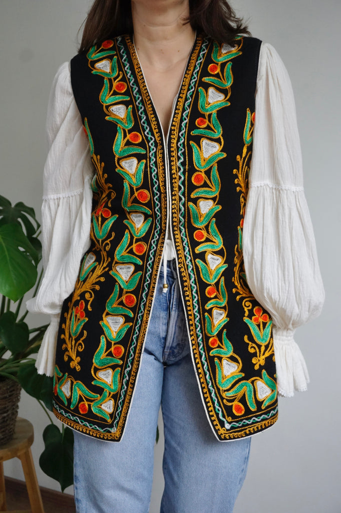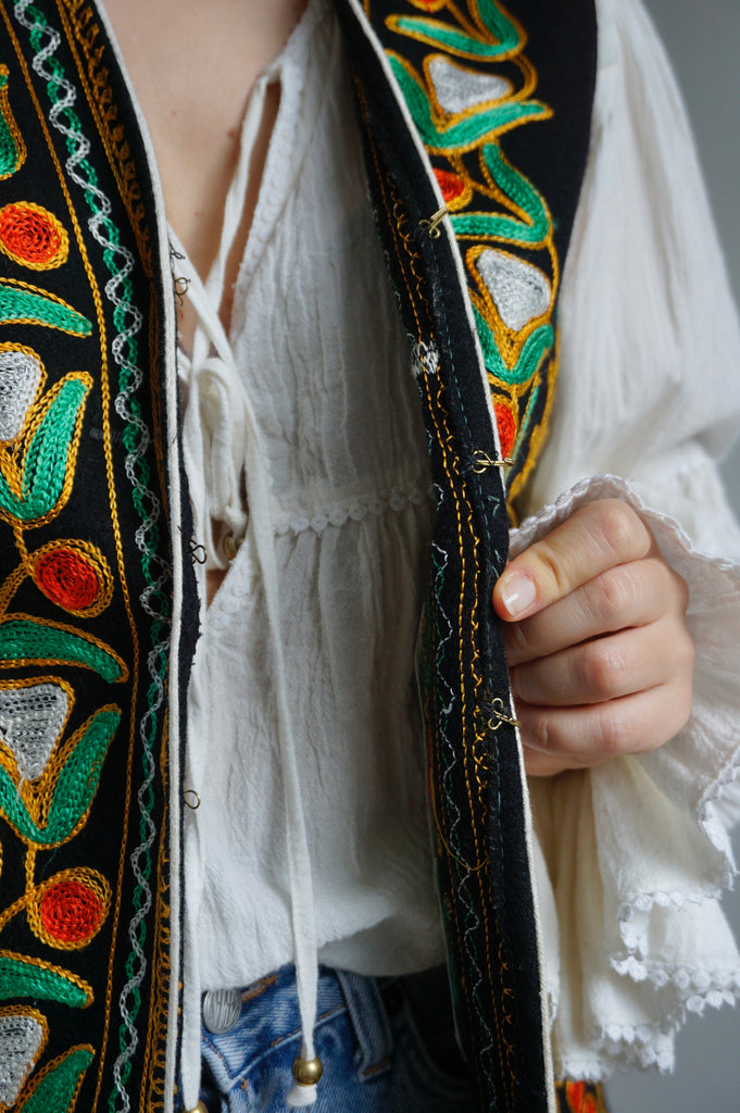 Bohémien Princess - Vintage Embroidered Gilet/Waistcoat - Wool - M