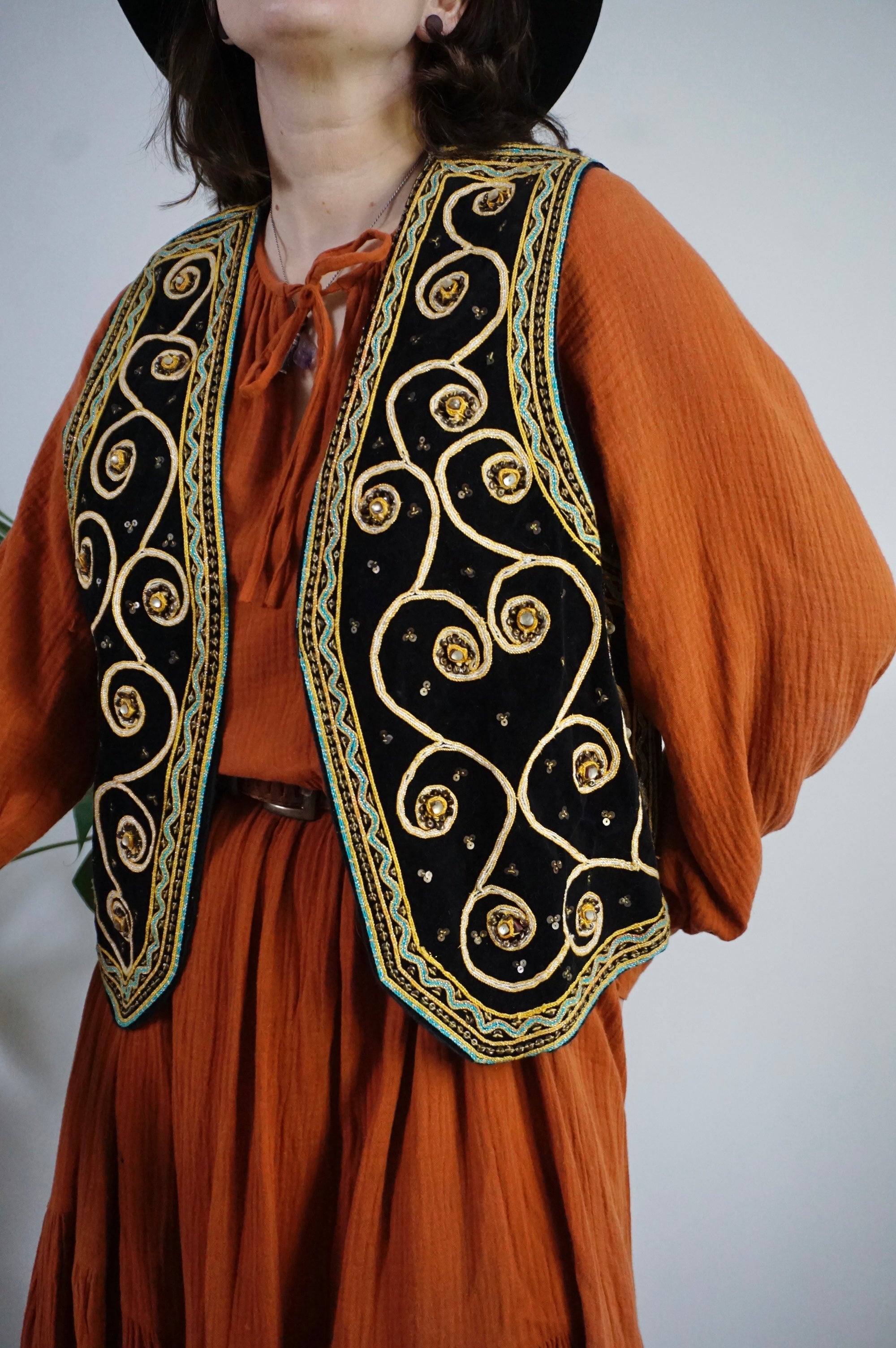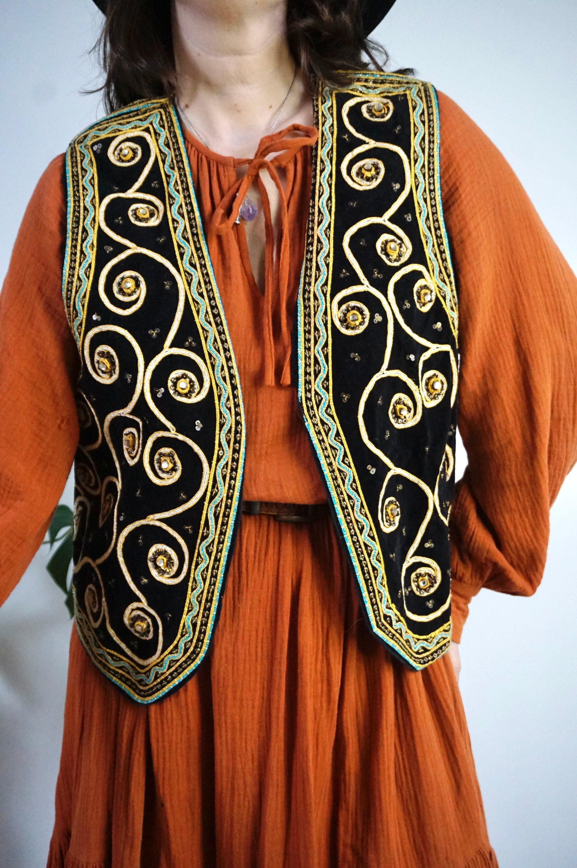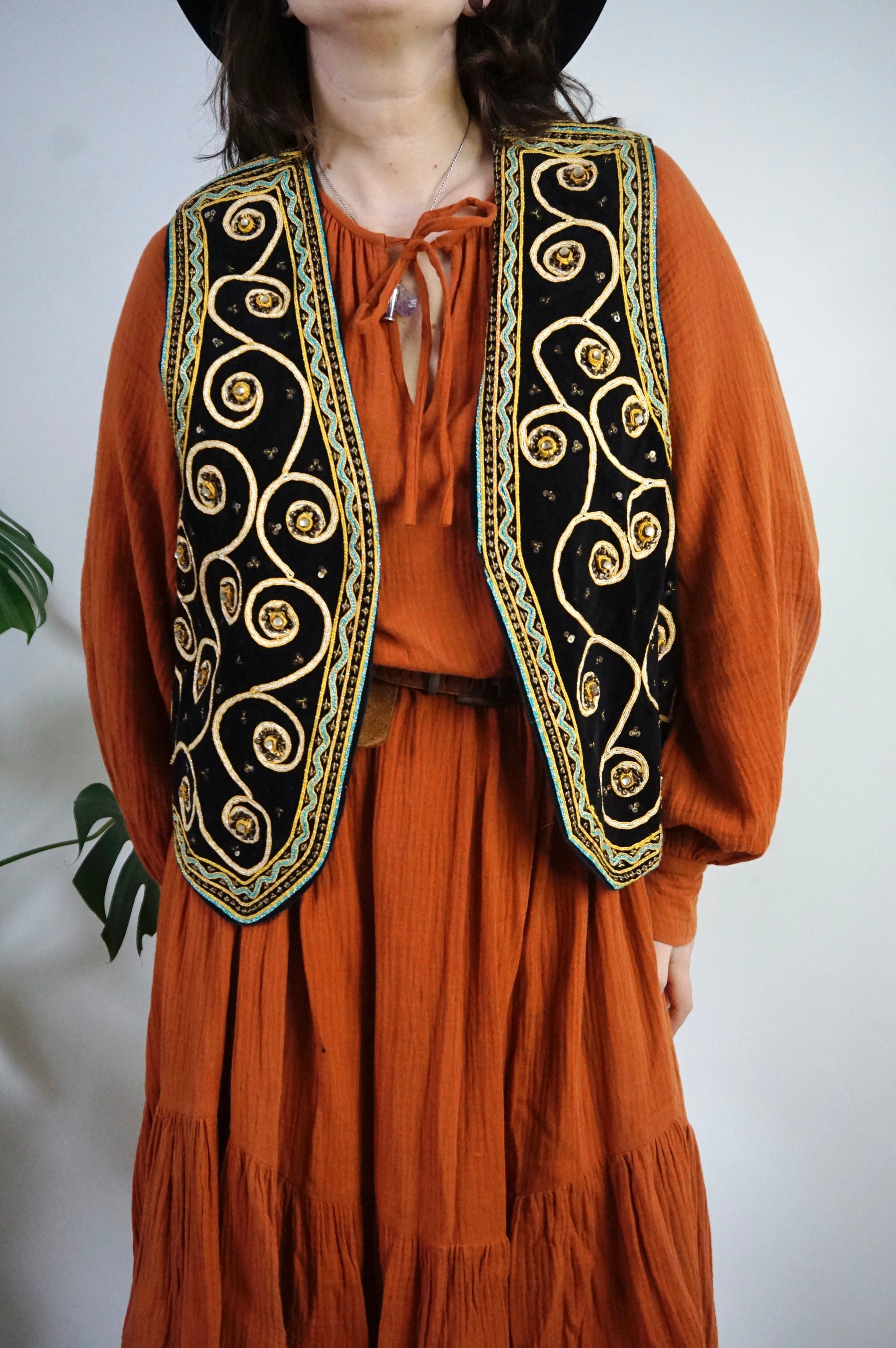 Boho Queen - Vintage Velvet & Embroidered Gilet/Waistcoat - L