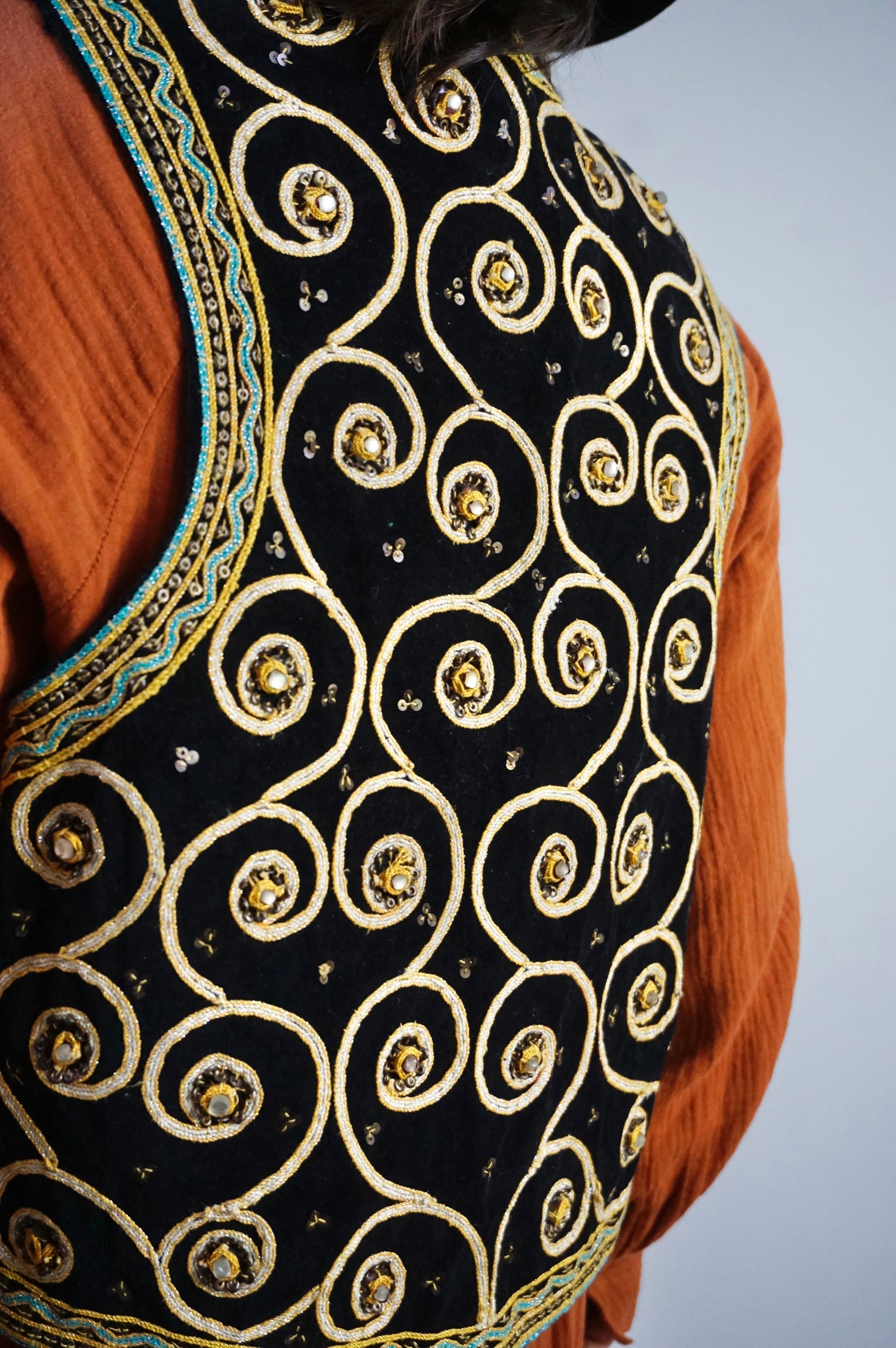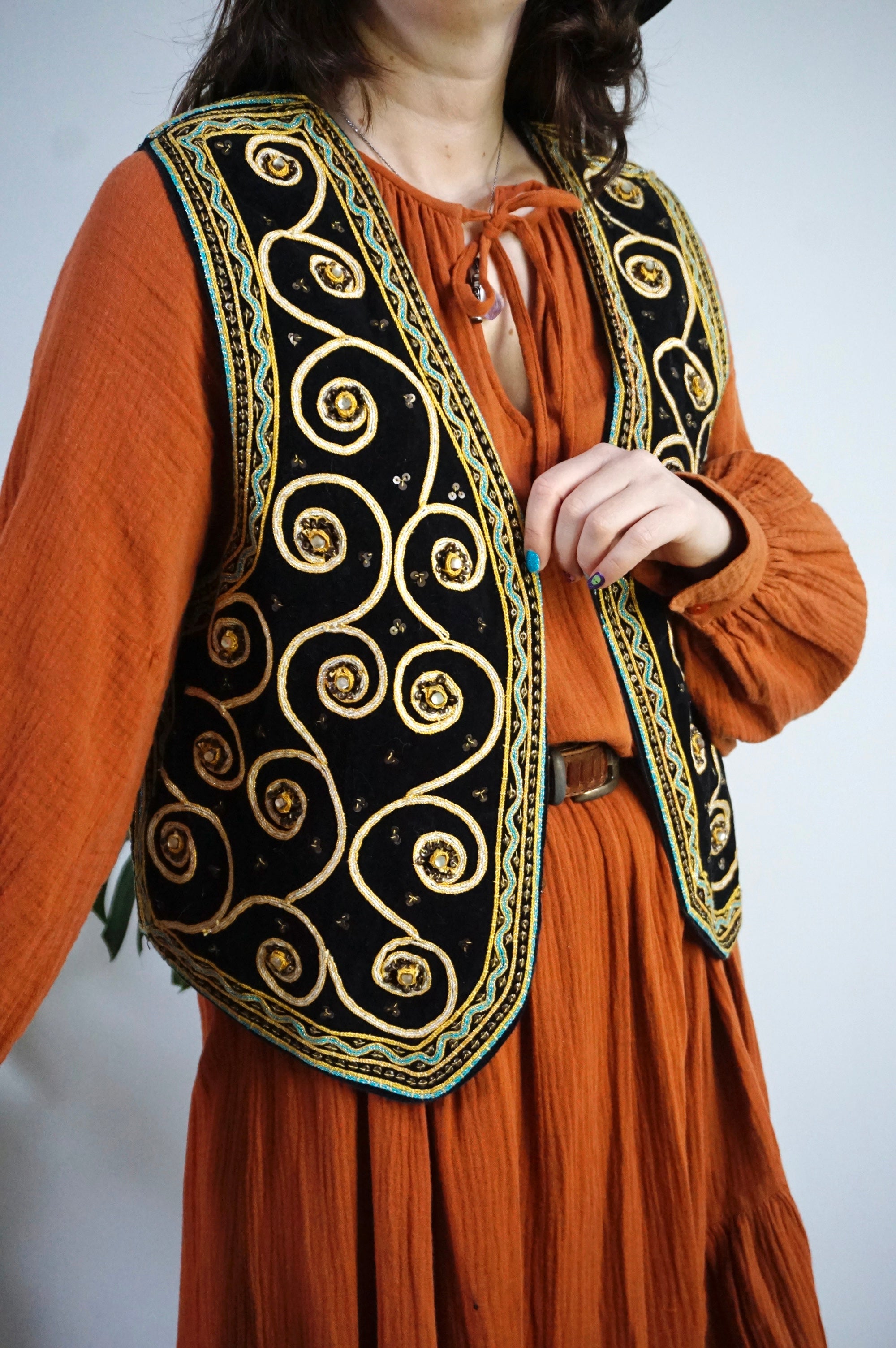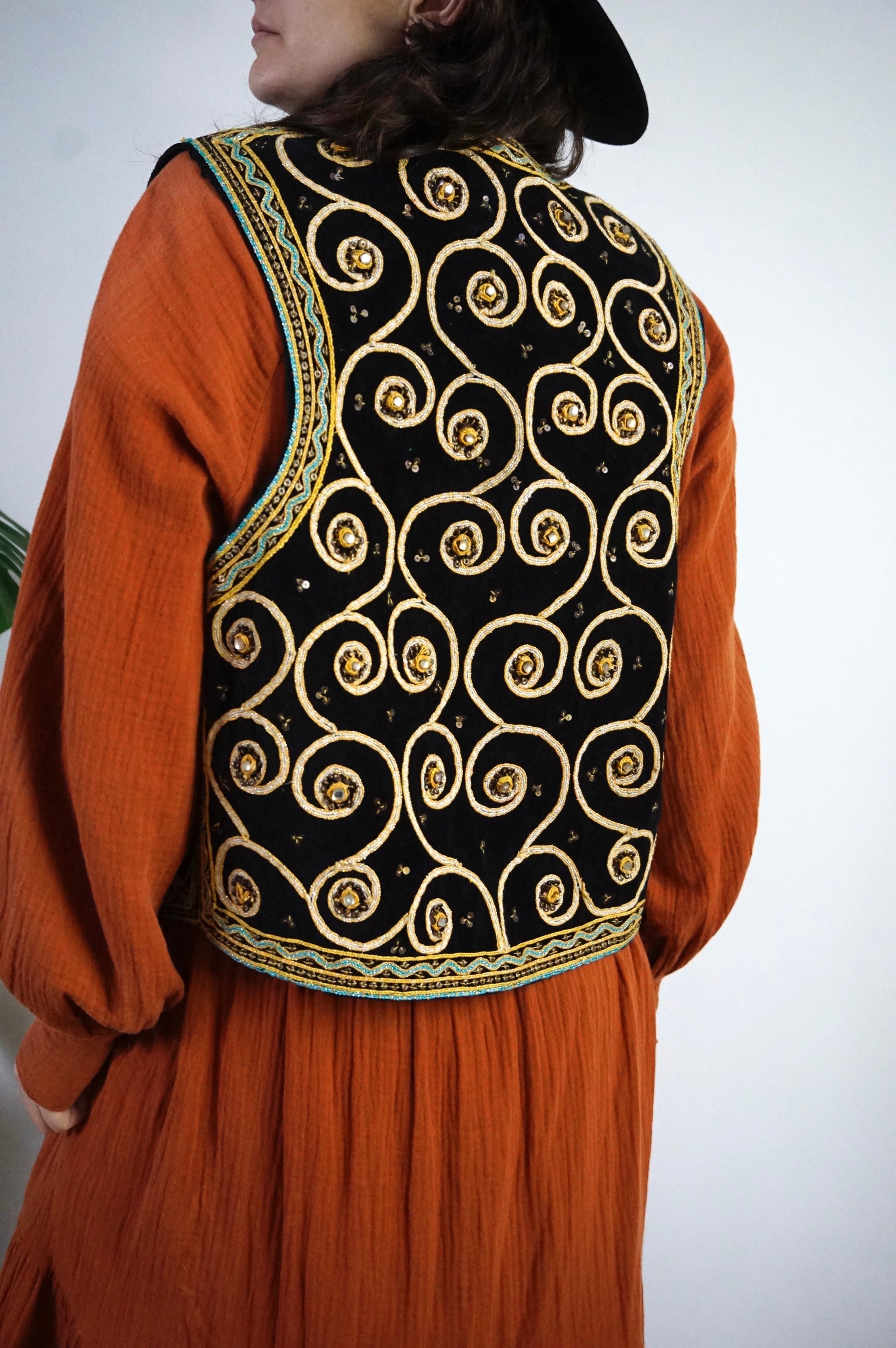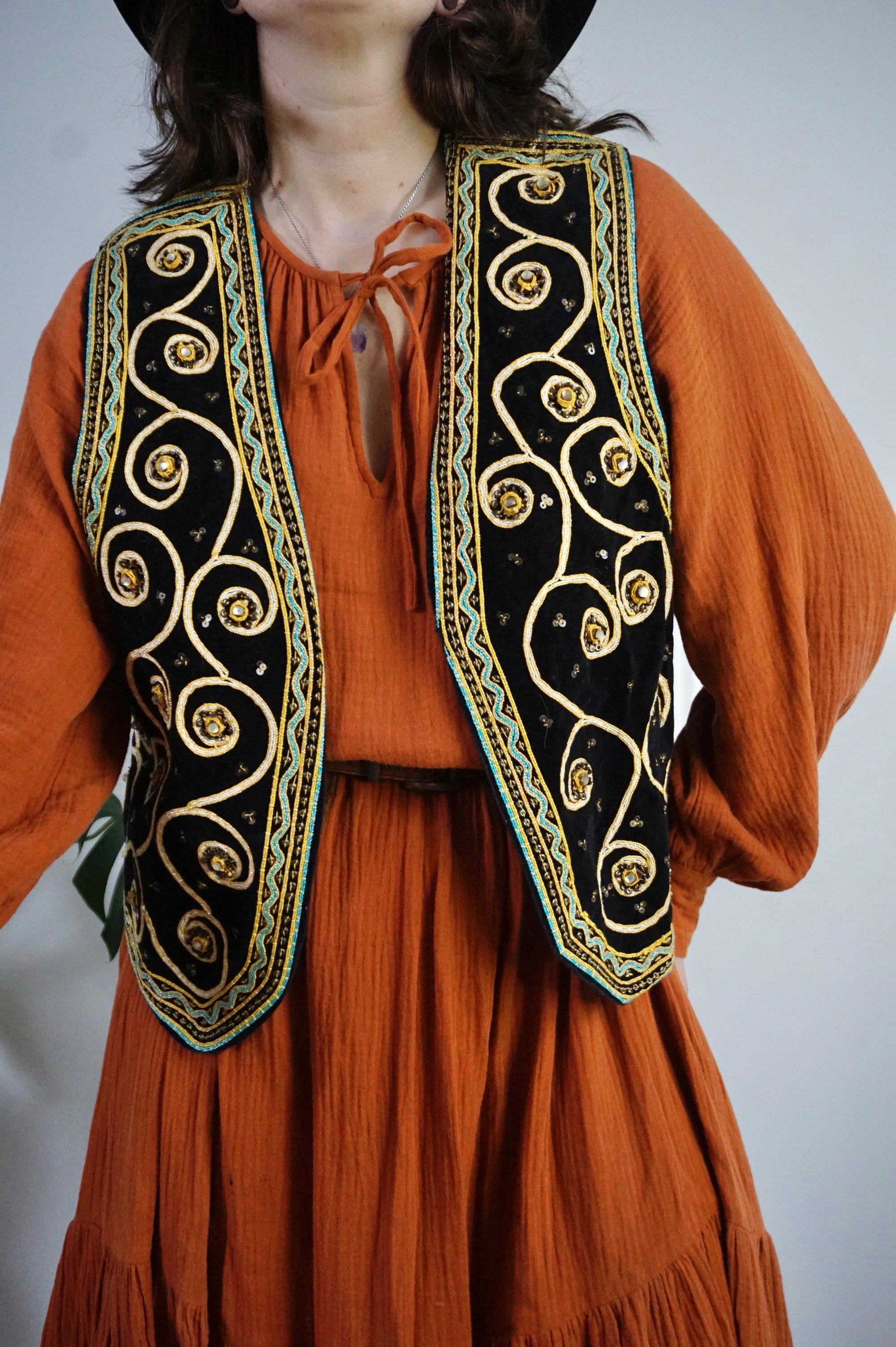 Boho Queen - Vintage Velvet & Embroidered Gilet/Waistcoat - L