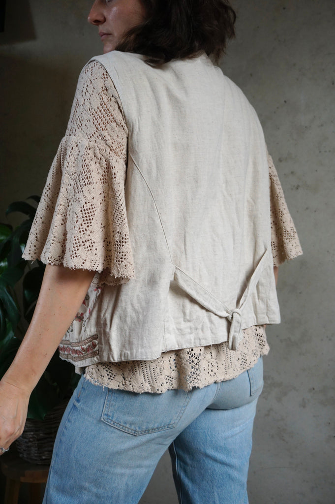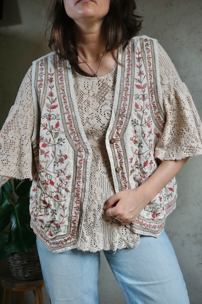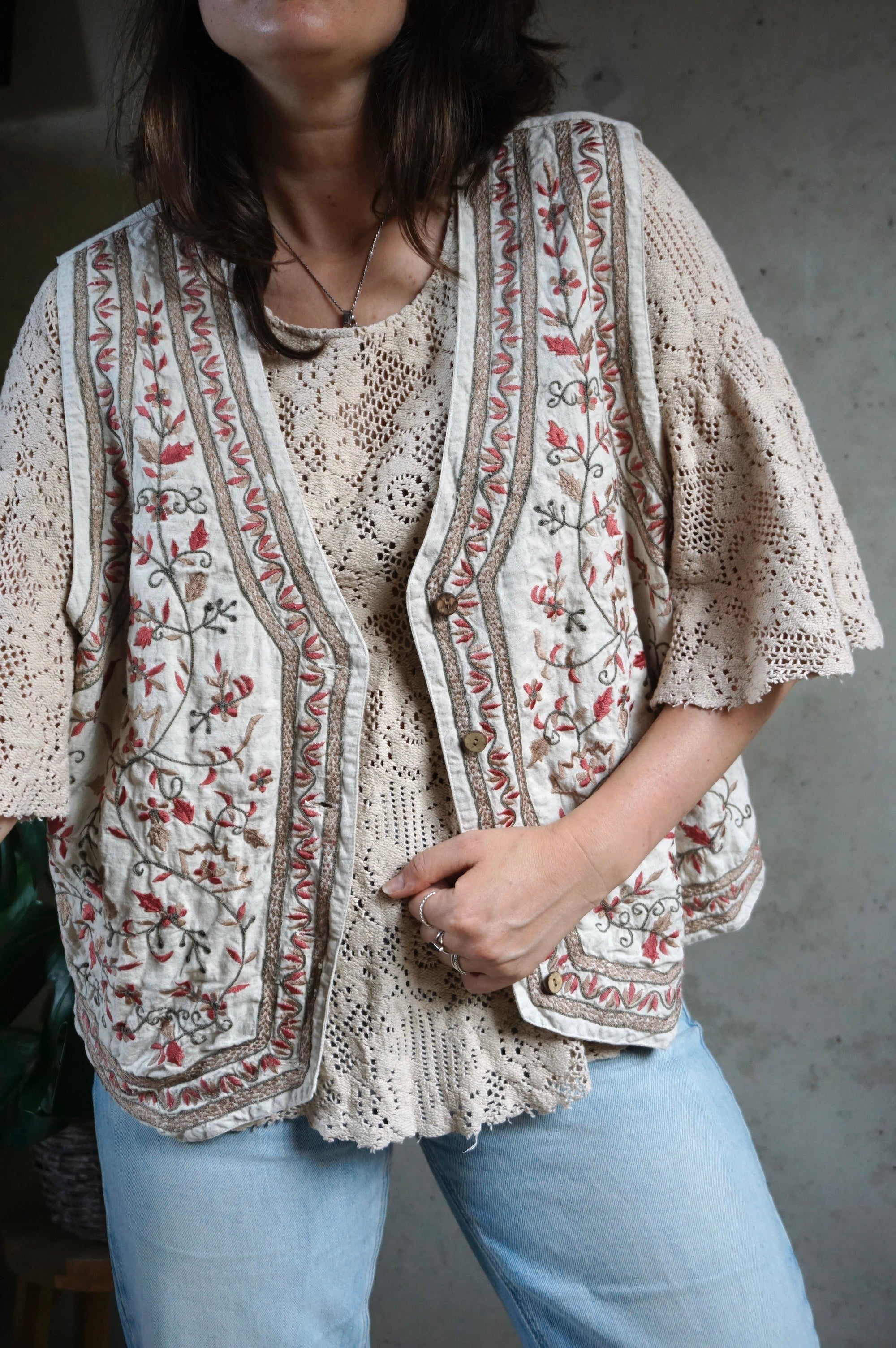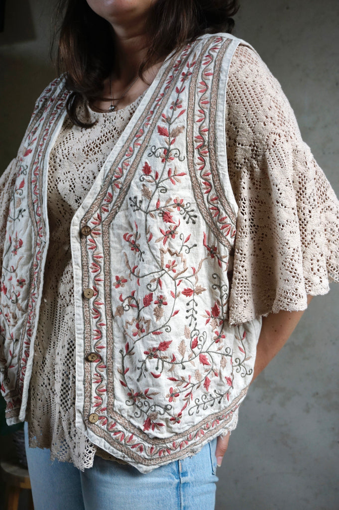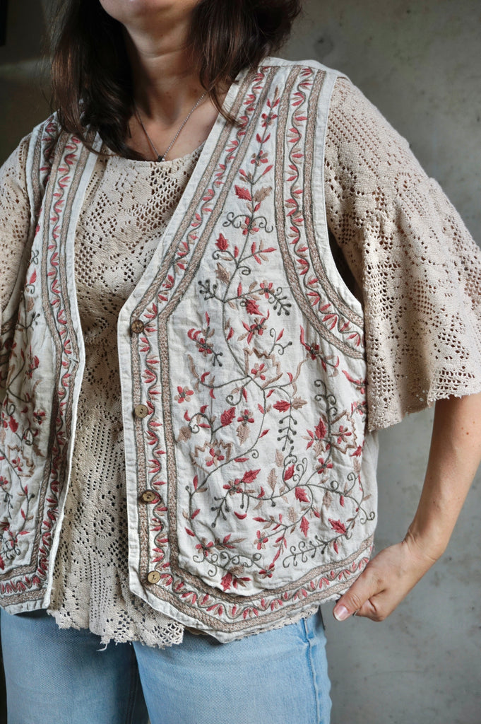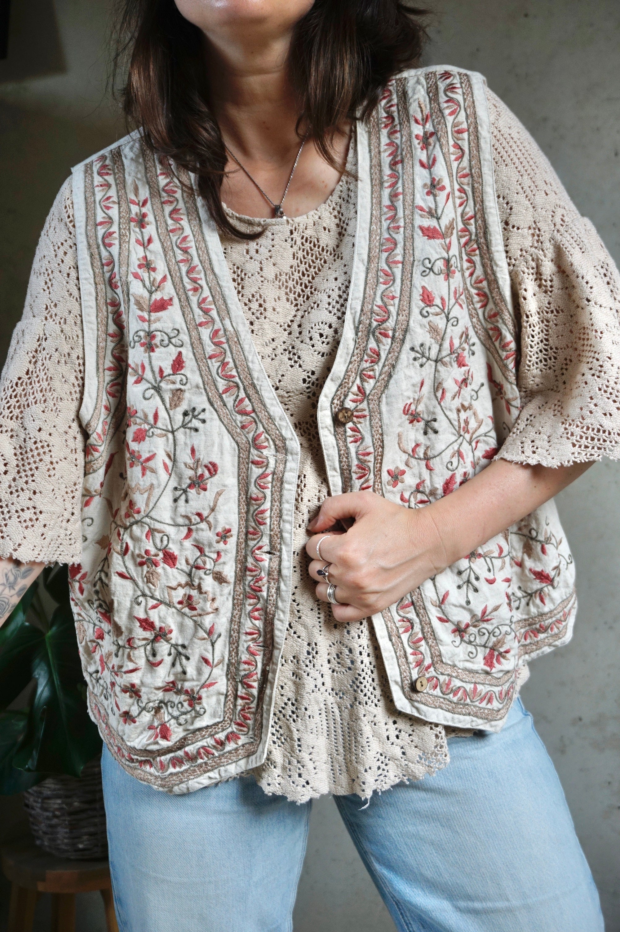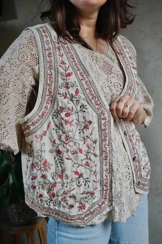 Cotton Flowers - Vintage Embroidered Gilet/waistcoat - XL