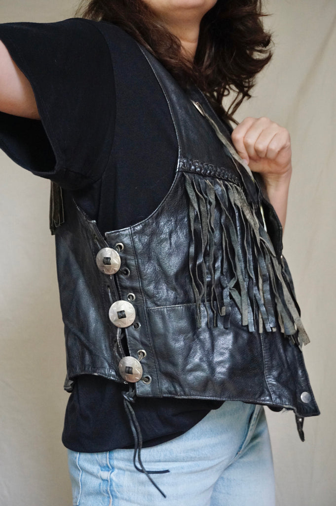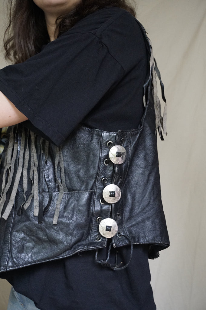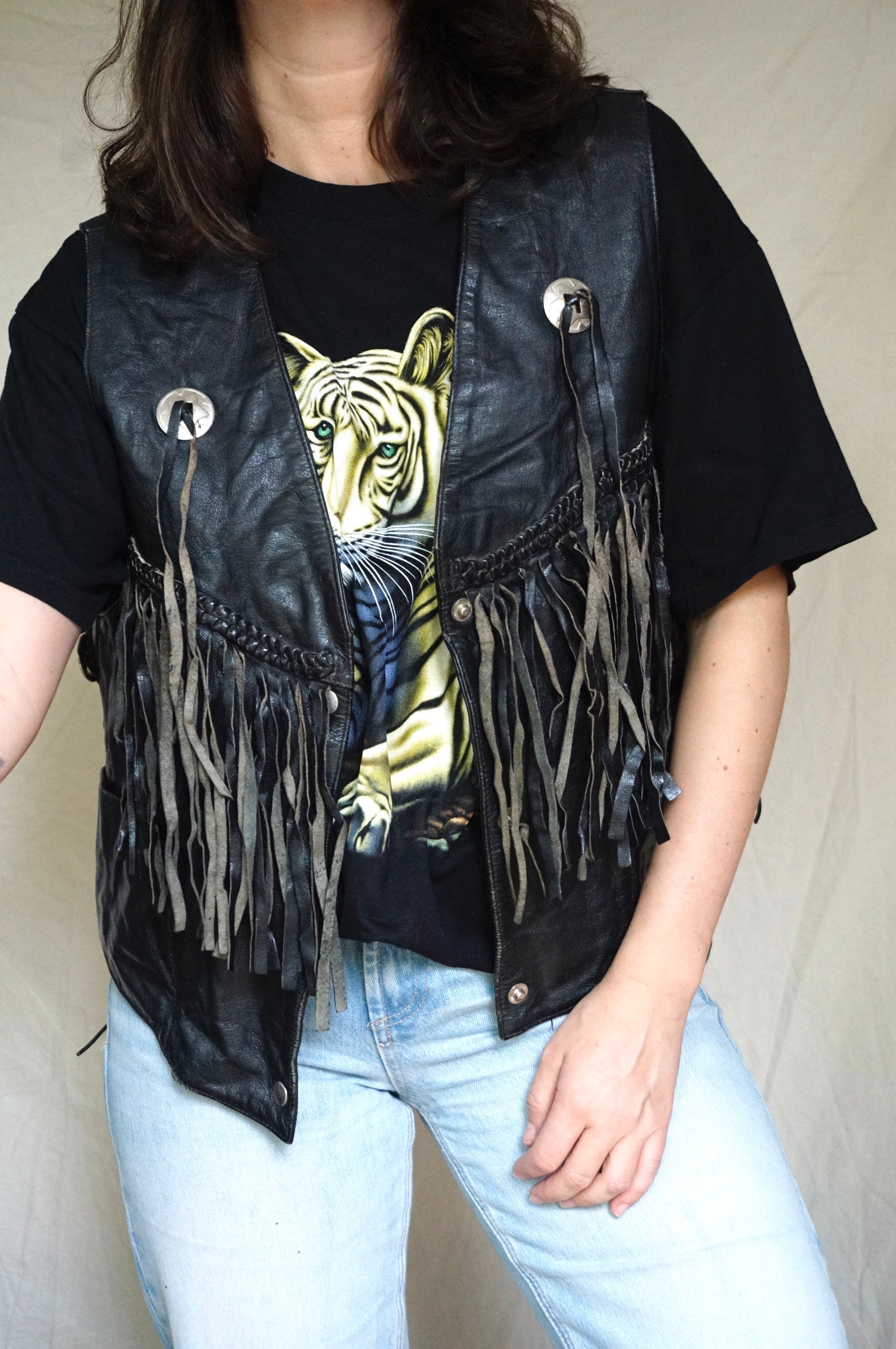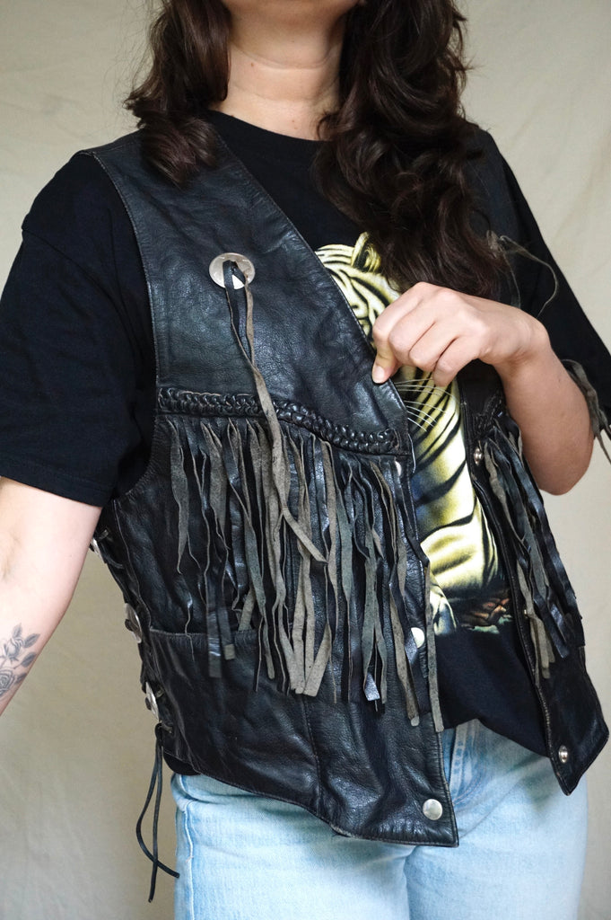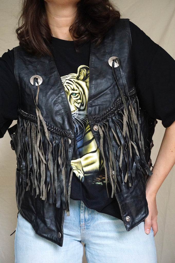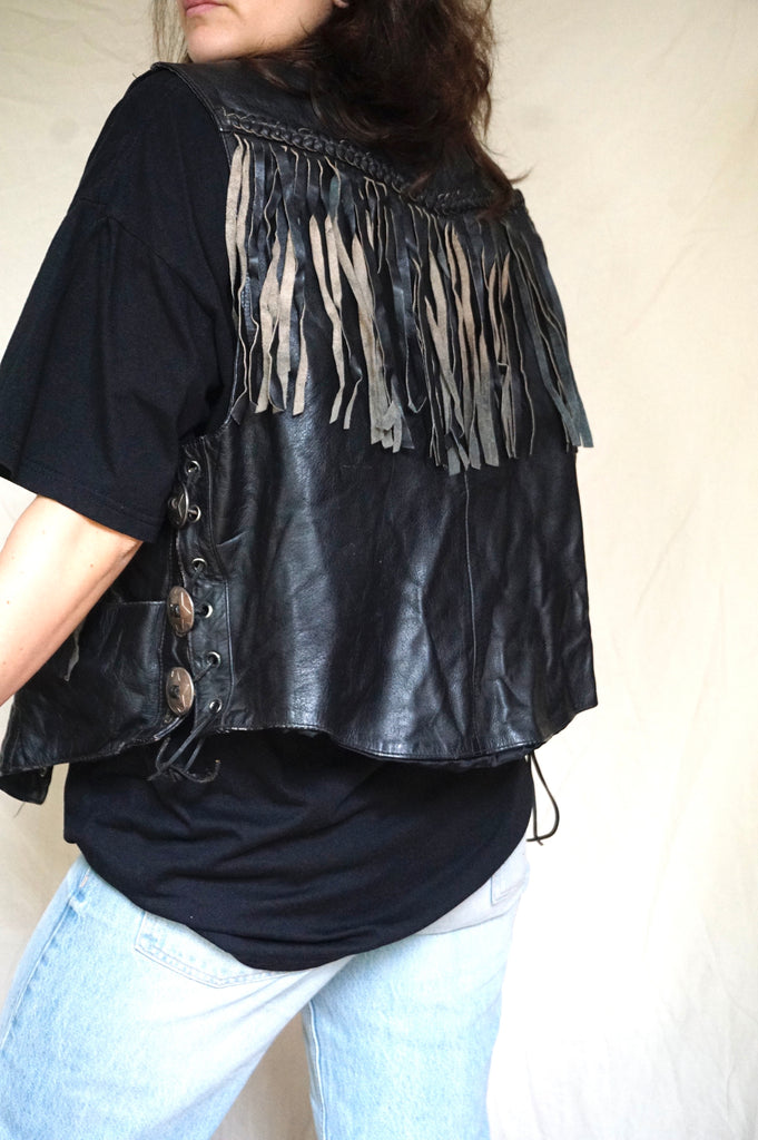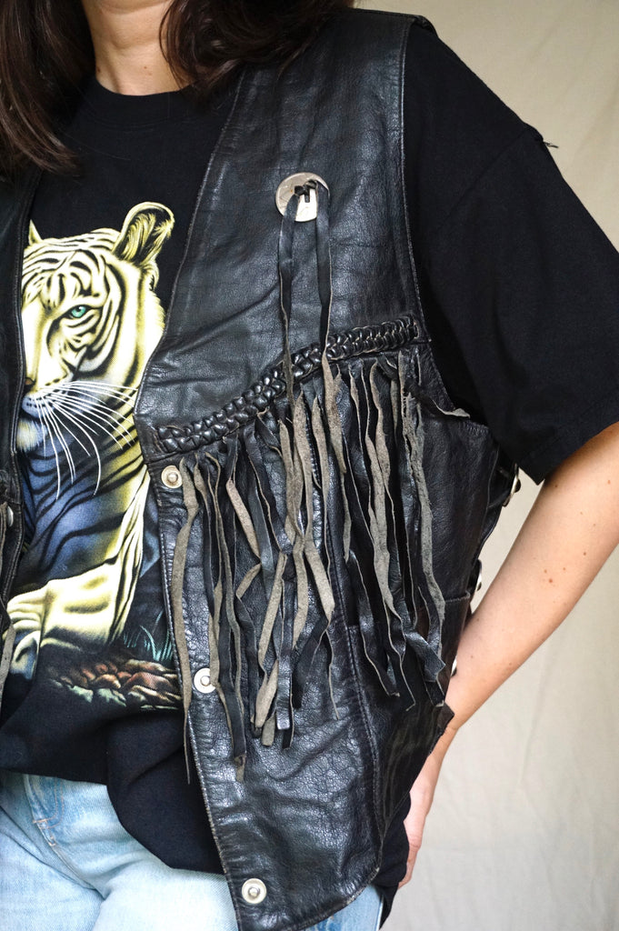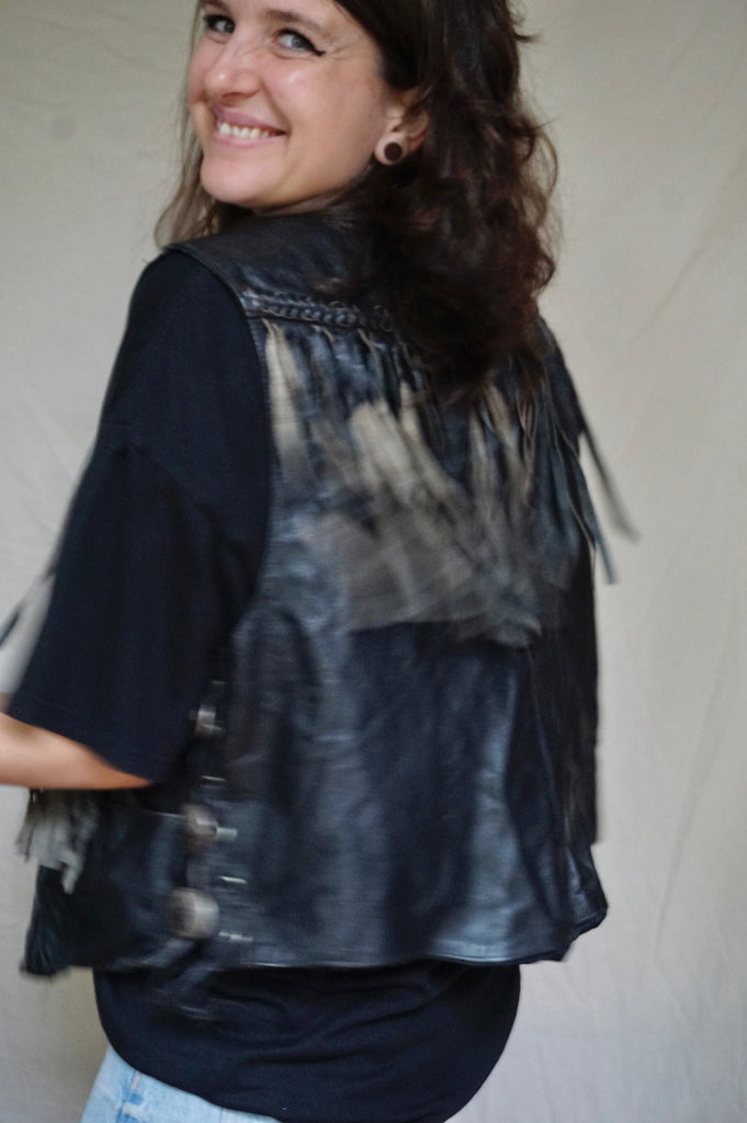 Tarmac Cowboy - Vintage Leather Biket Fringe Gilet/Waistcoat - Unisex - M/L