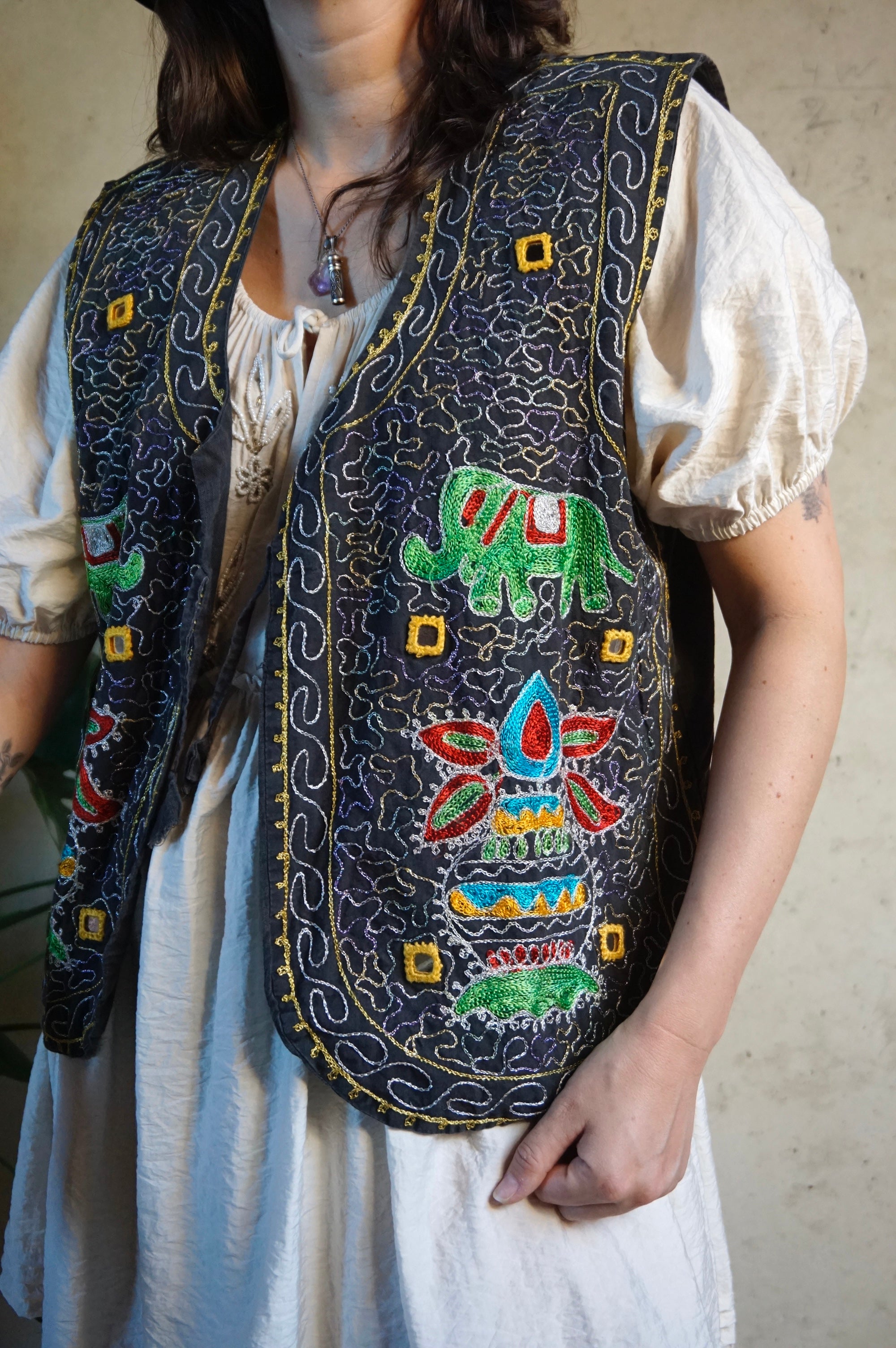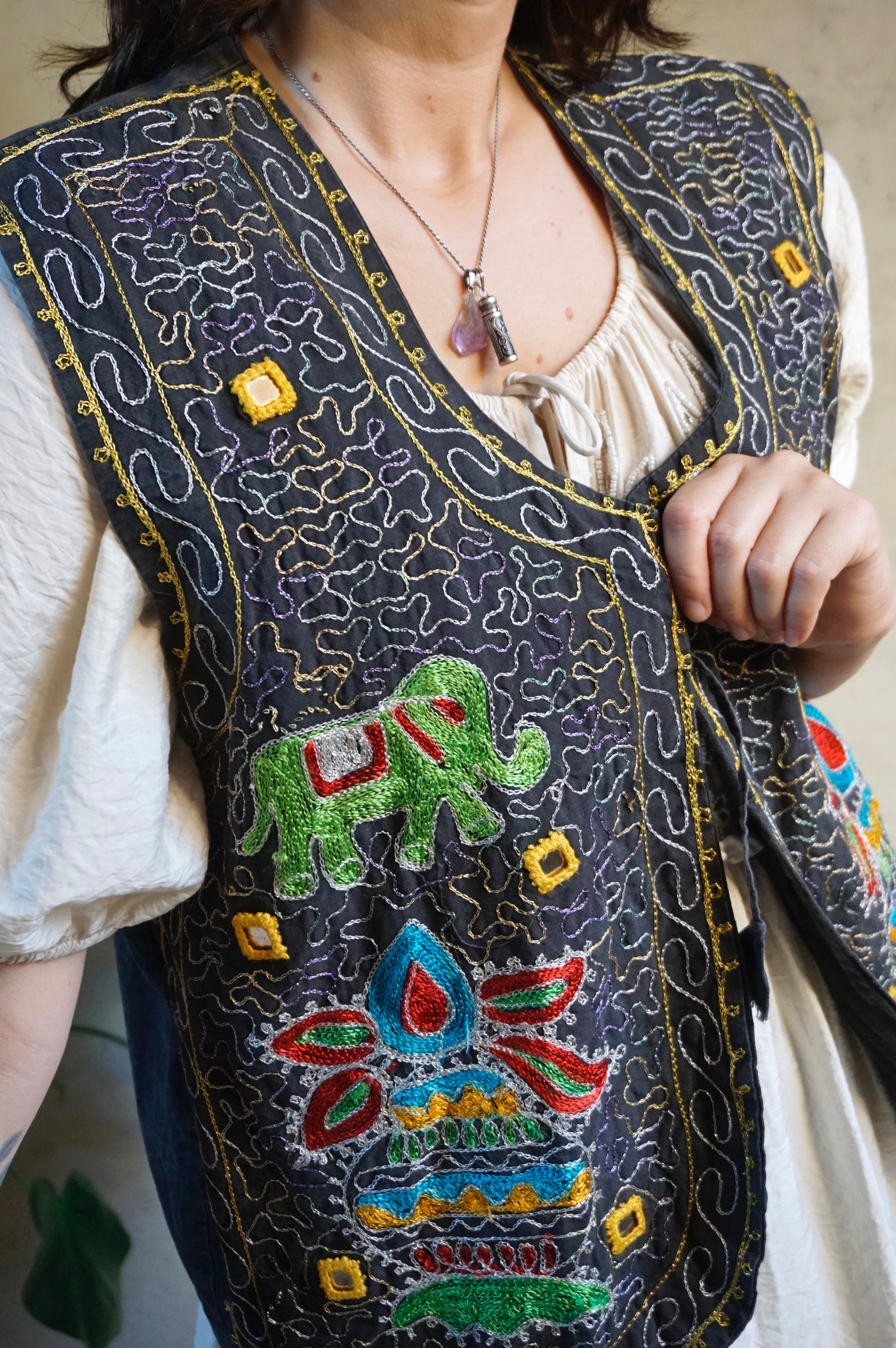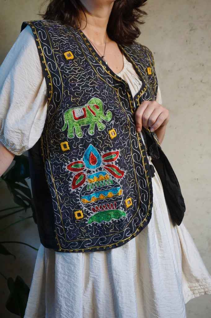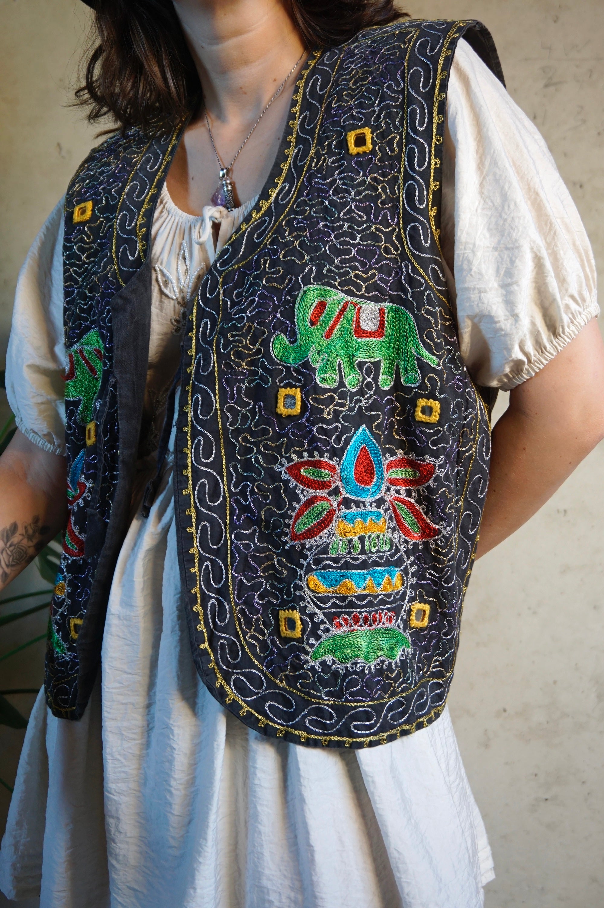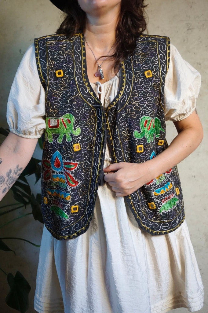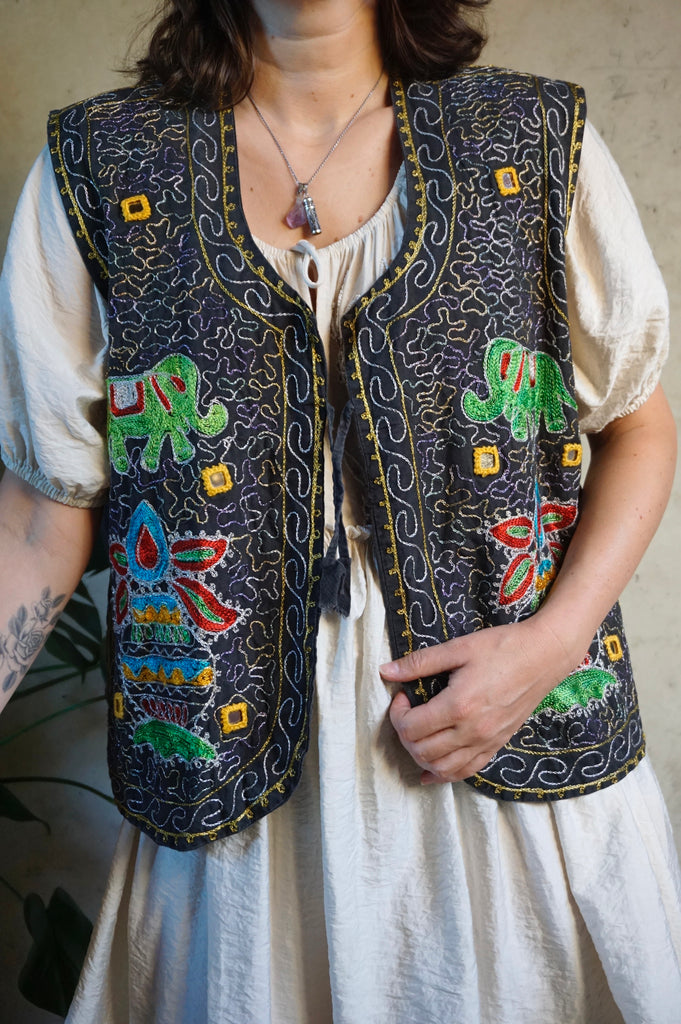 The Elephants March - Vintage Embroidered Gilet/Waistcoat - M/L
