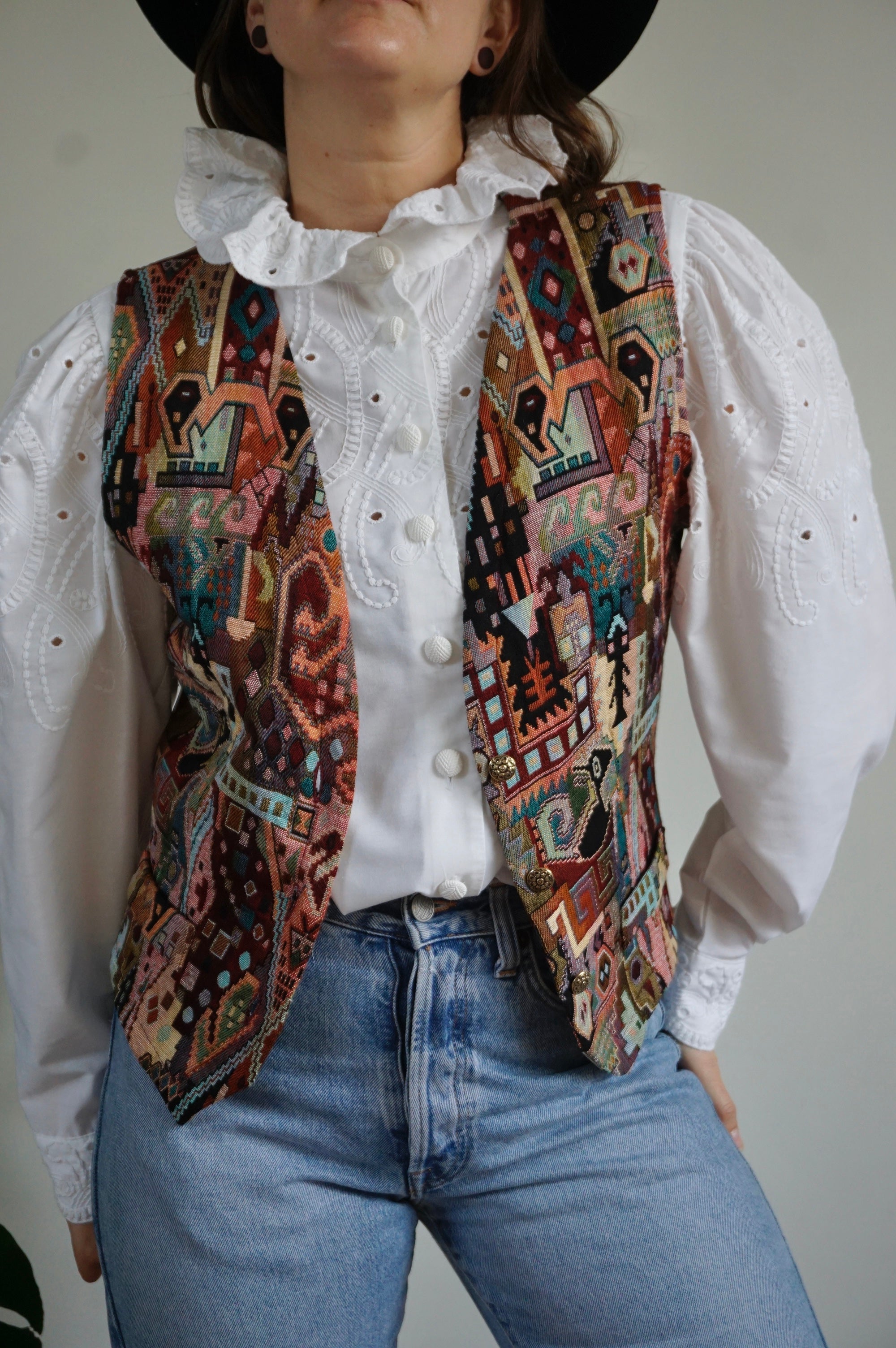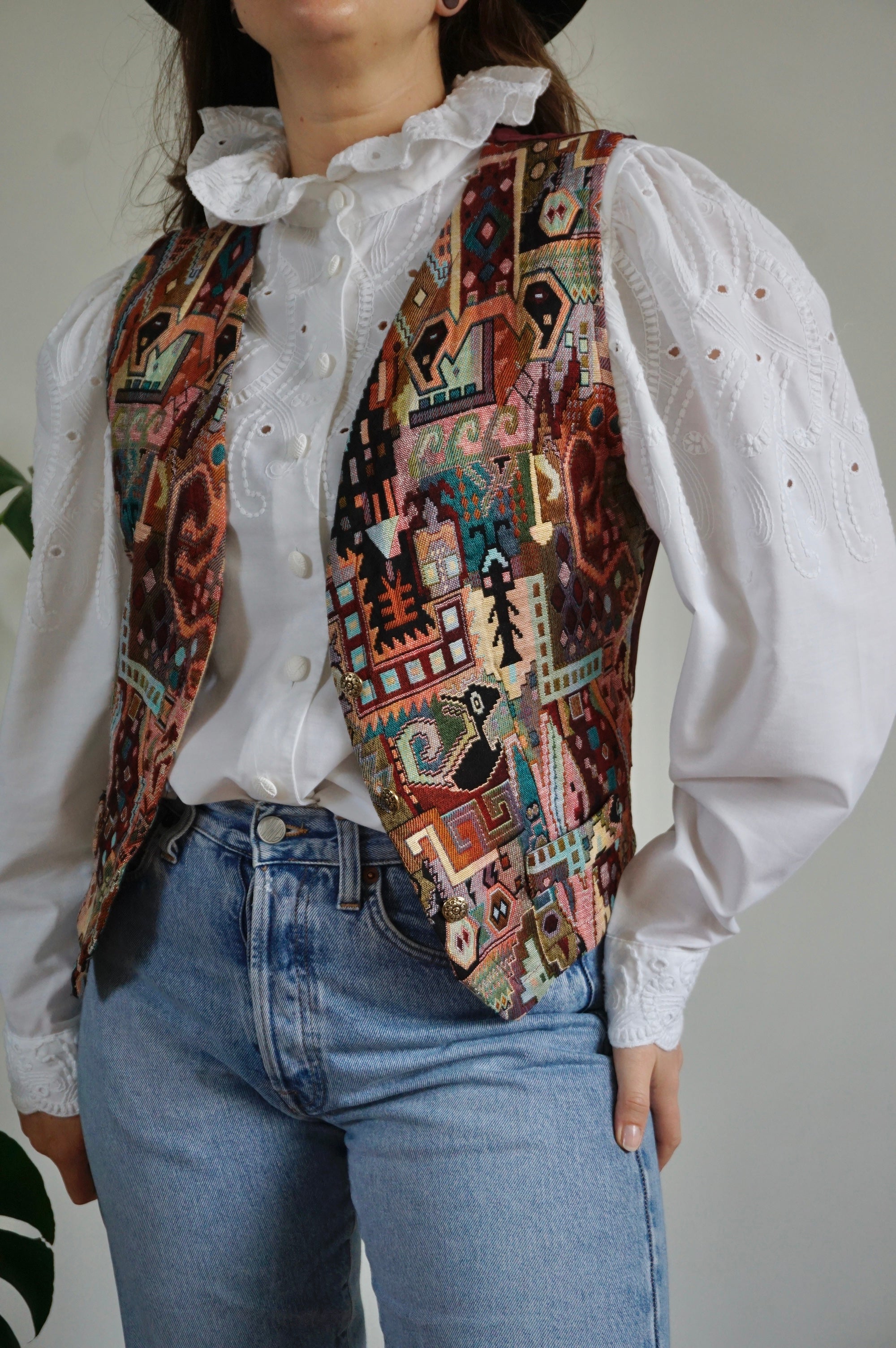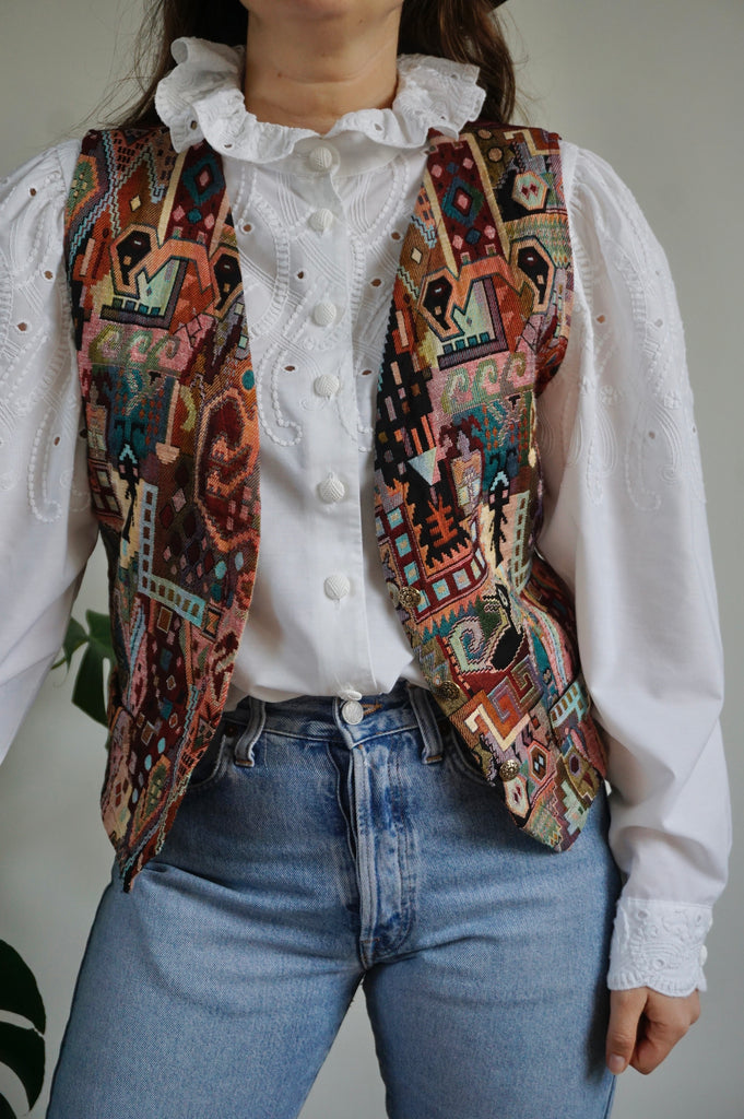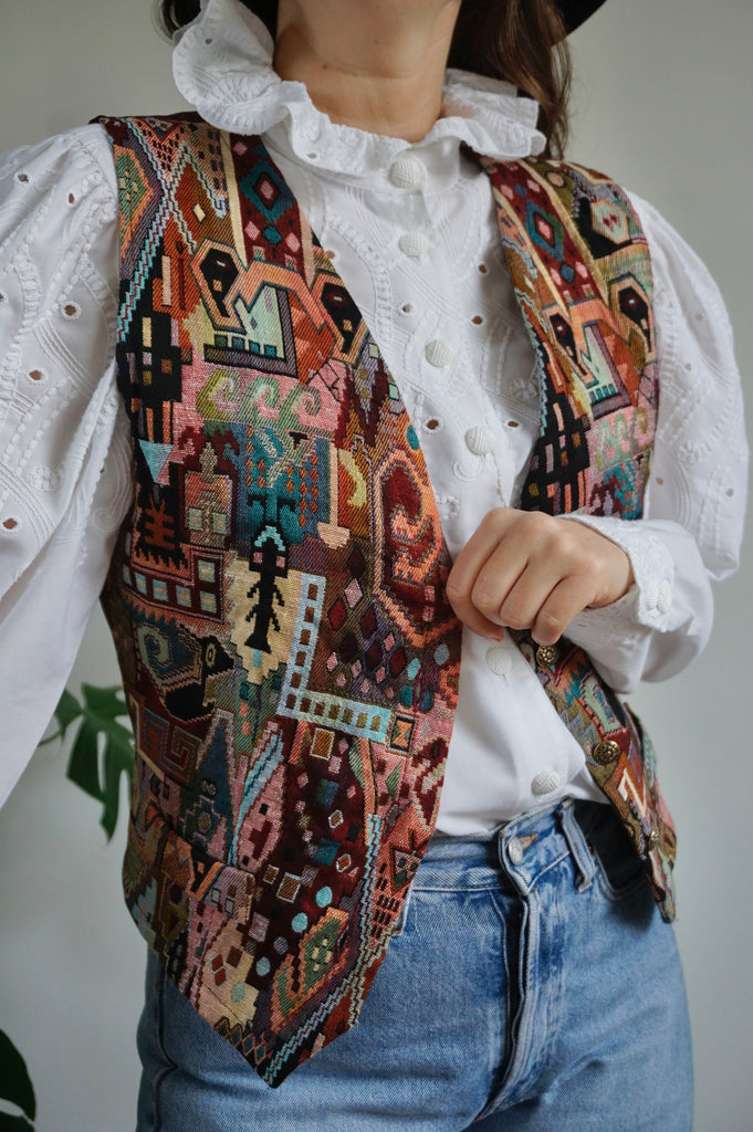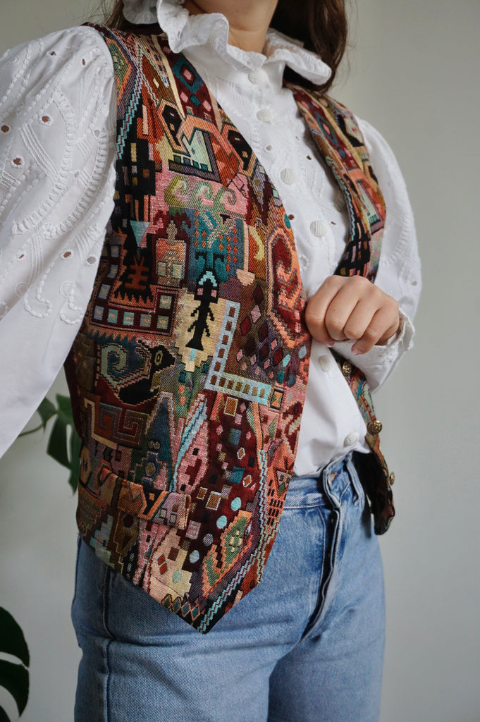 The Monument - Vintage Woven Gilet/Waistcoat - M