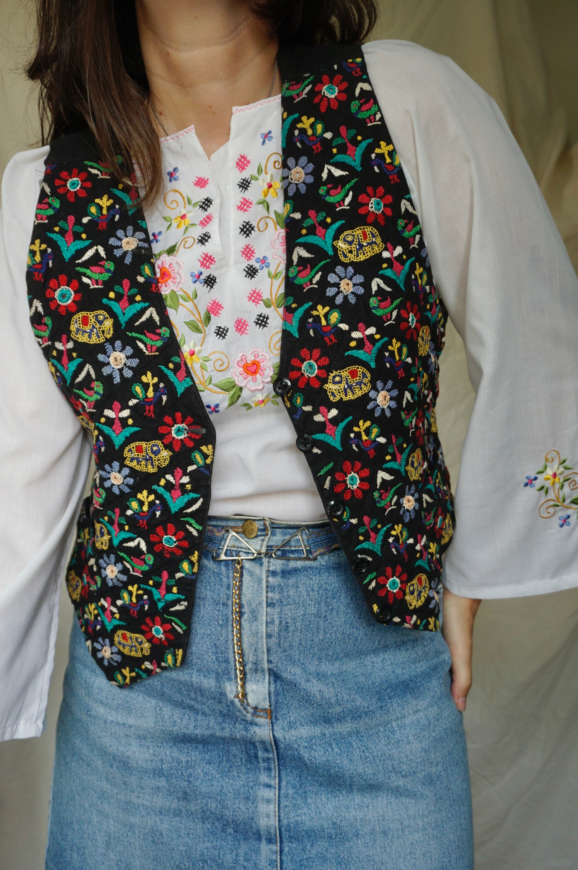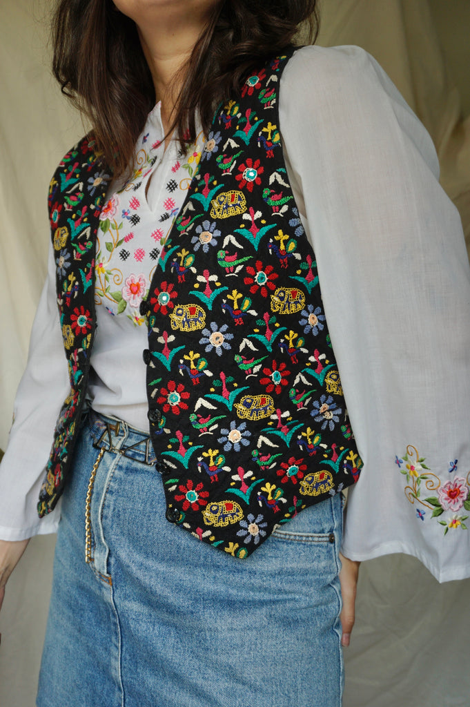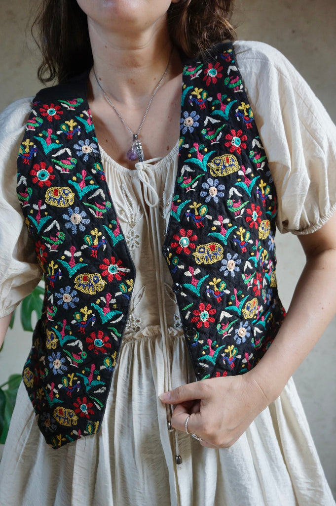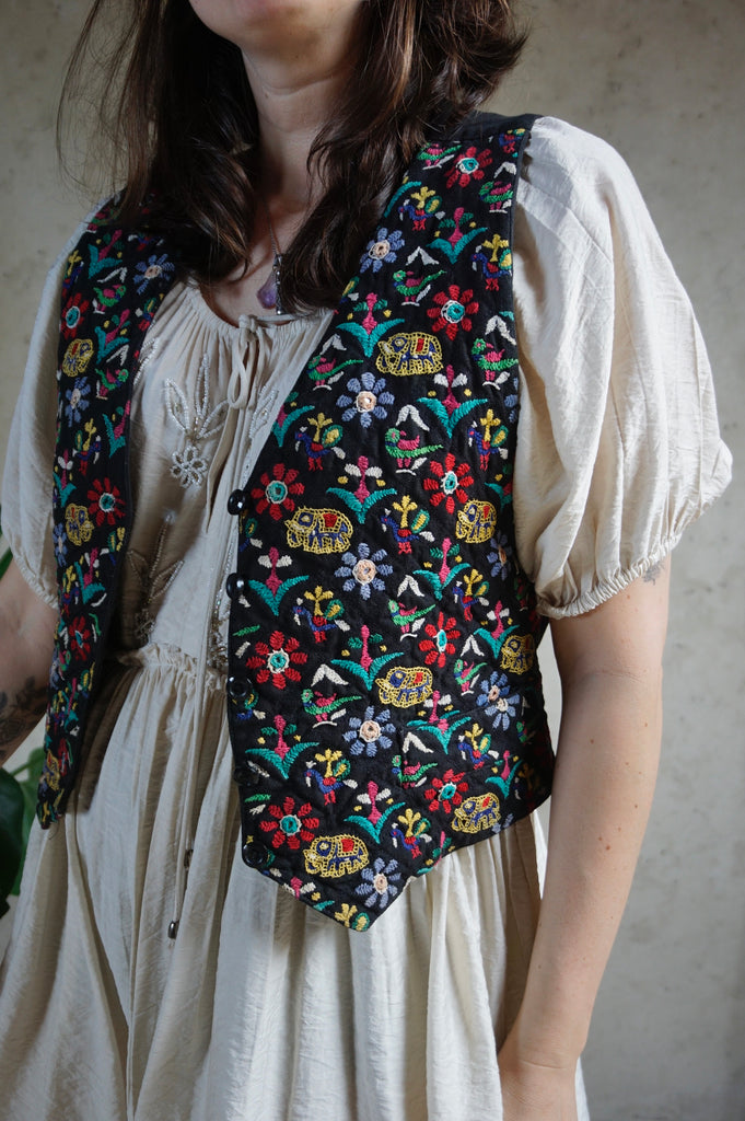Tiny Village - Vintage Embroidered Gilet/Waistcoat - M