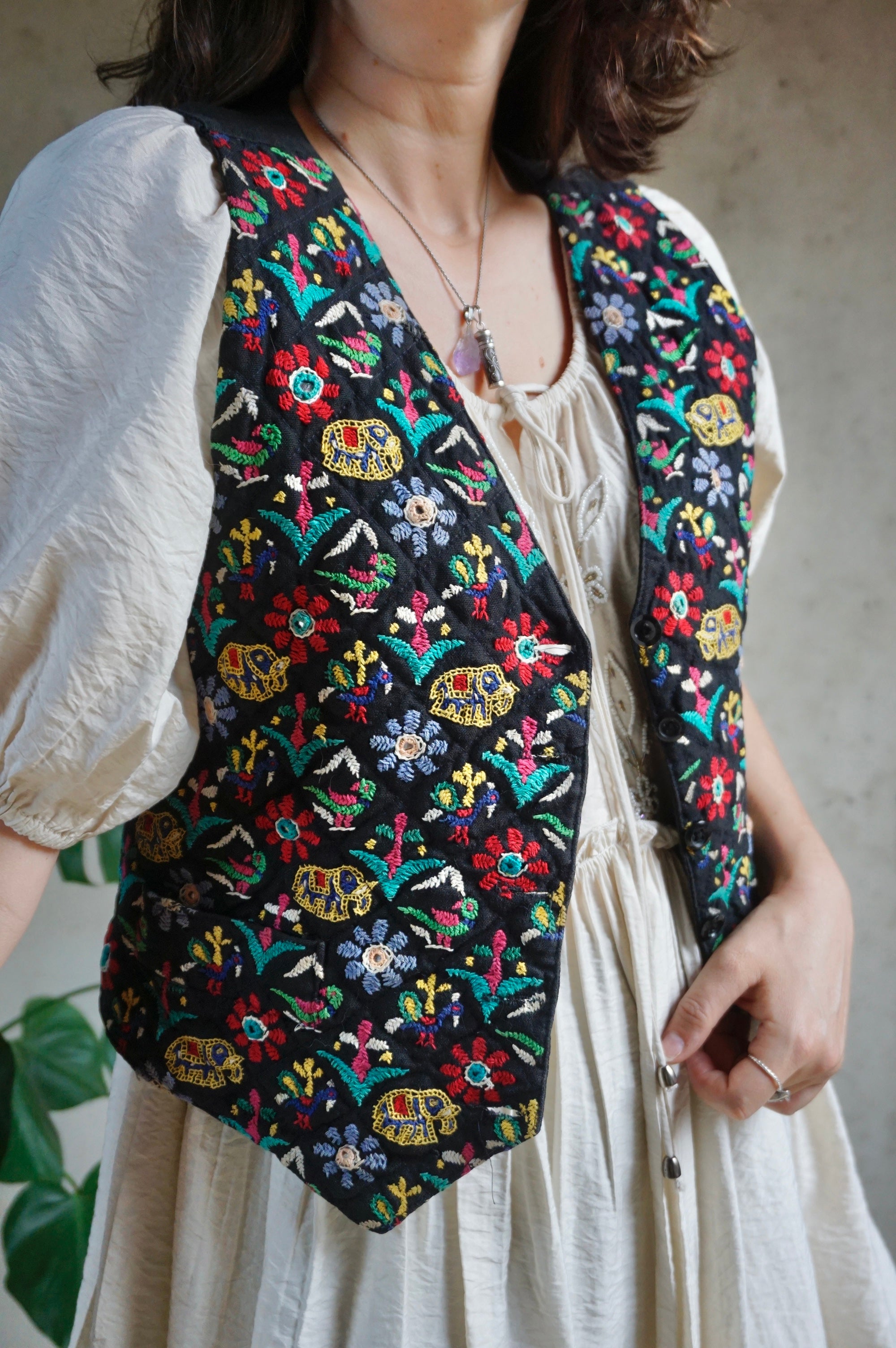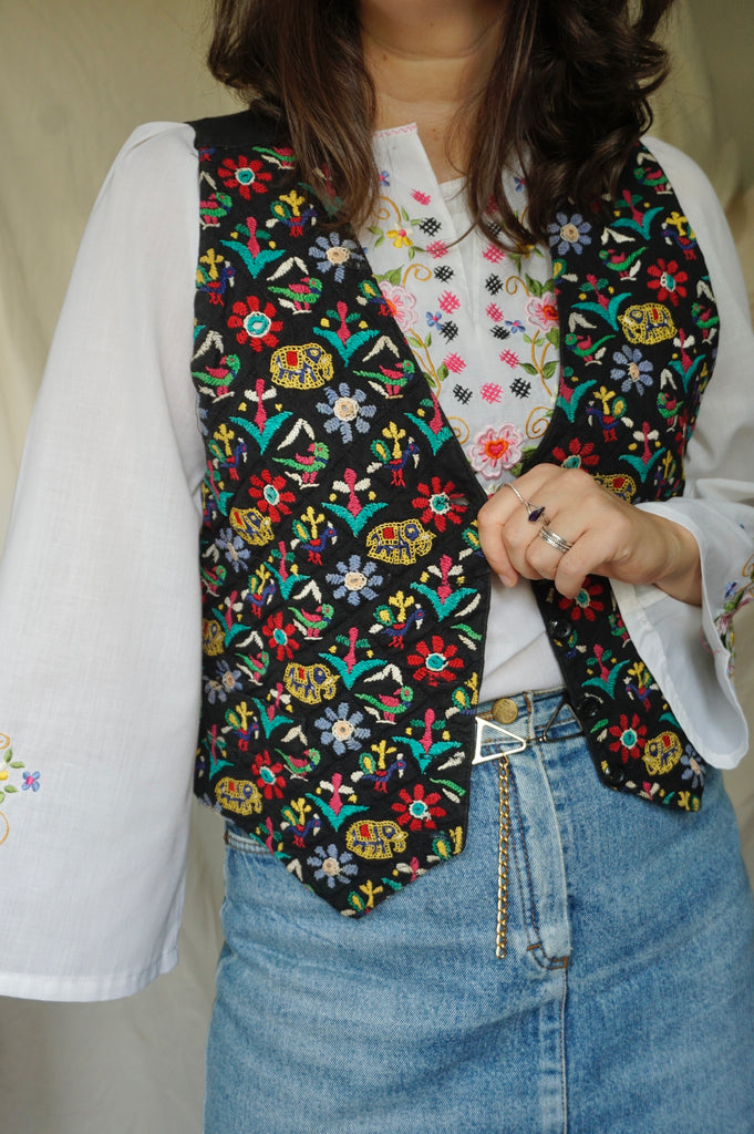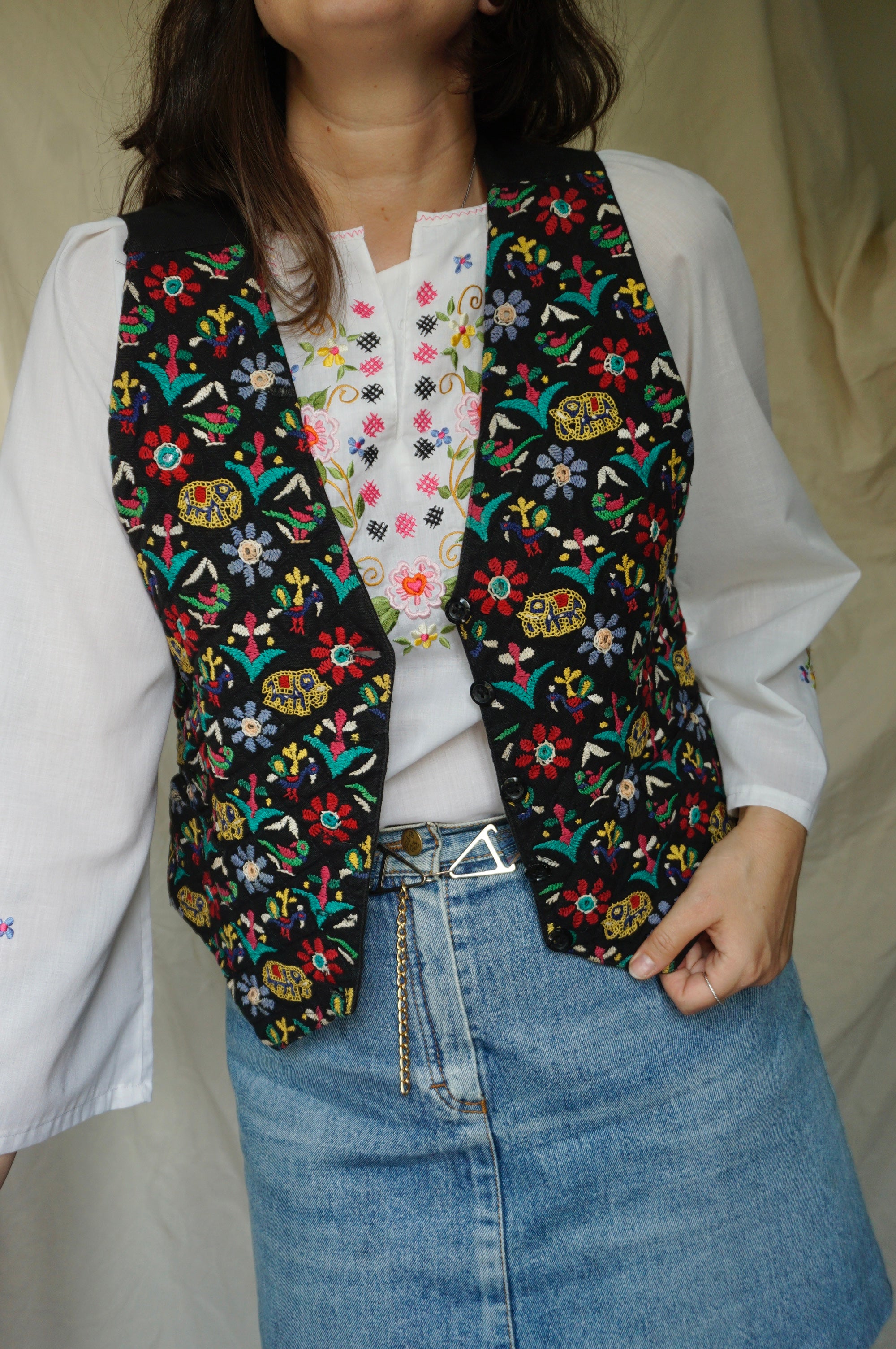 Tiny Village - Vintage Embroidered Gilet/Waistcoat - M