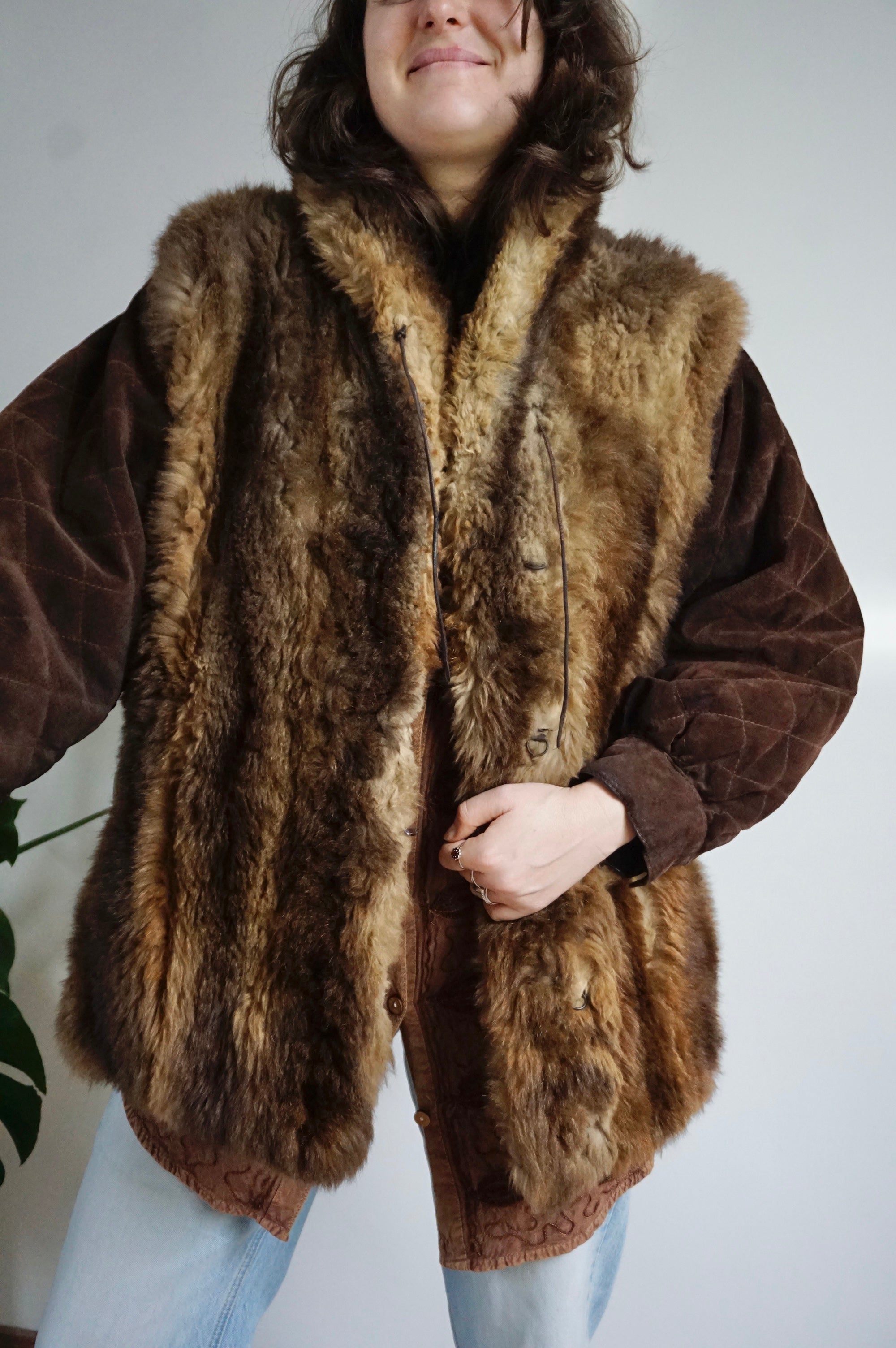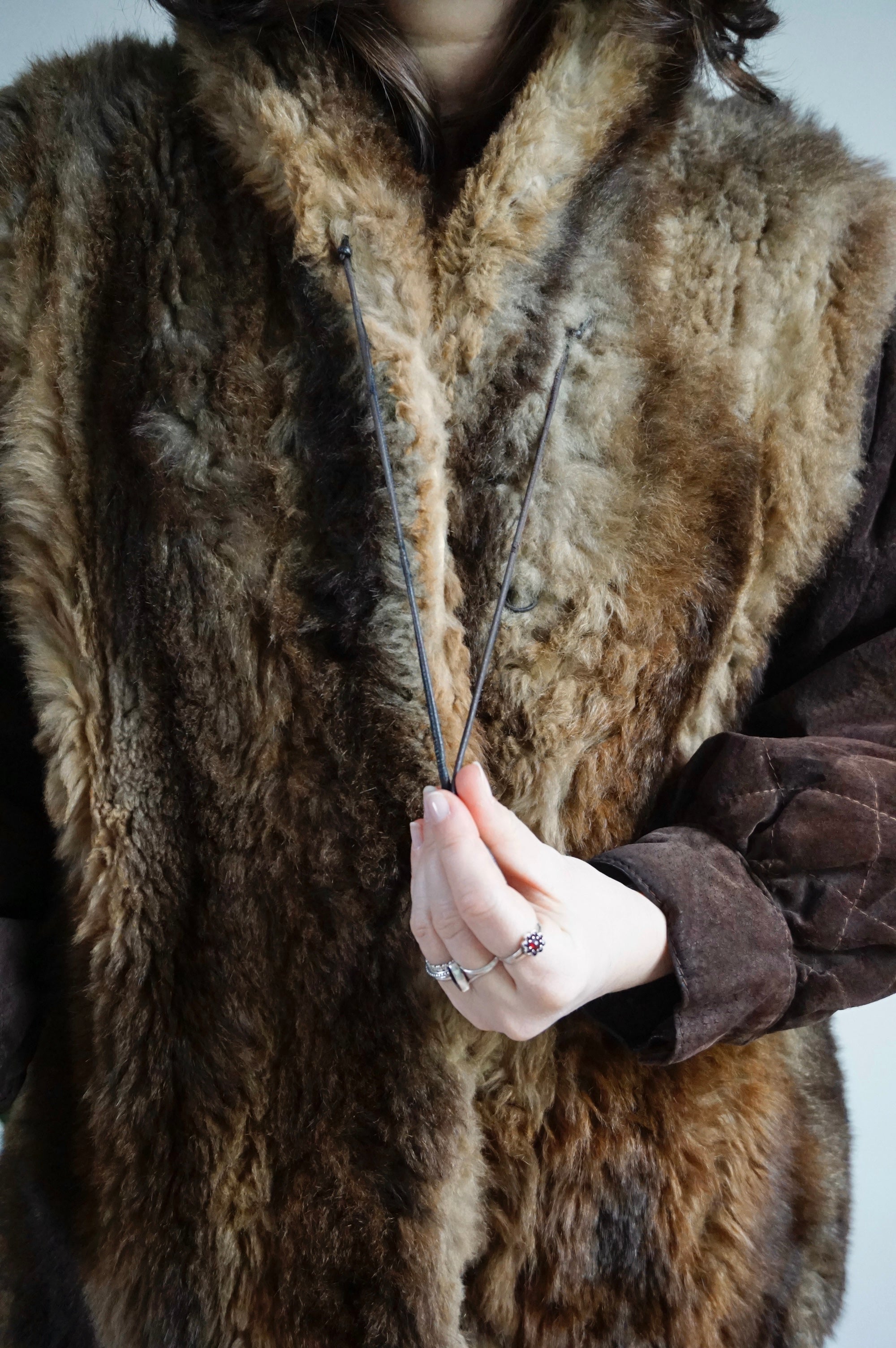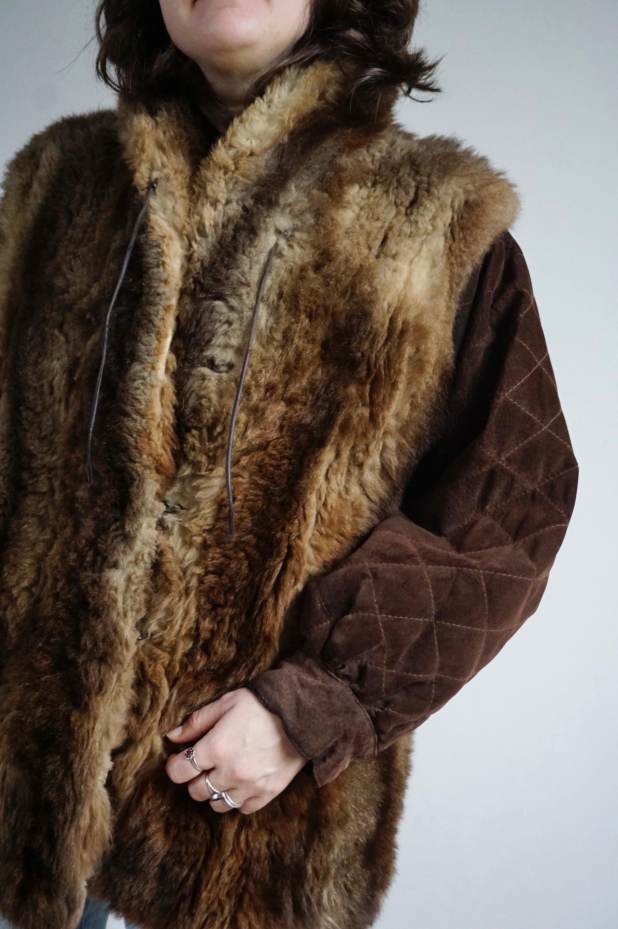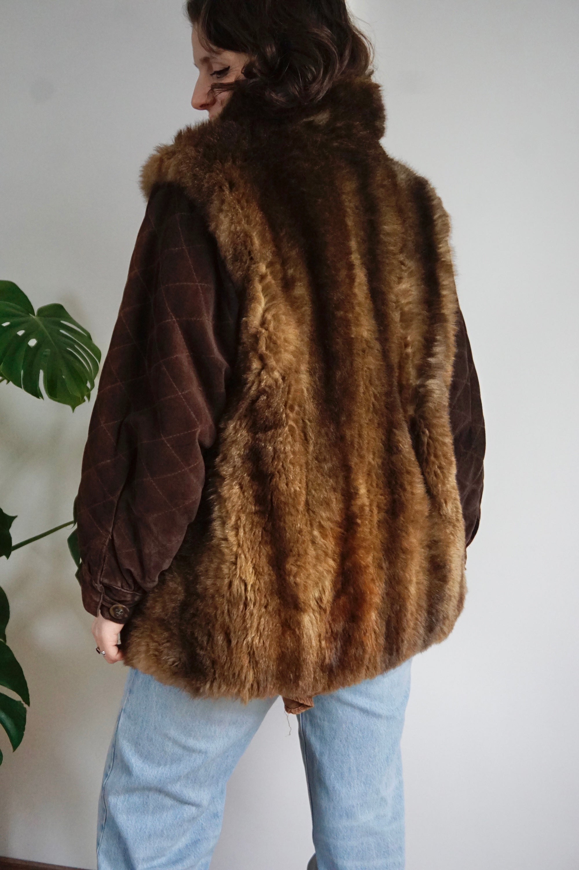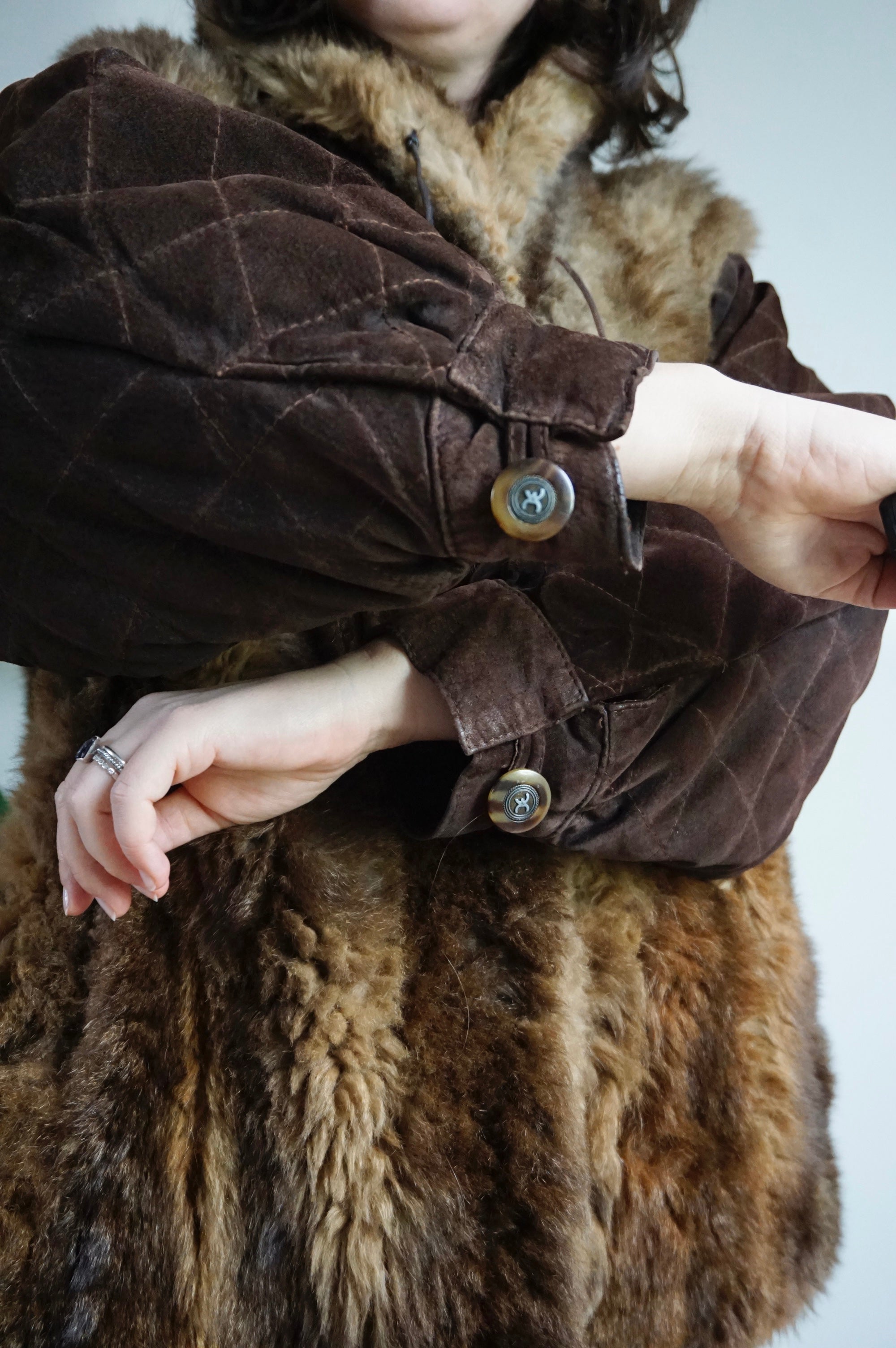 Bear Hugs - Vintage Leather & Faux Fur Coat - L