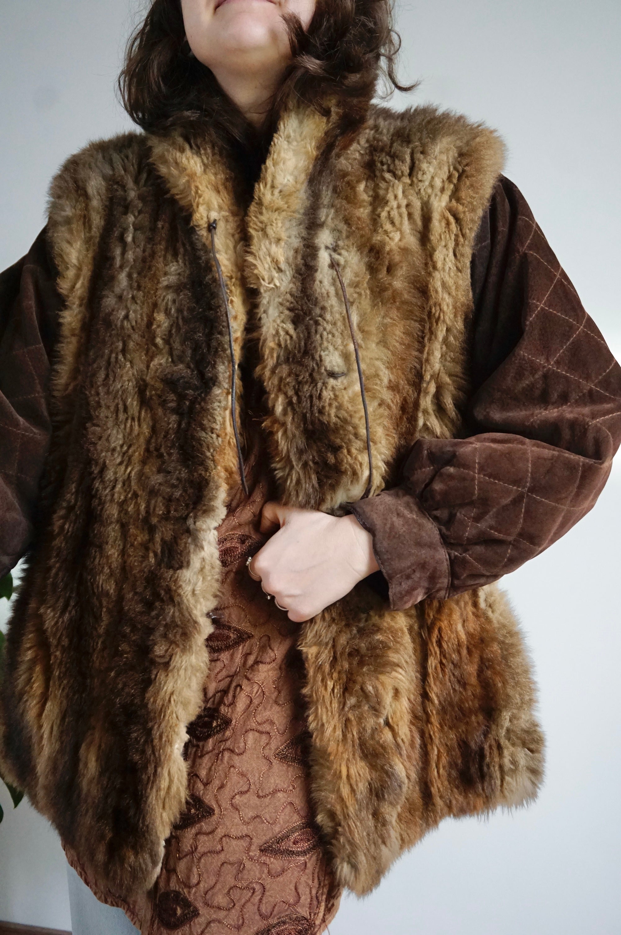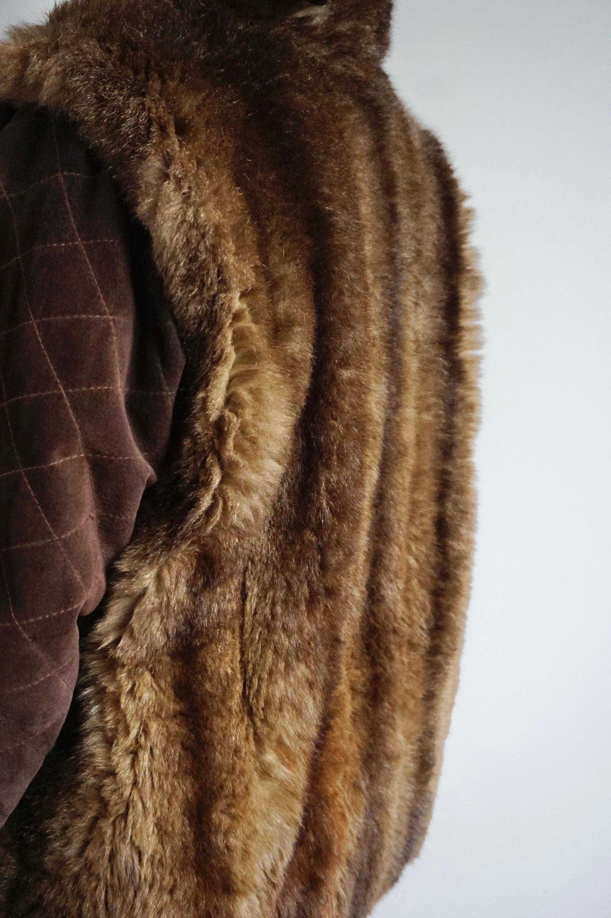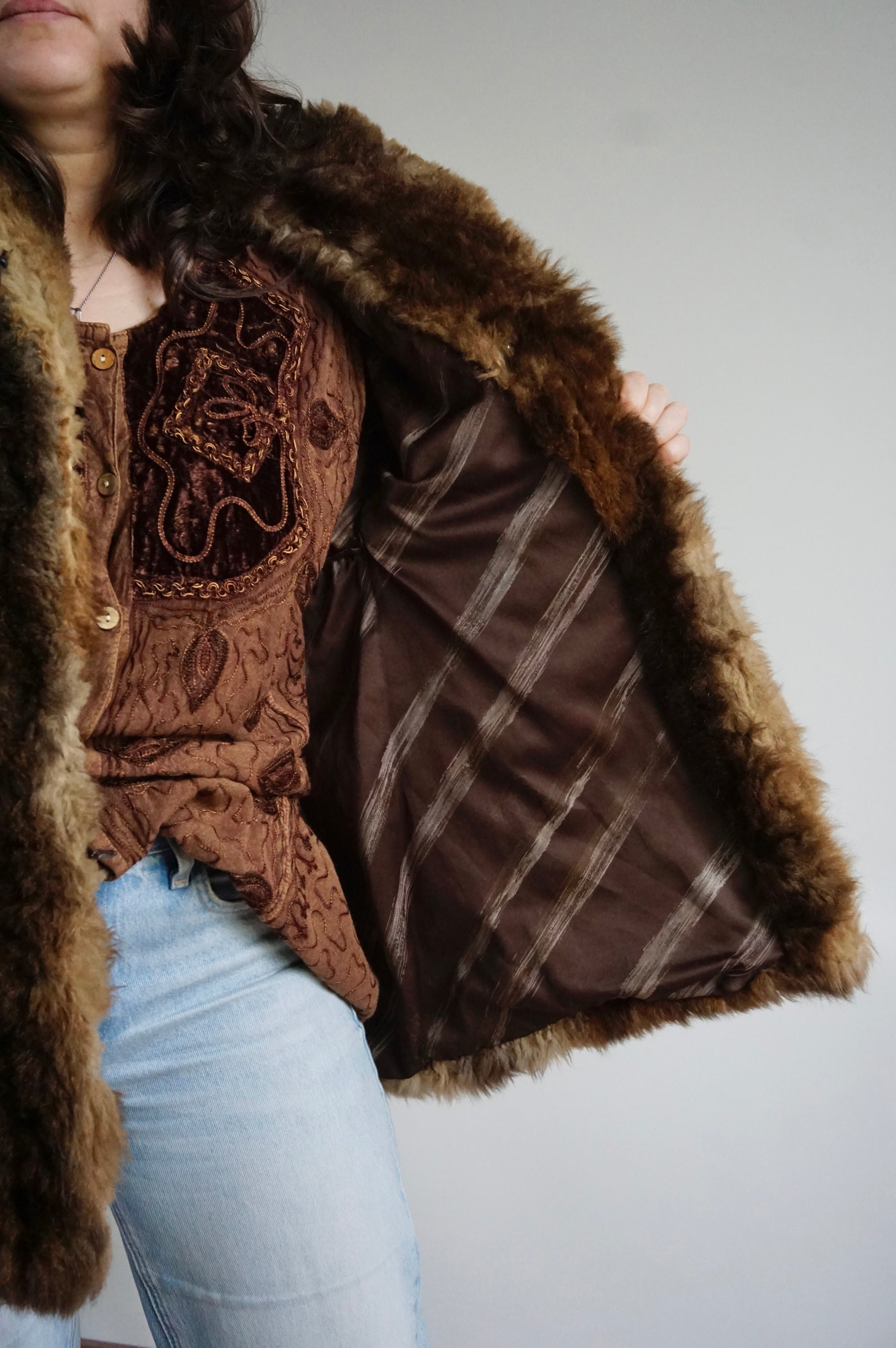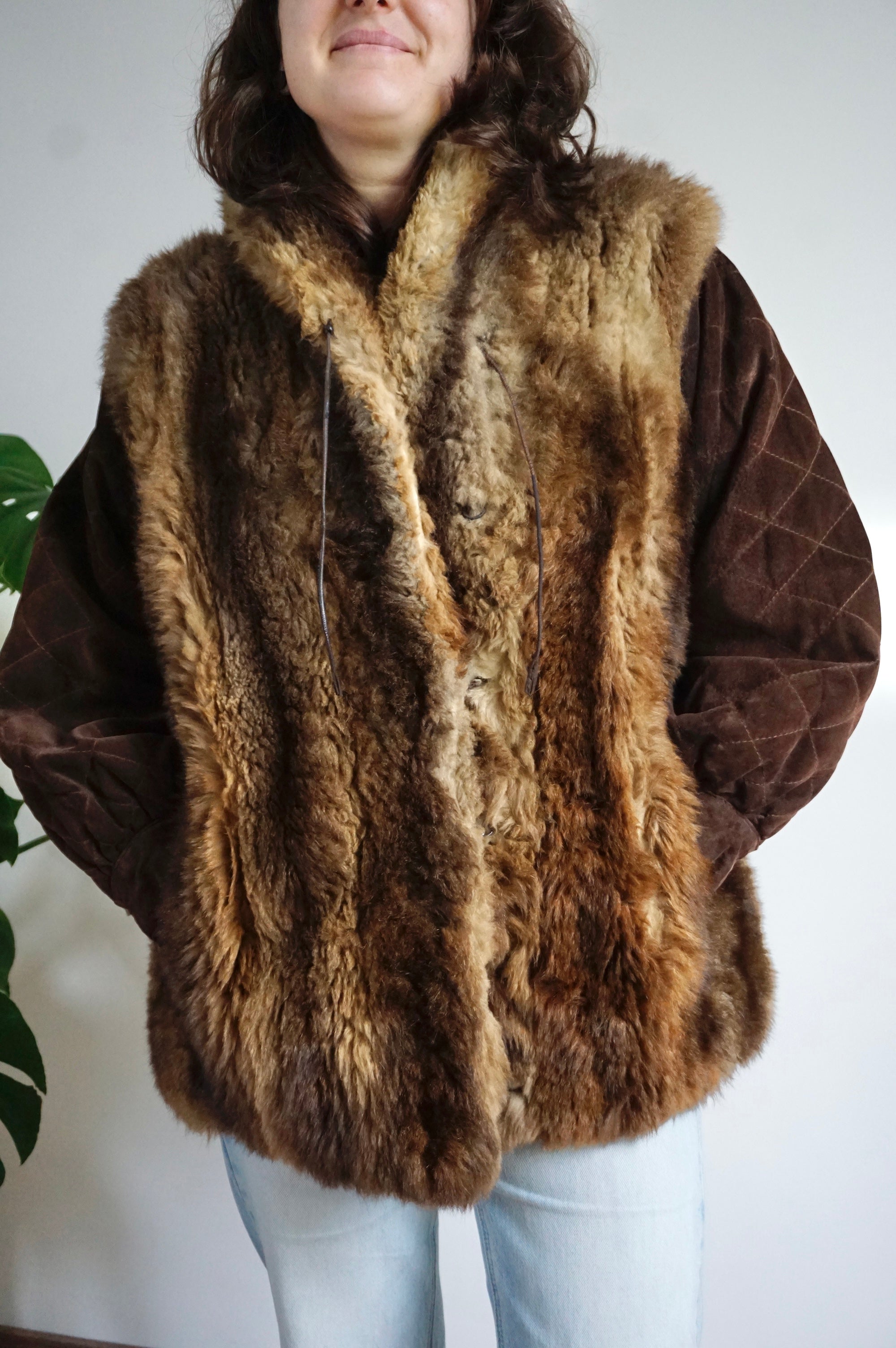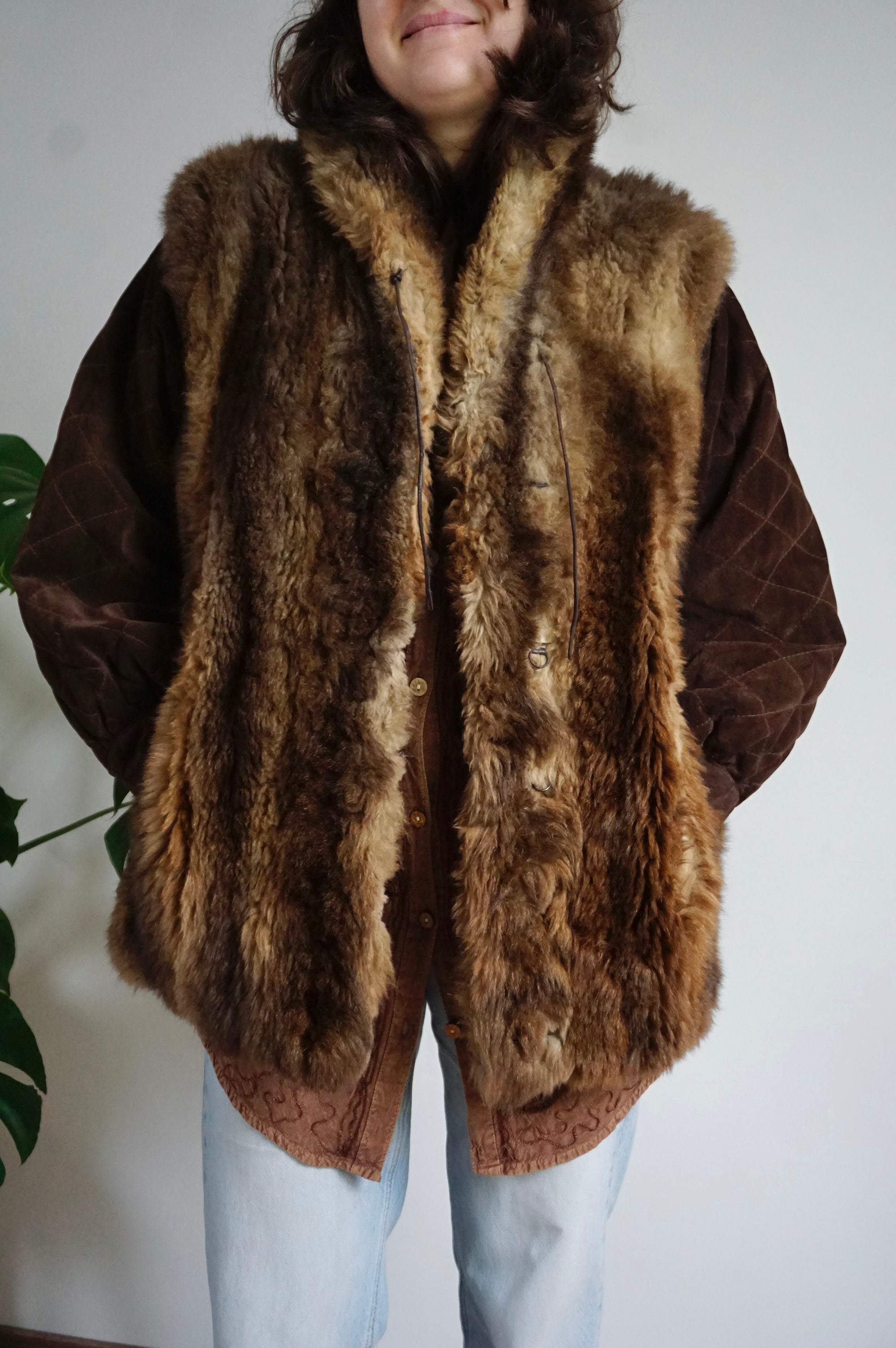 Bear Hugs - Vintage Leather & Faux Fur Coat - L