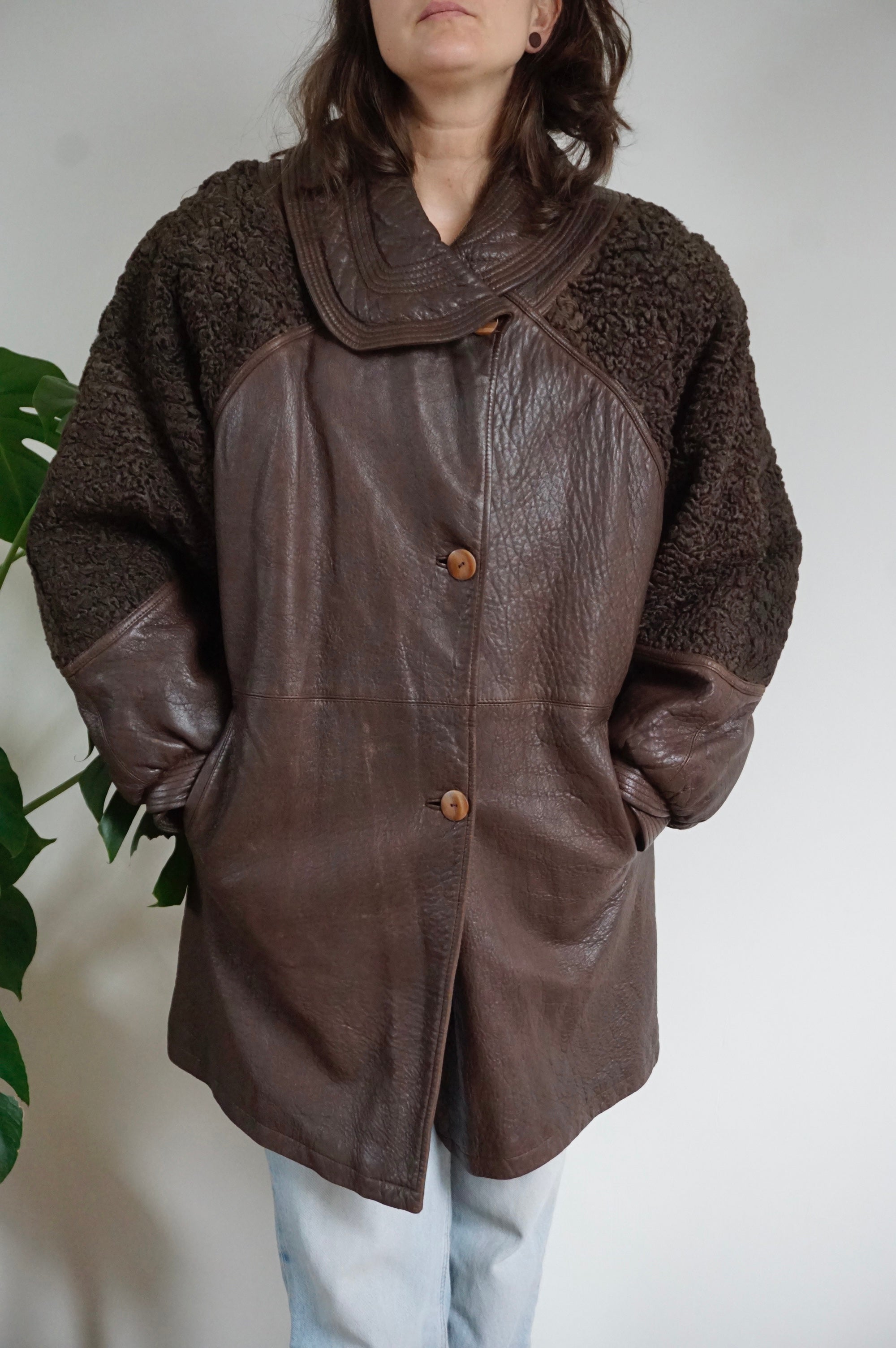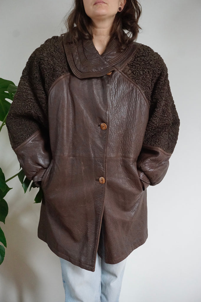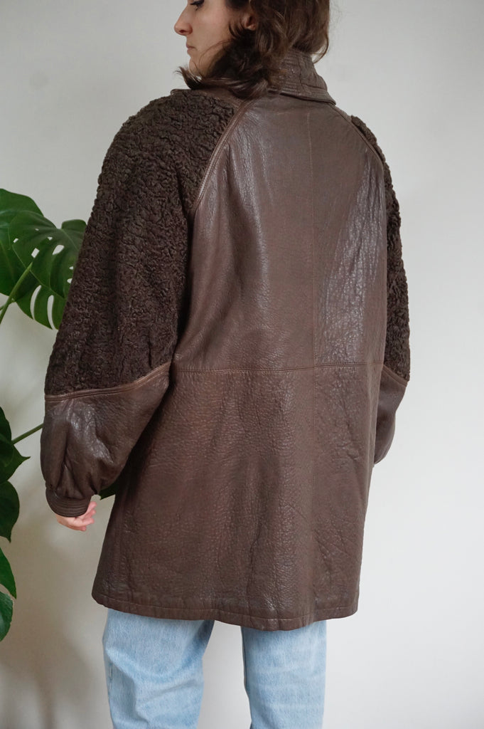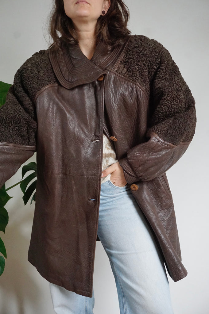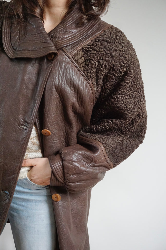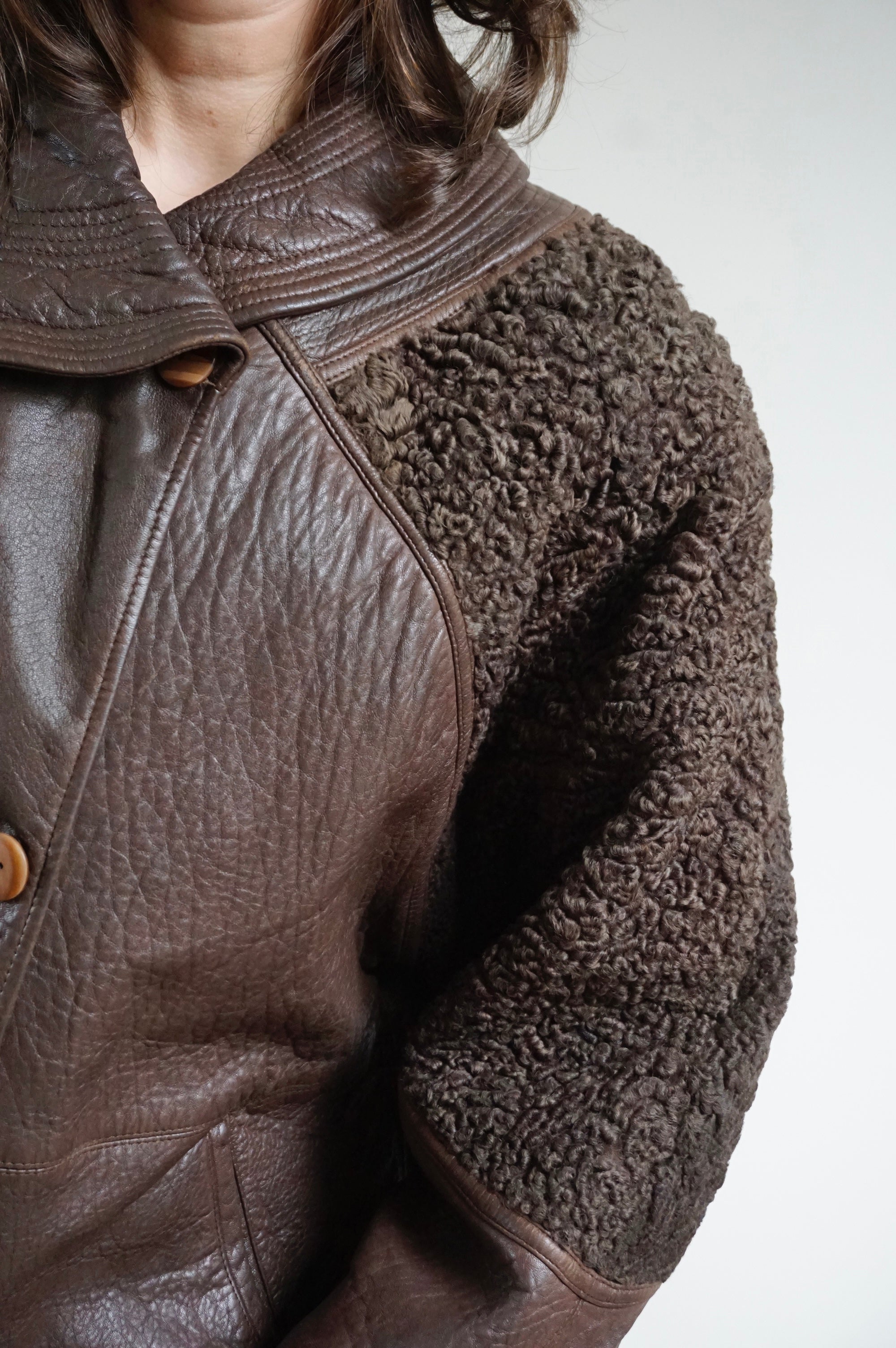 Brown Sugar - Vintage Leather and Sheepskin Coat - L