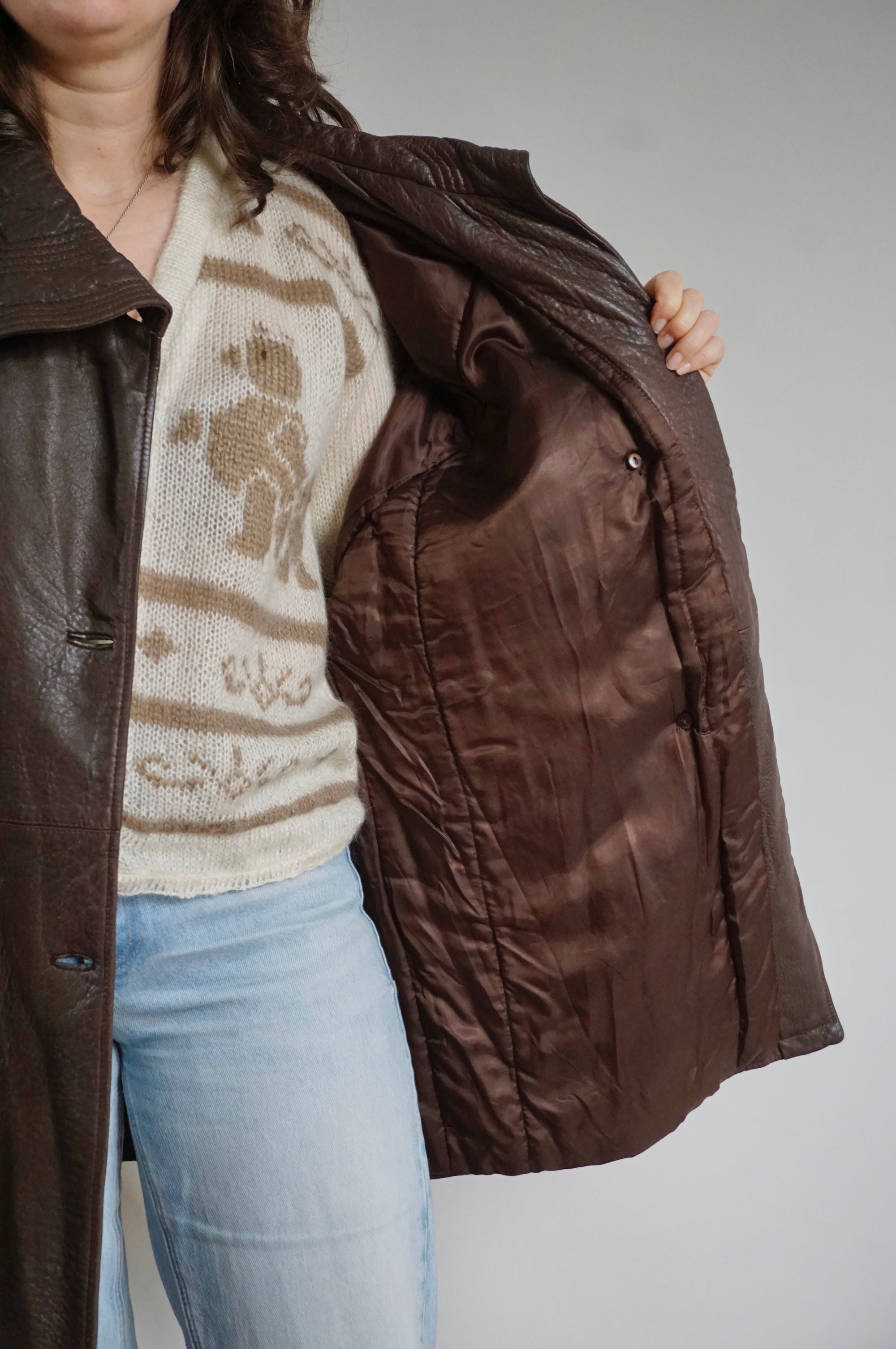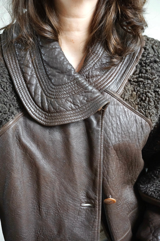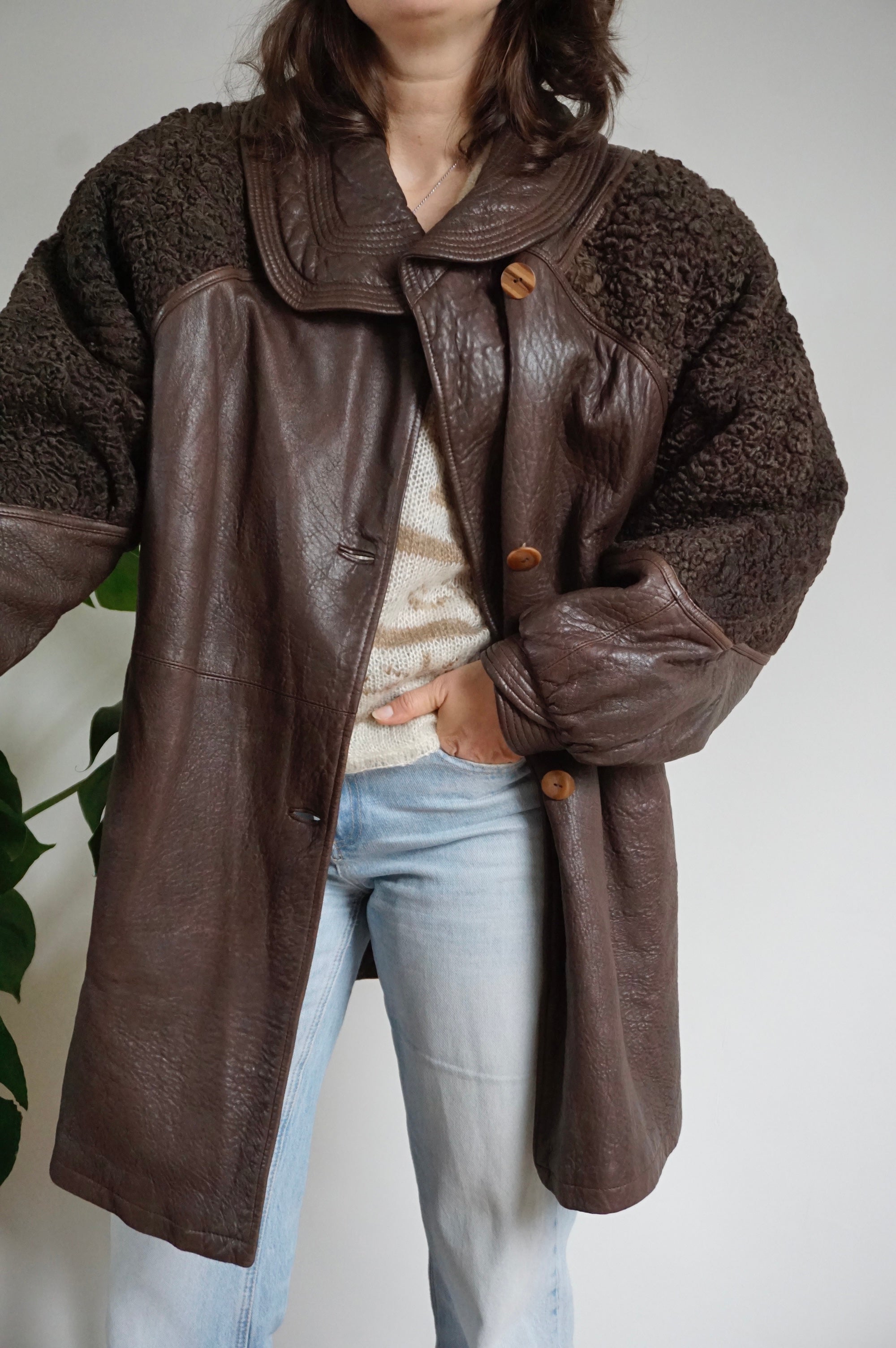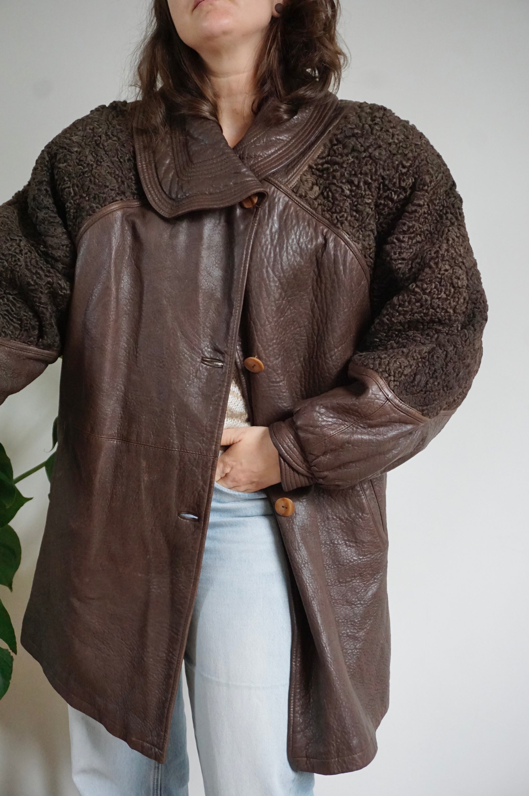 Brown Sugar - Vintage Leather and Sheepskin Coat - L