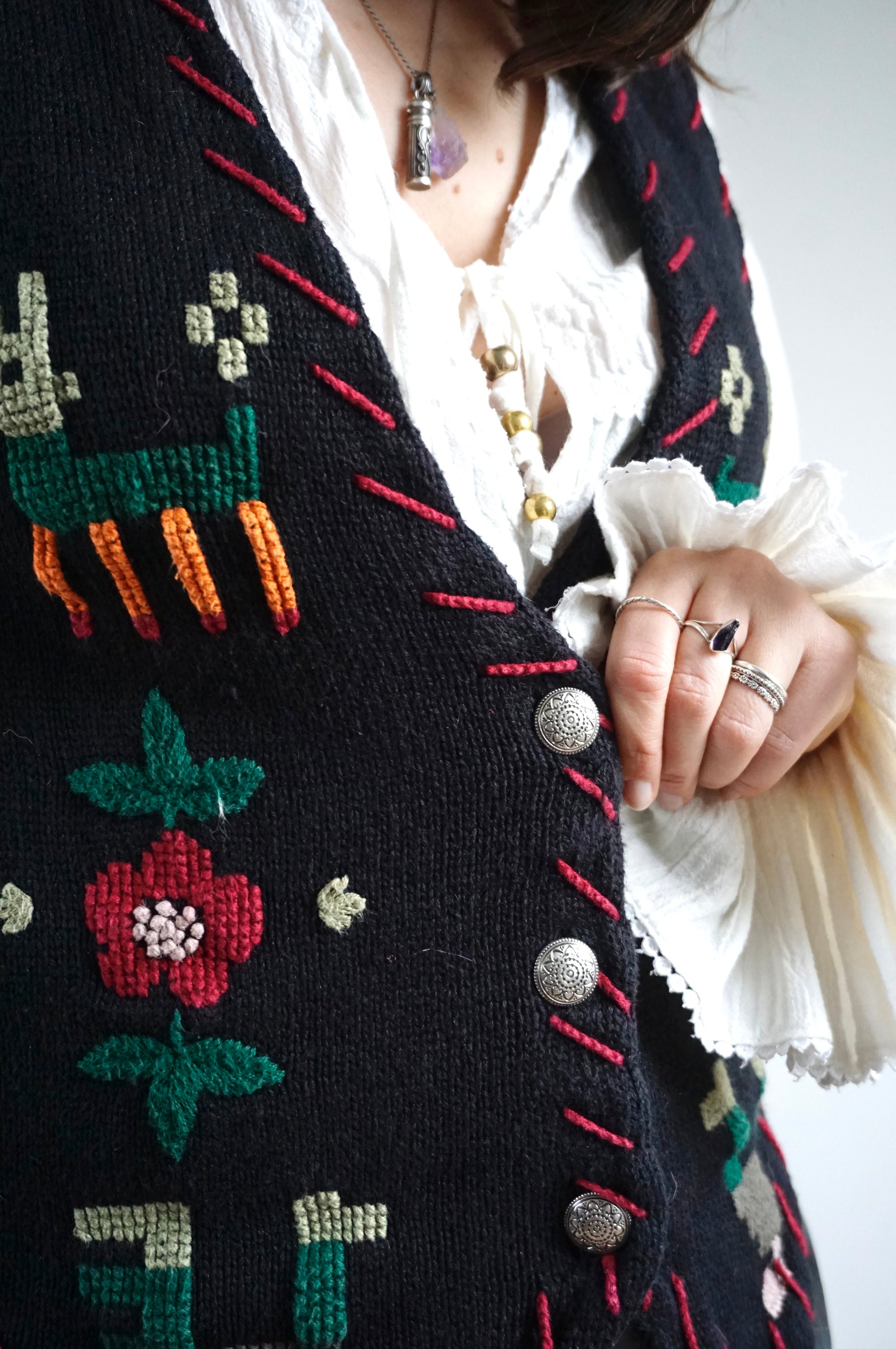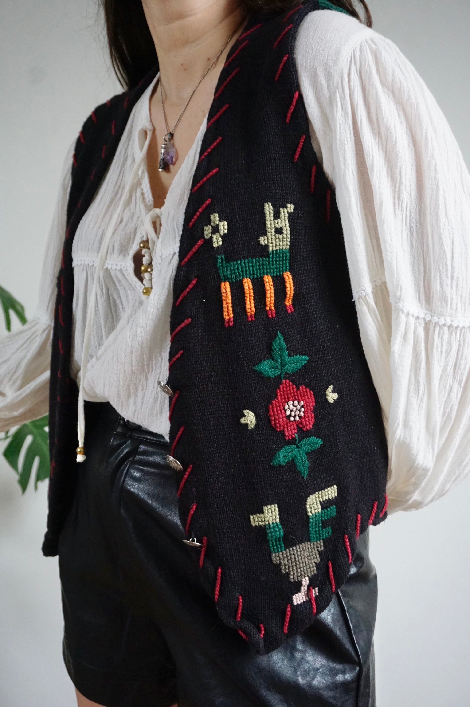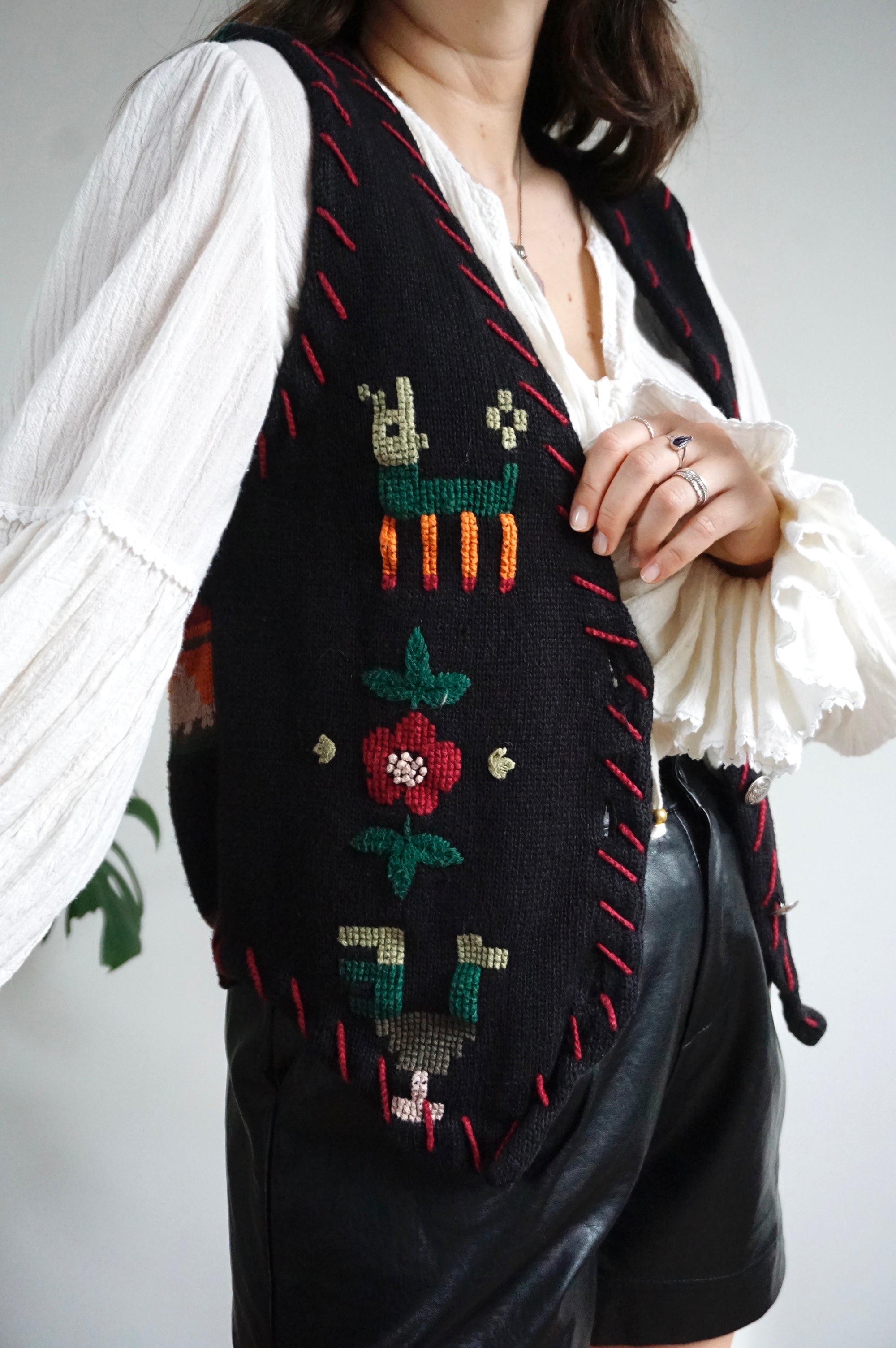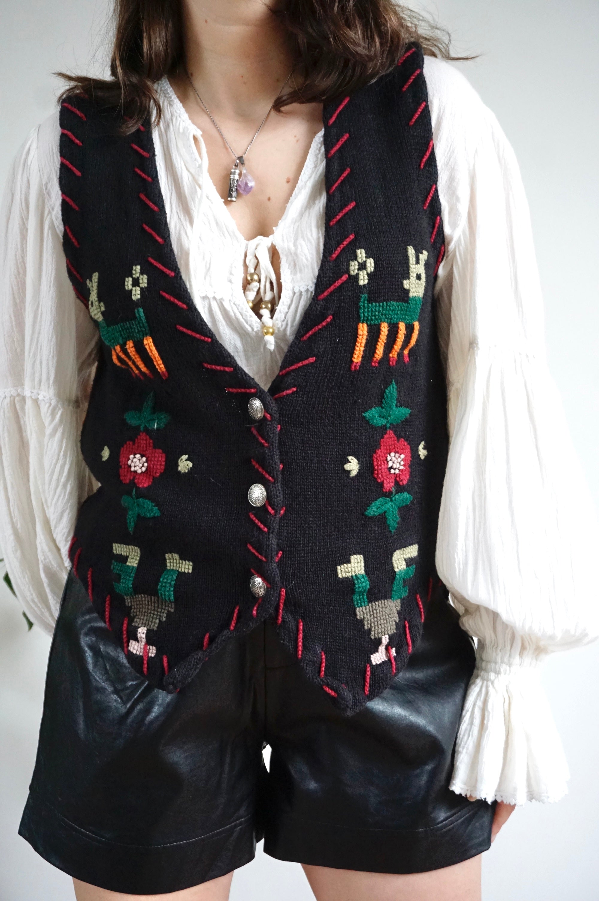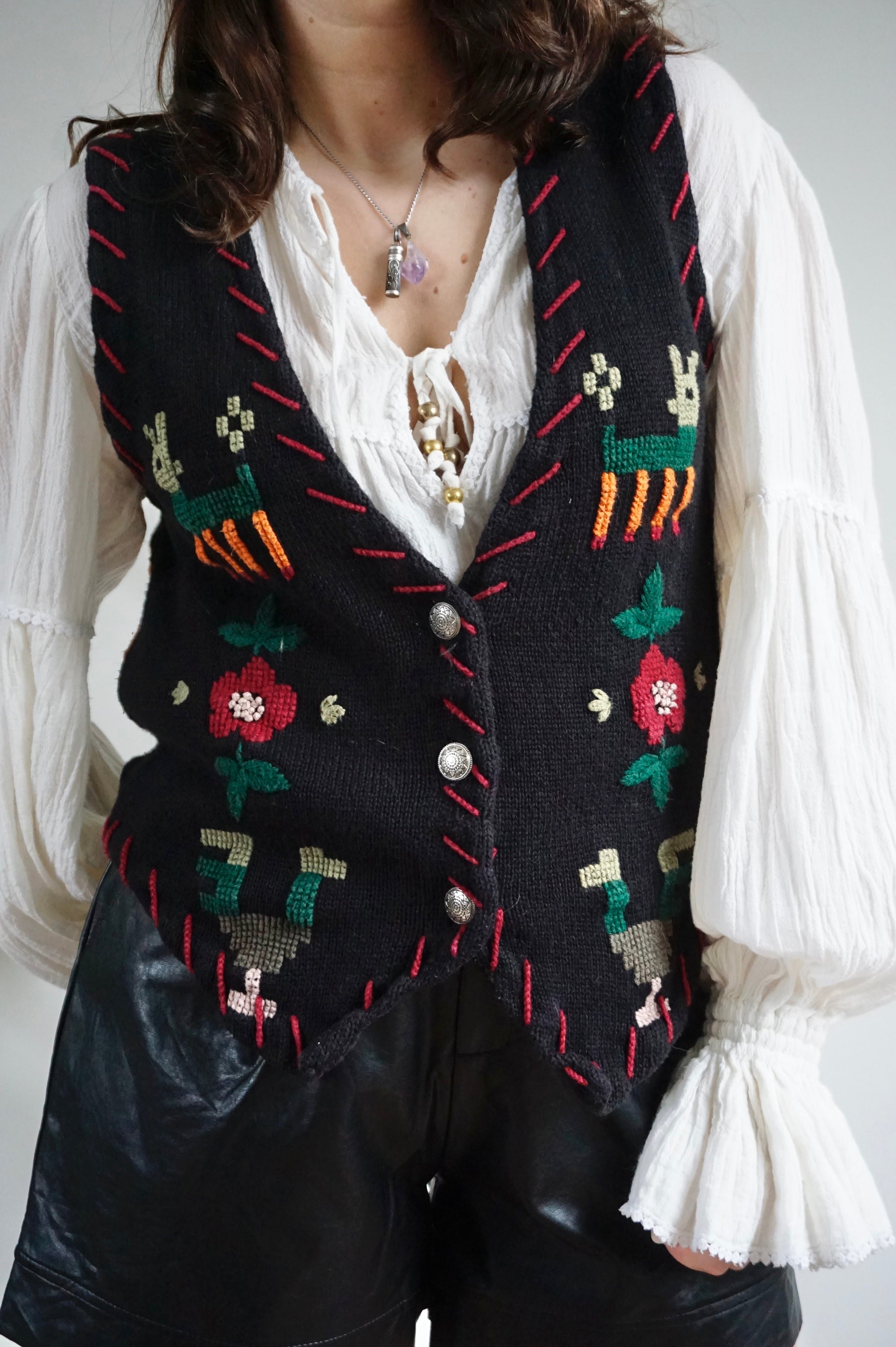 Flowers and Lama’s - Vintage Gilet/Waistcoat - M