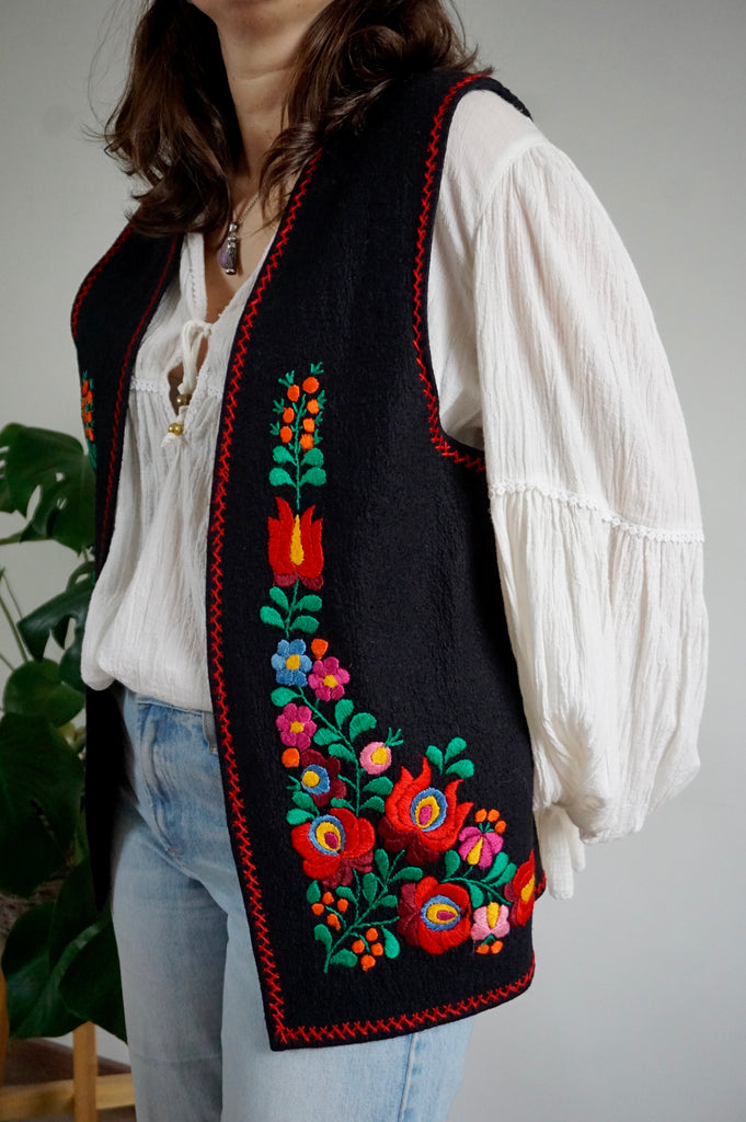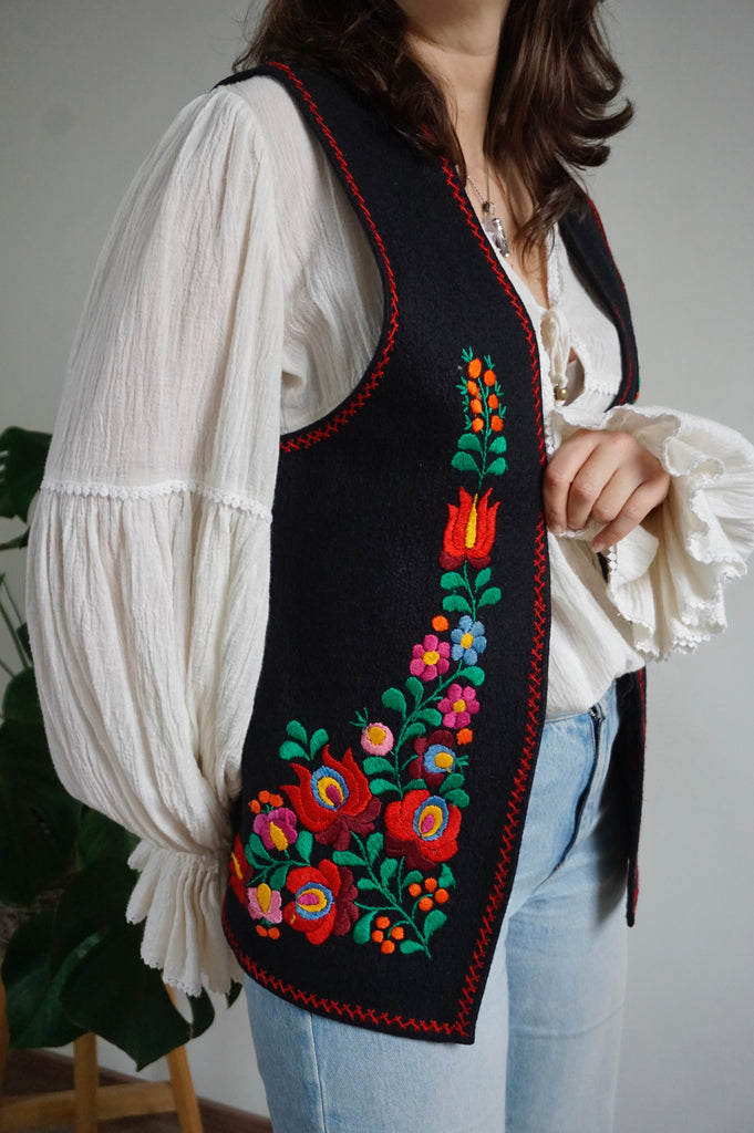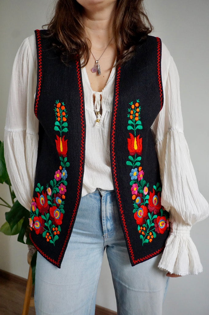 Folklore Comfort - Vintage Waistcoat/Gilet - Embroidered - Wool - L