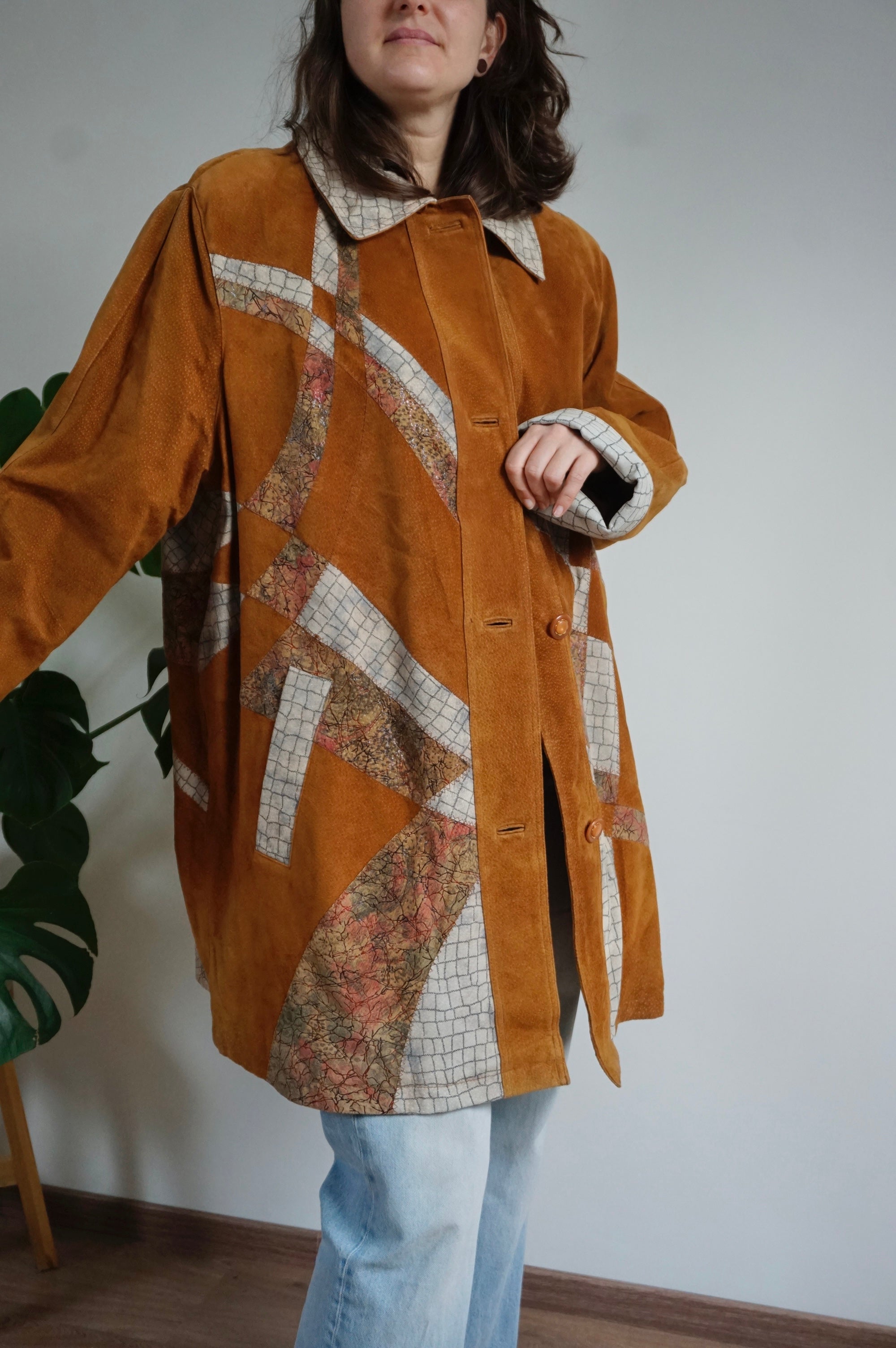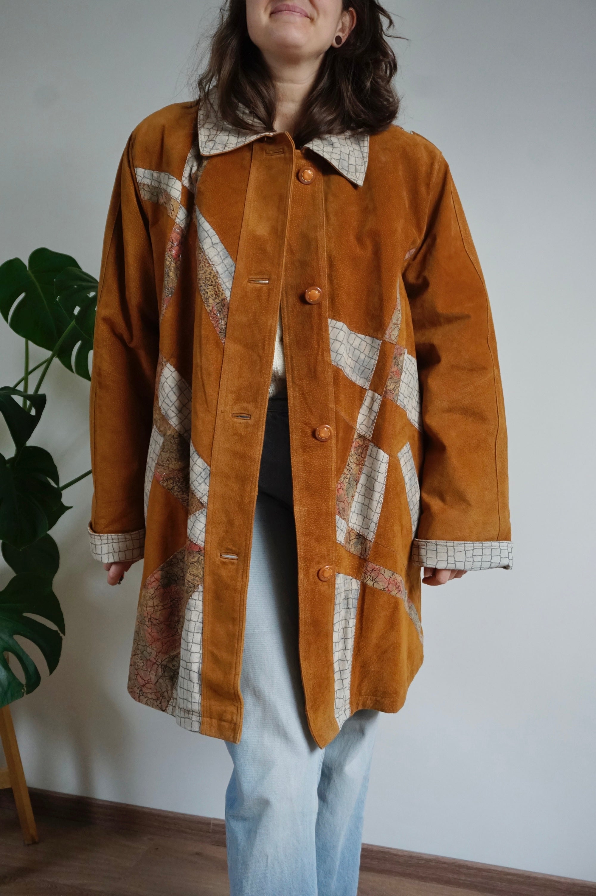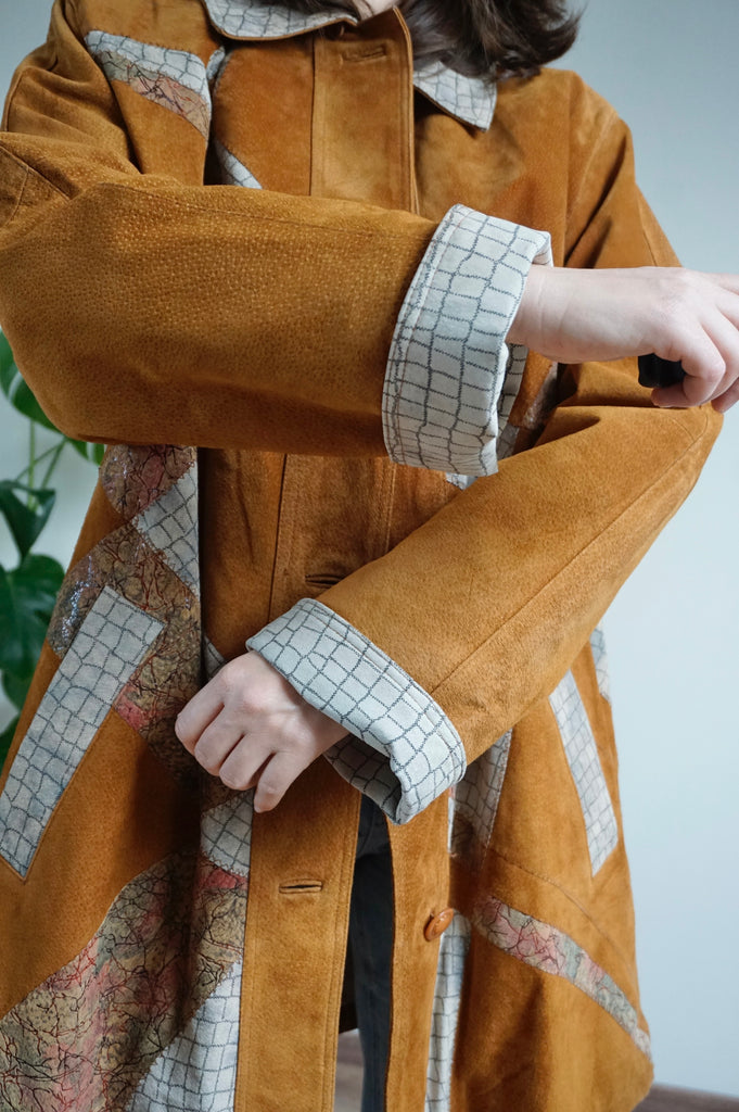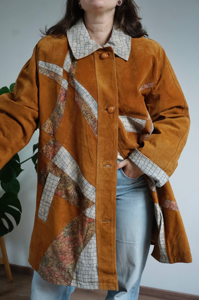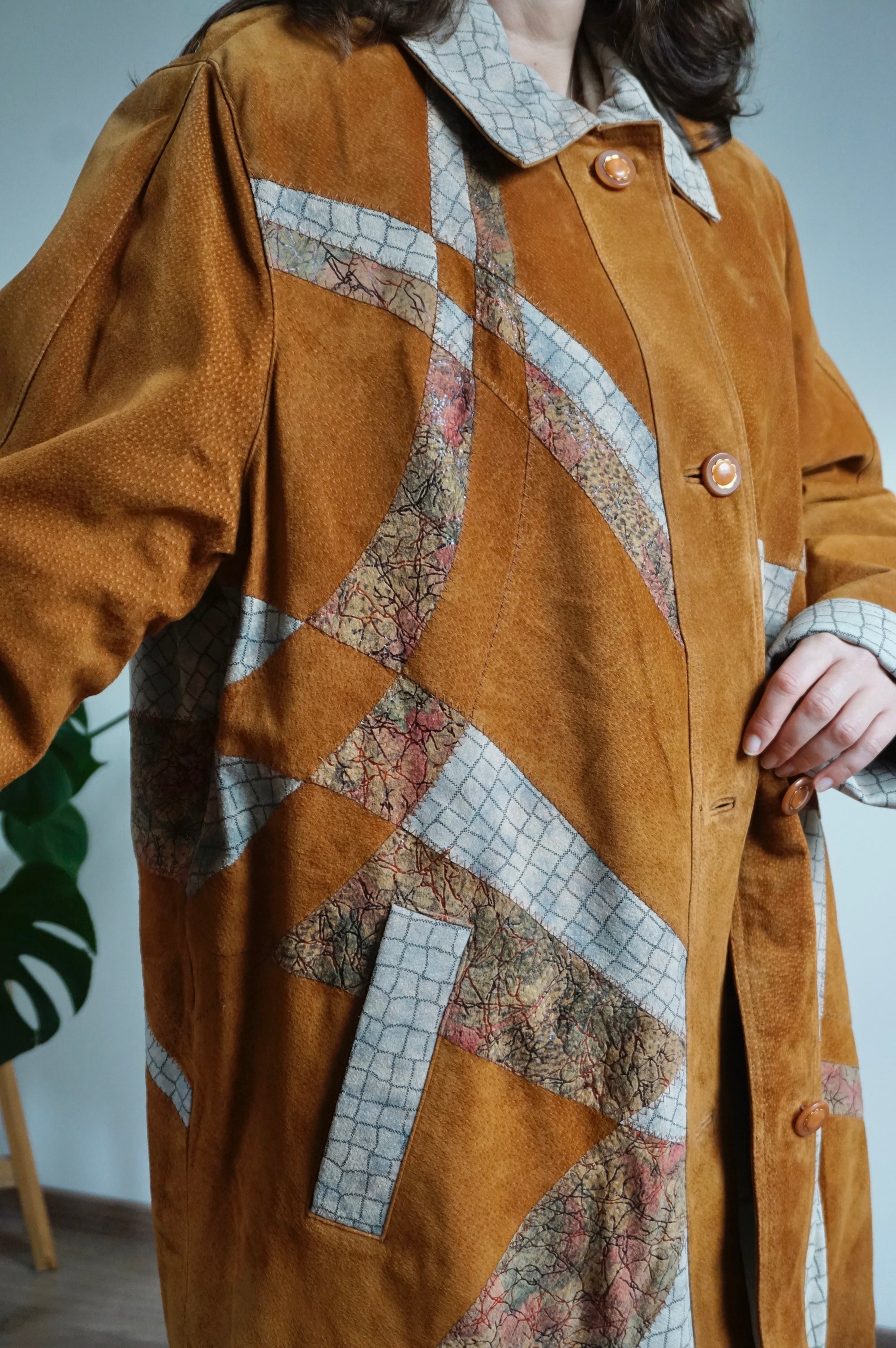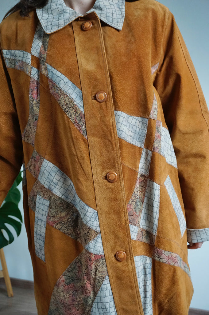 Patchwork Art - Bintage Suède Leather Trenchcoat - L/XL