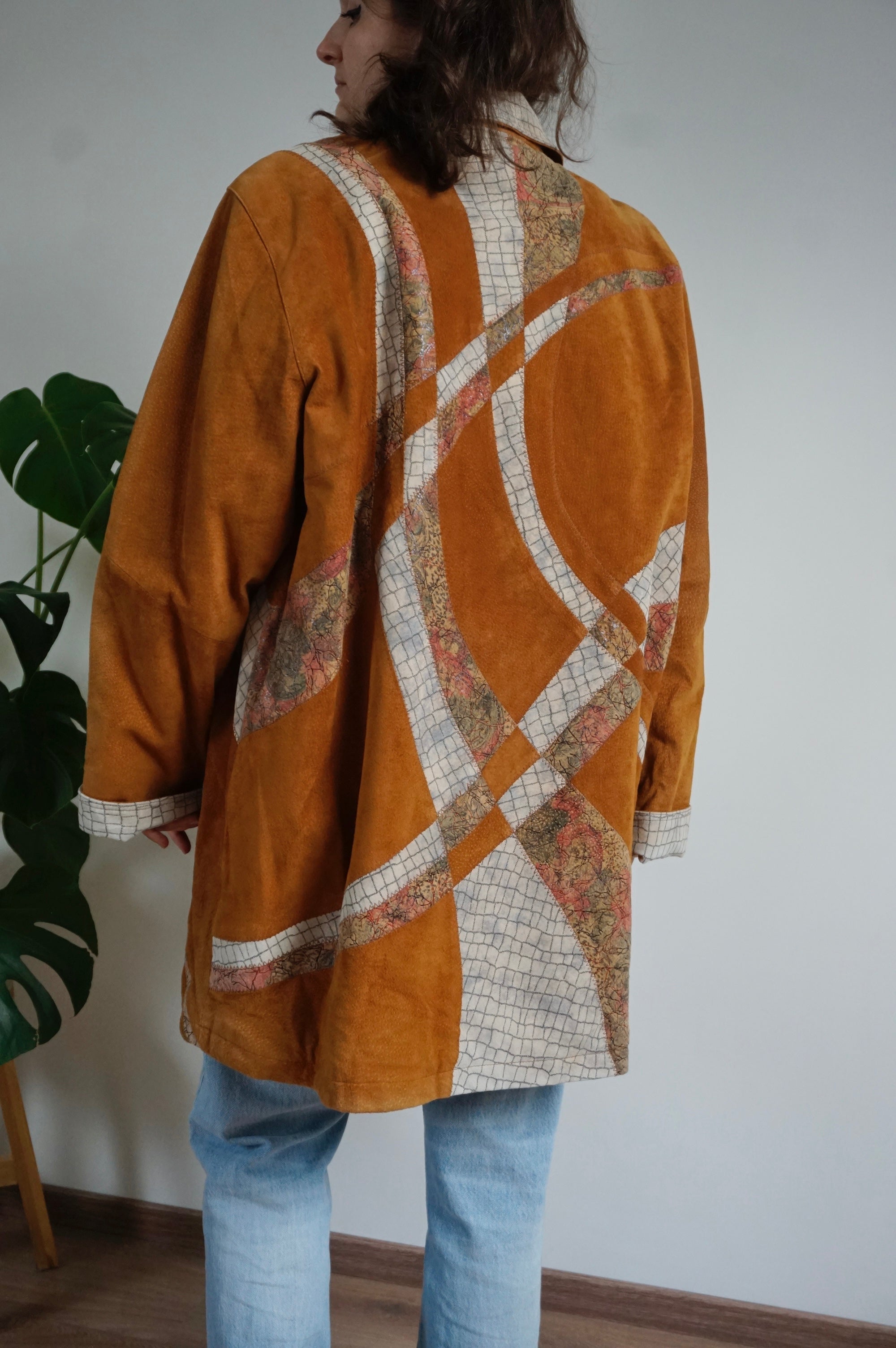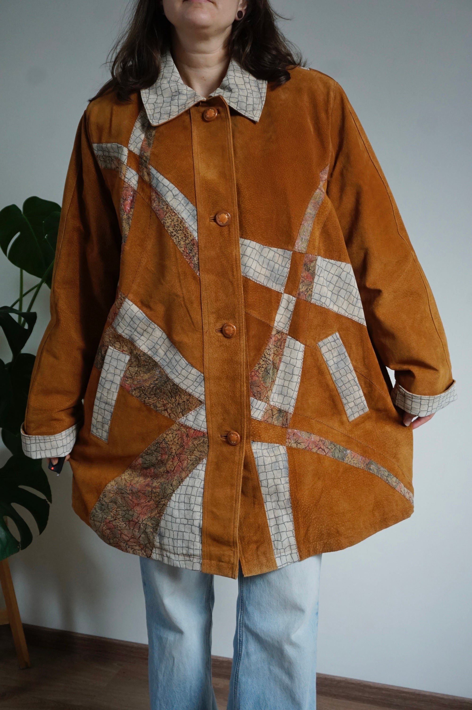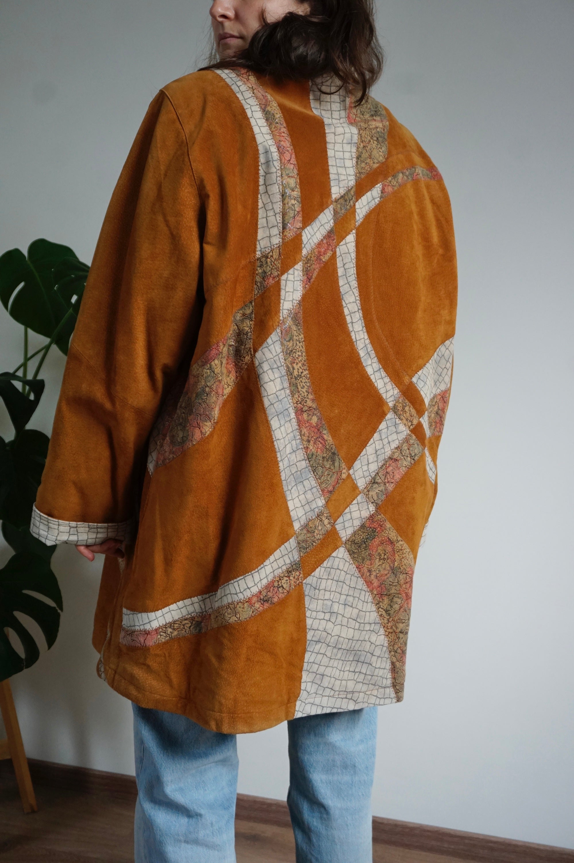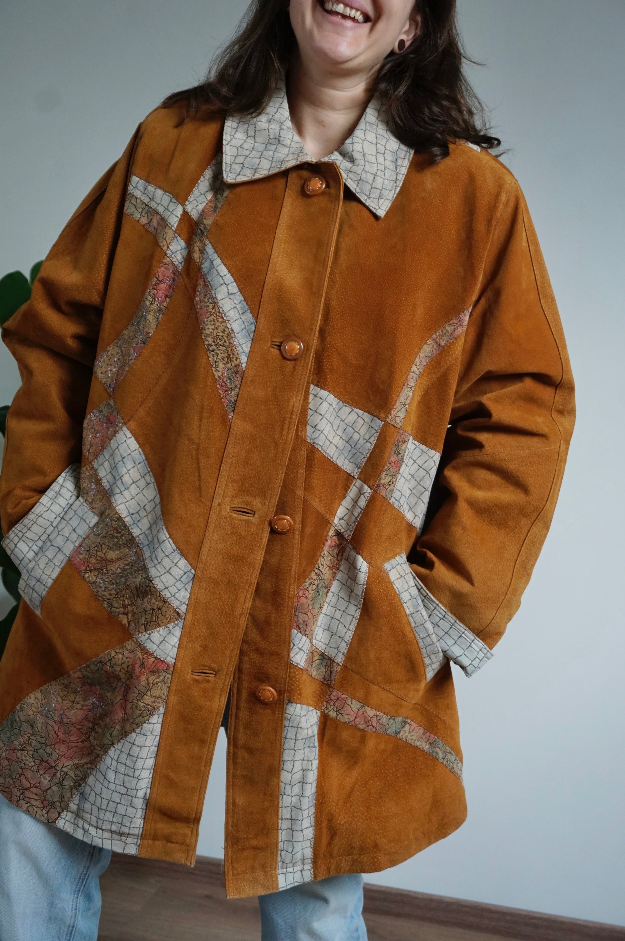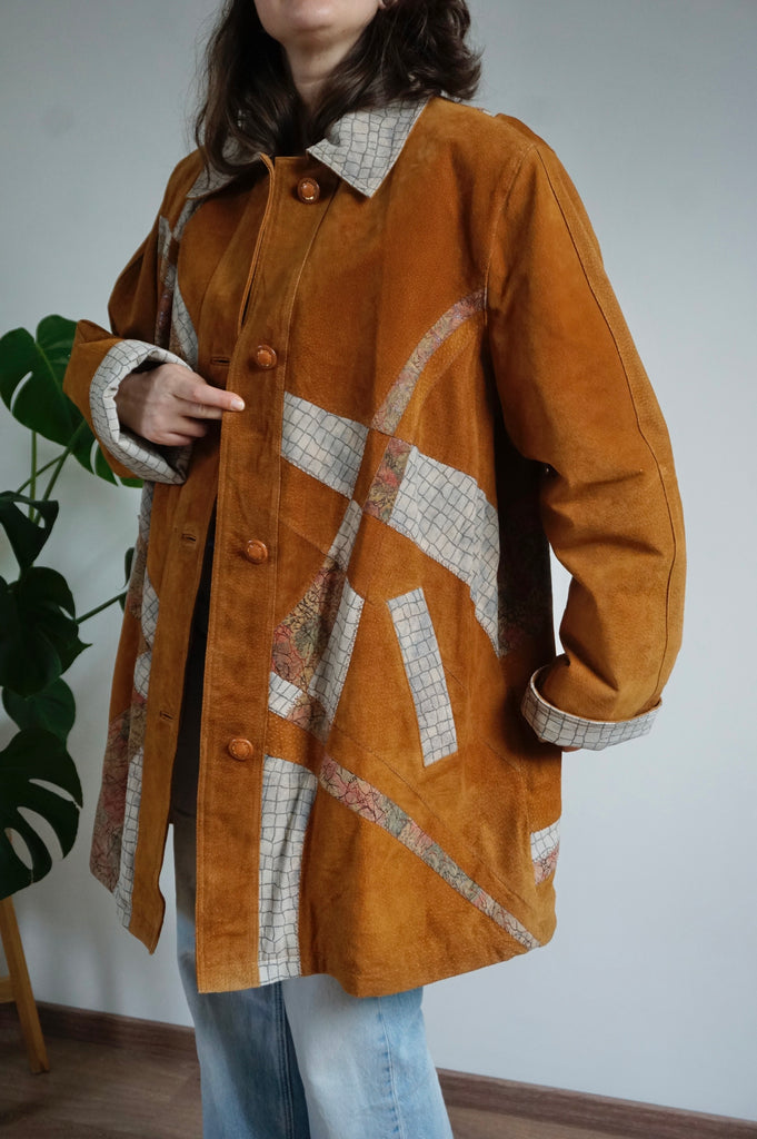 Patchwork Art - Bintage Suède Leather Trenchcoat - L/XL