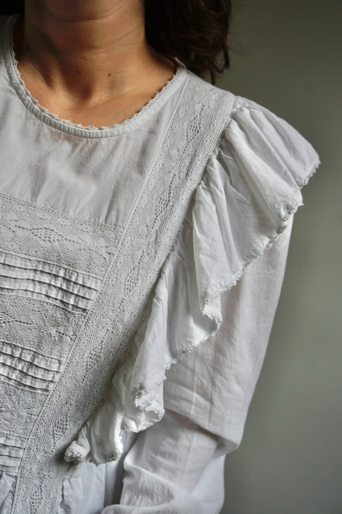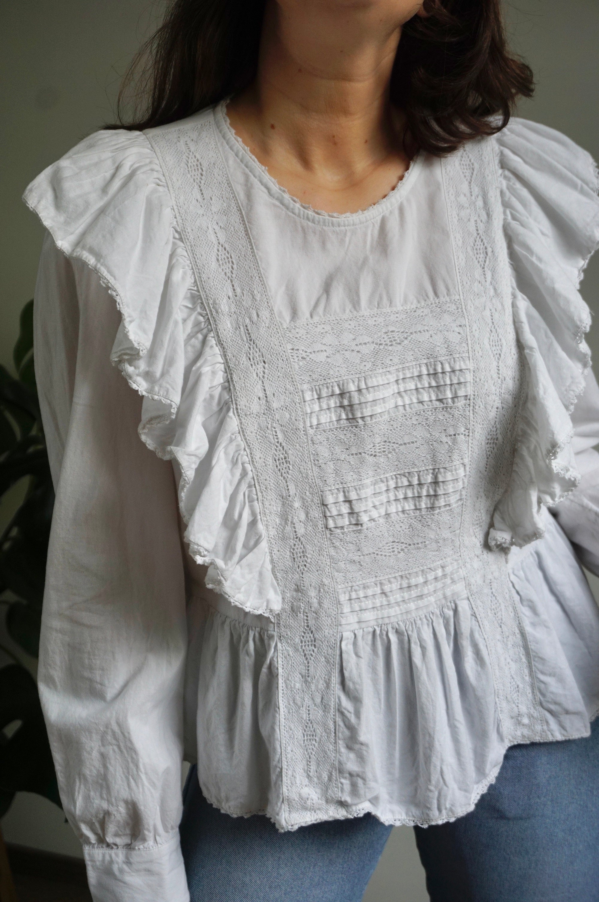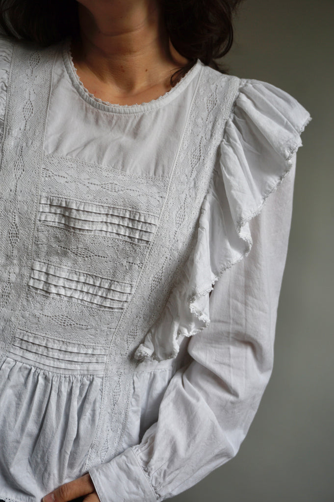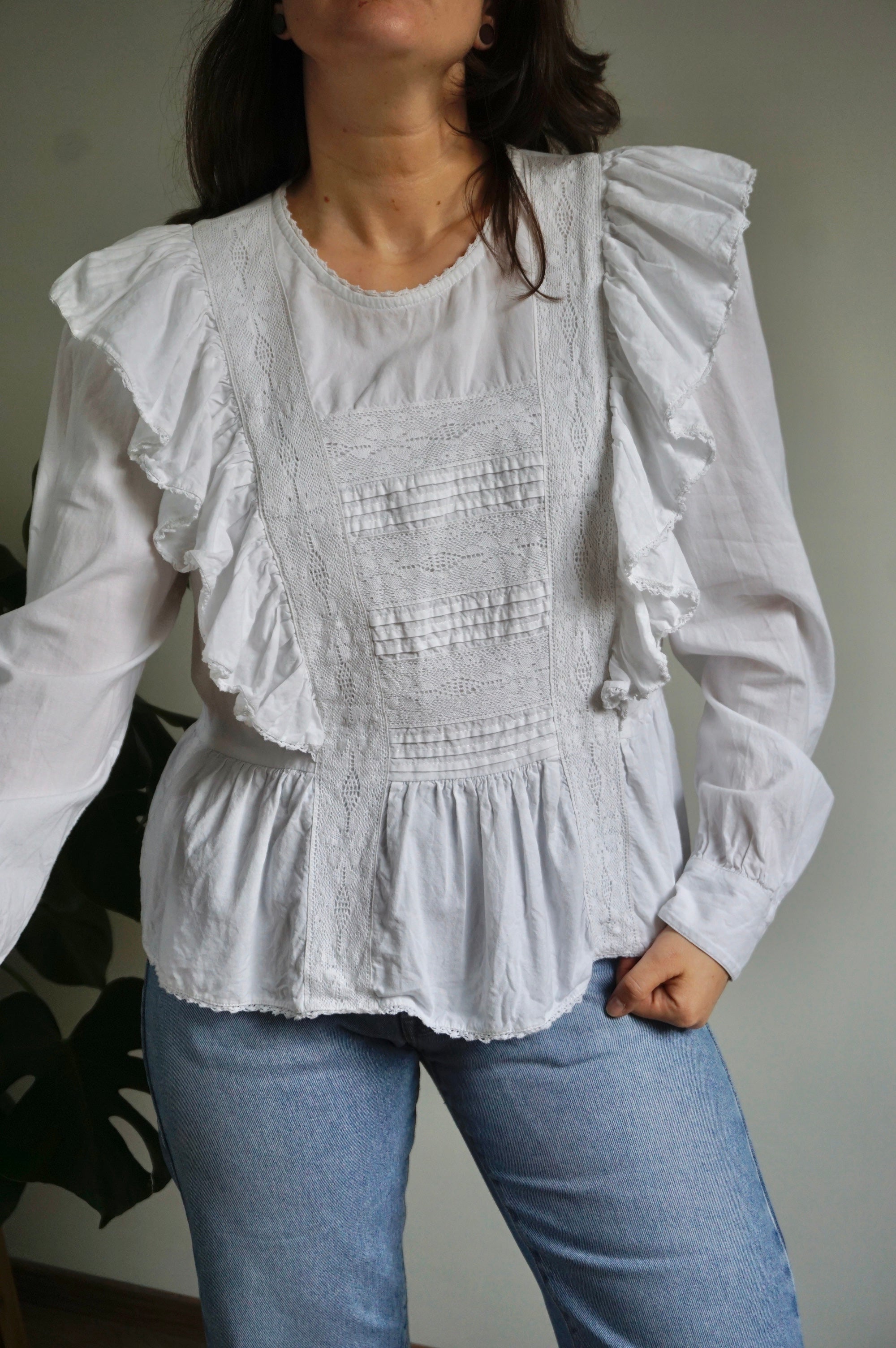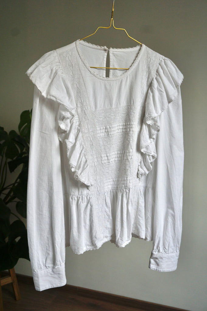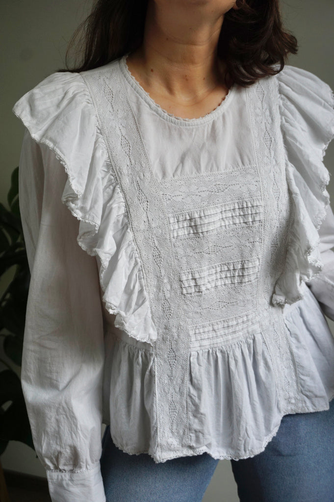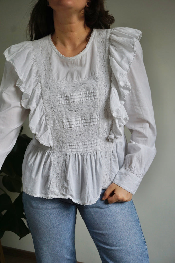 Ruffle Princess - Vintage Blouse - Cotton - M