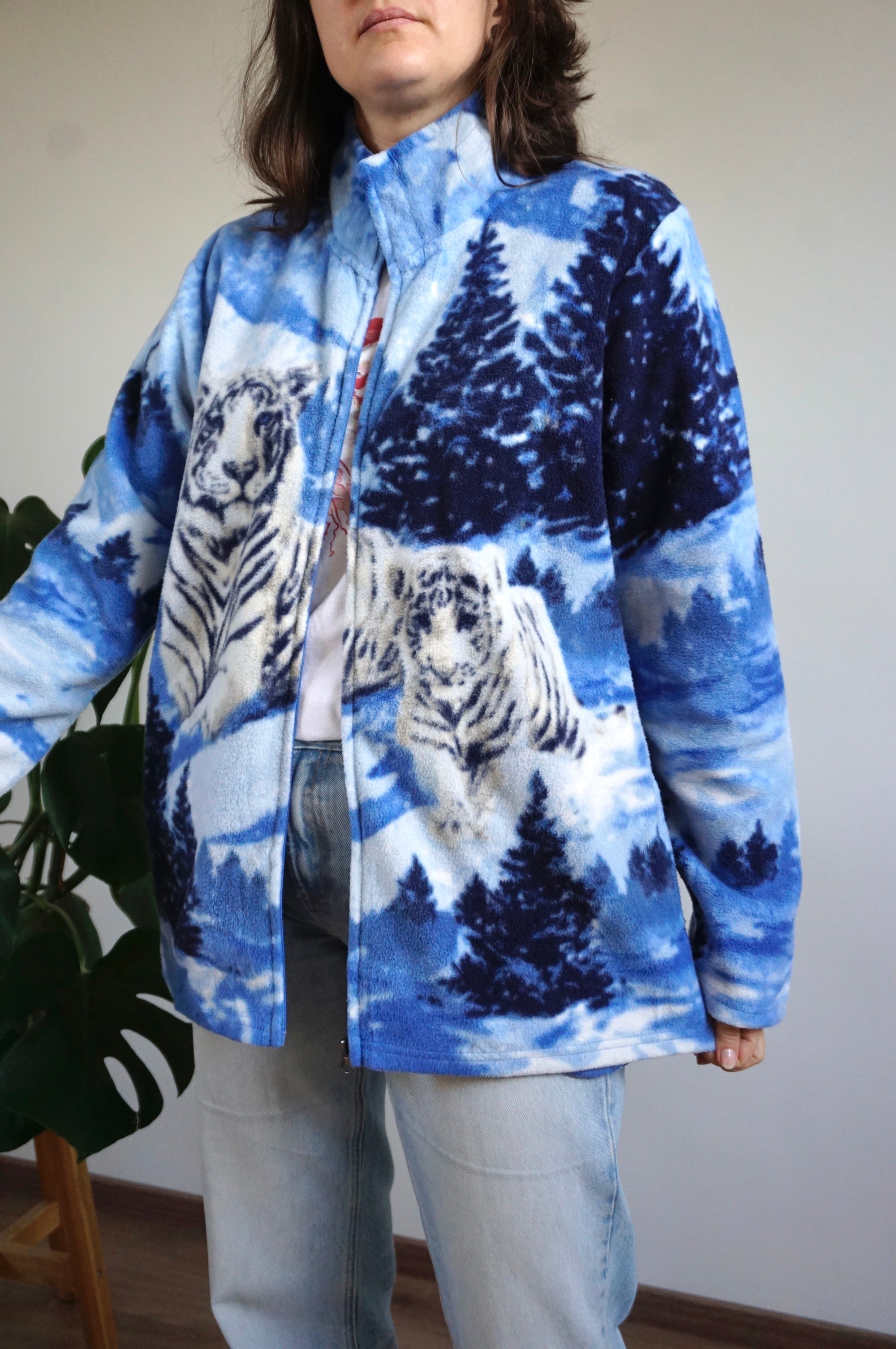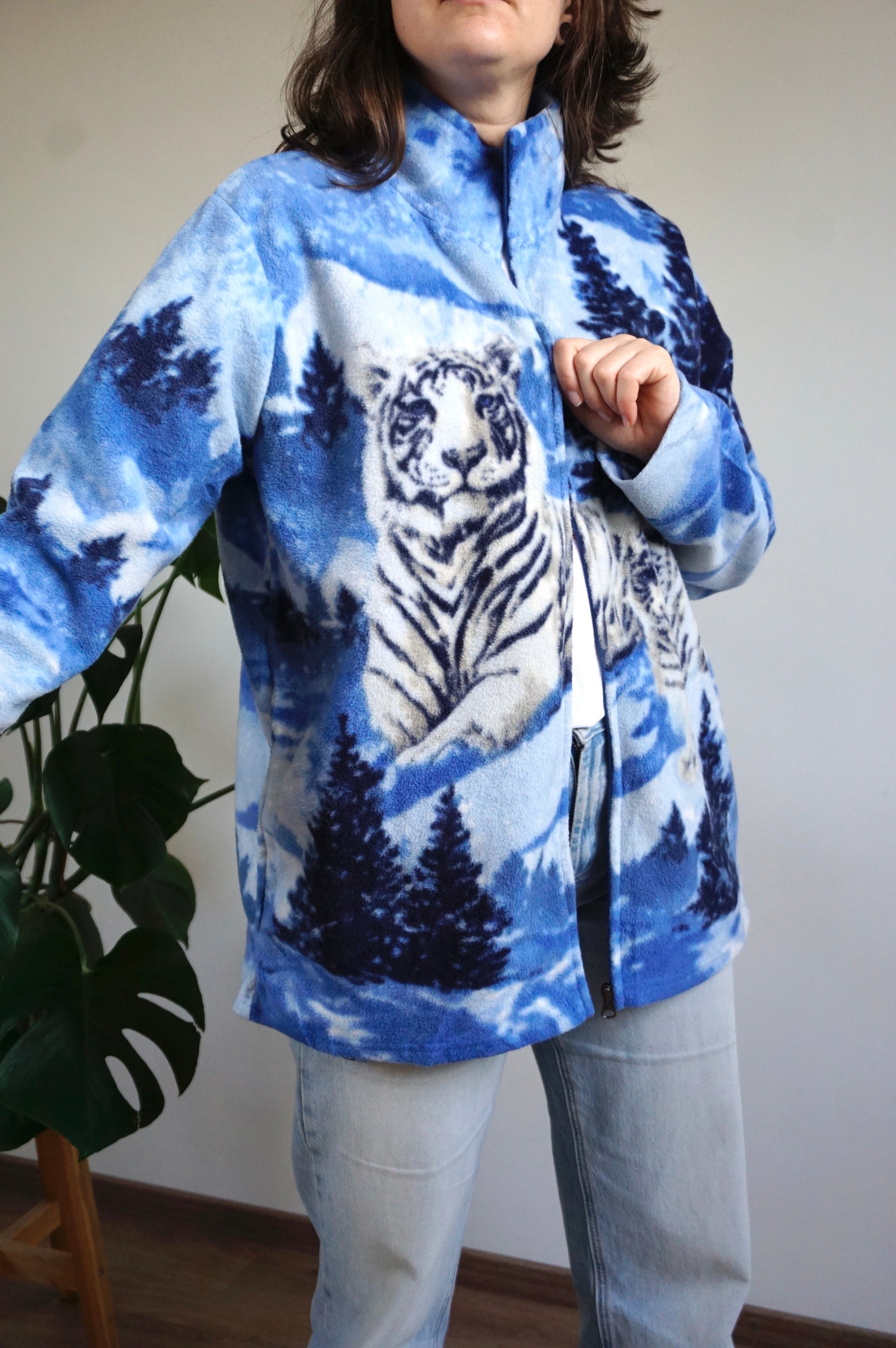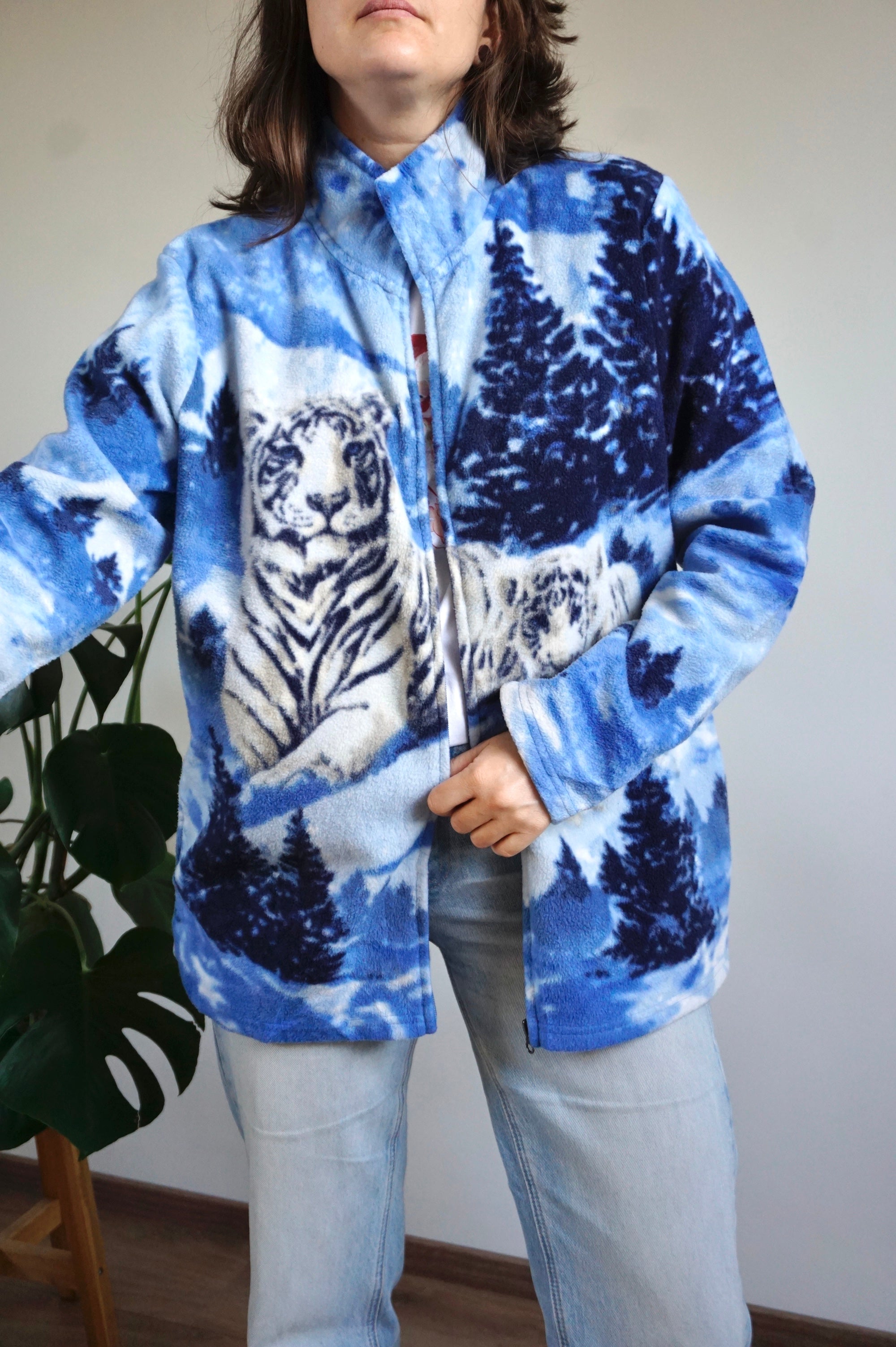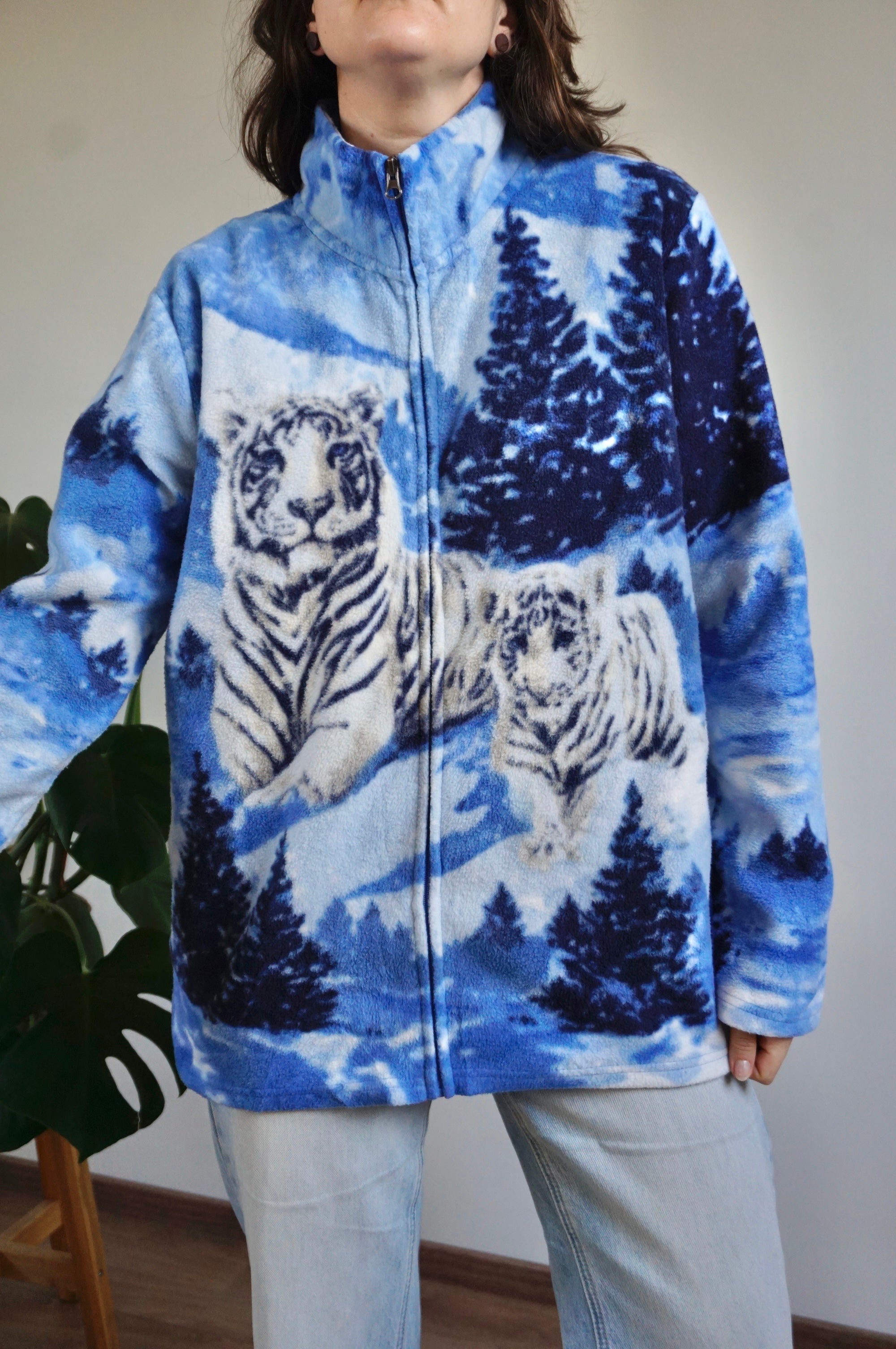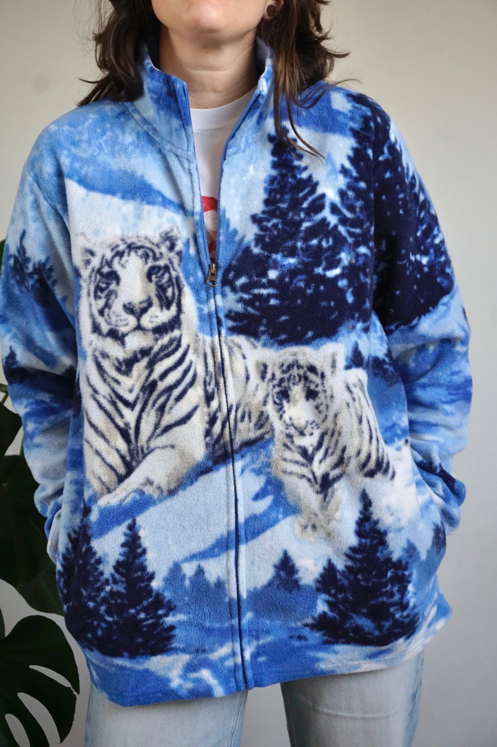 (Snow) Tiger King - Vintage Fleece Cardigan - L