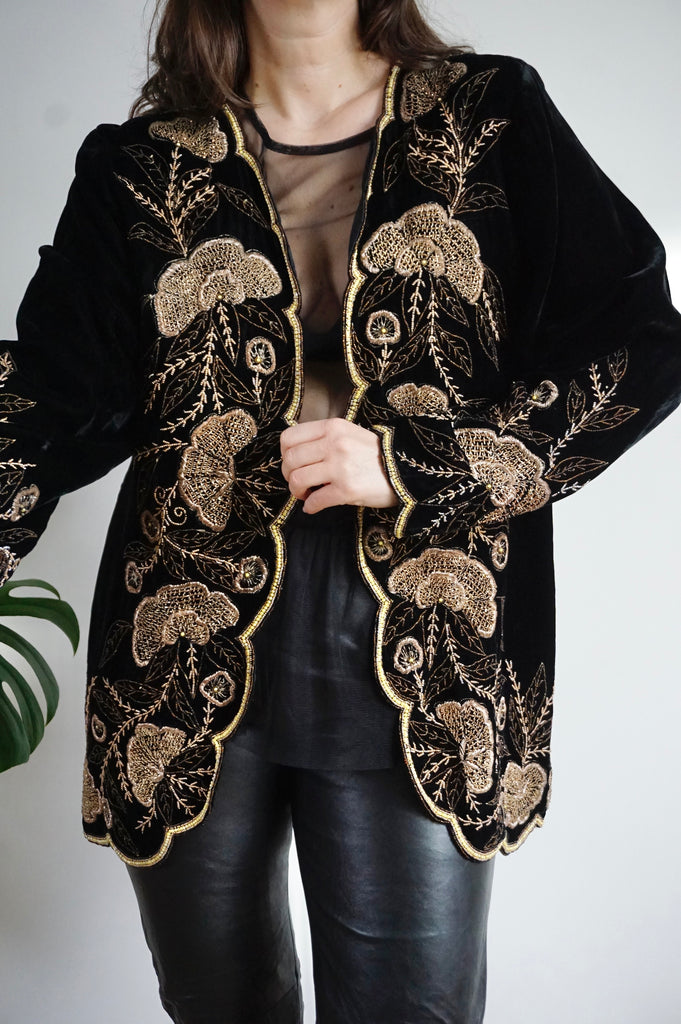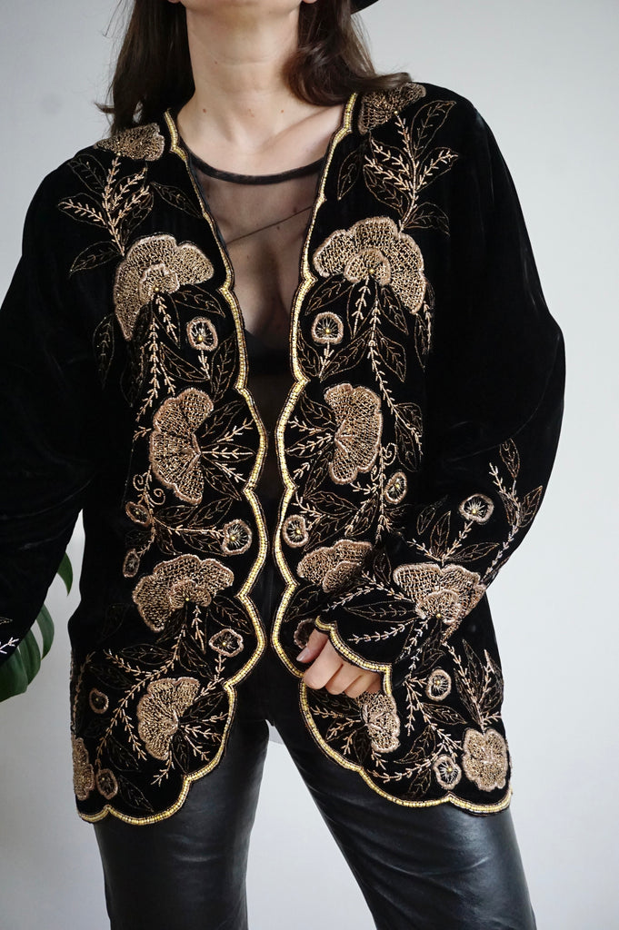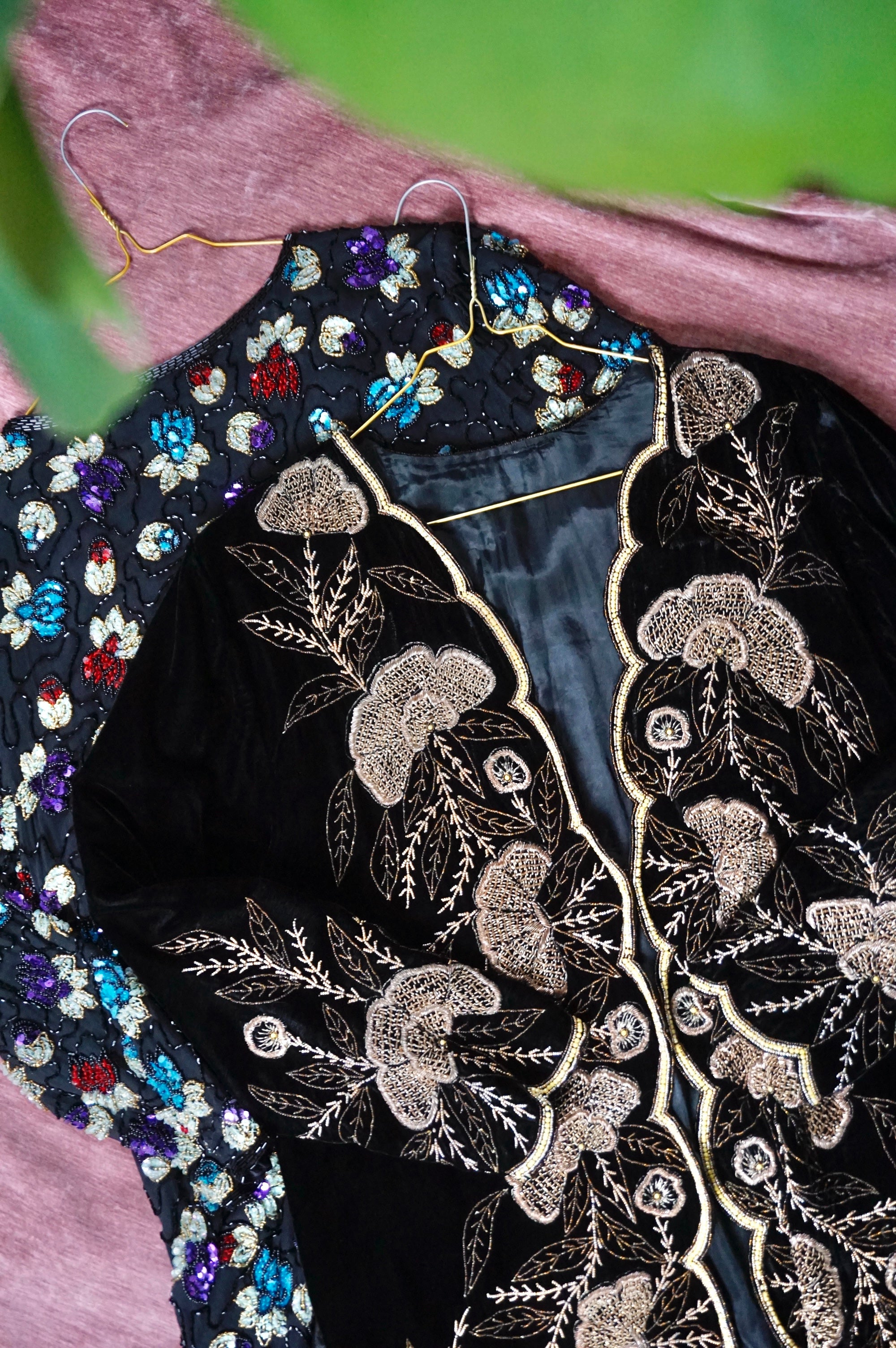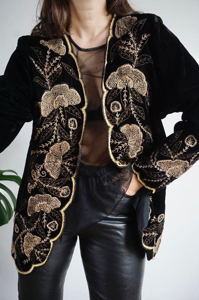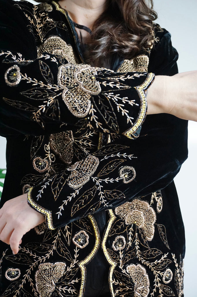 The Holy Grail - Vintage Velvet Blazer - Embroidered & Beaded details - L