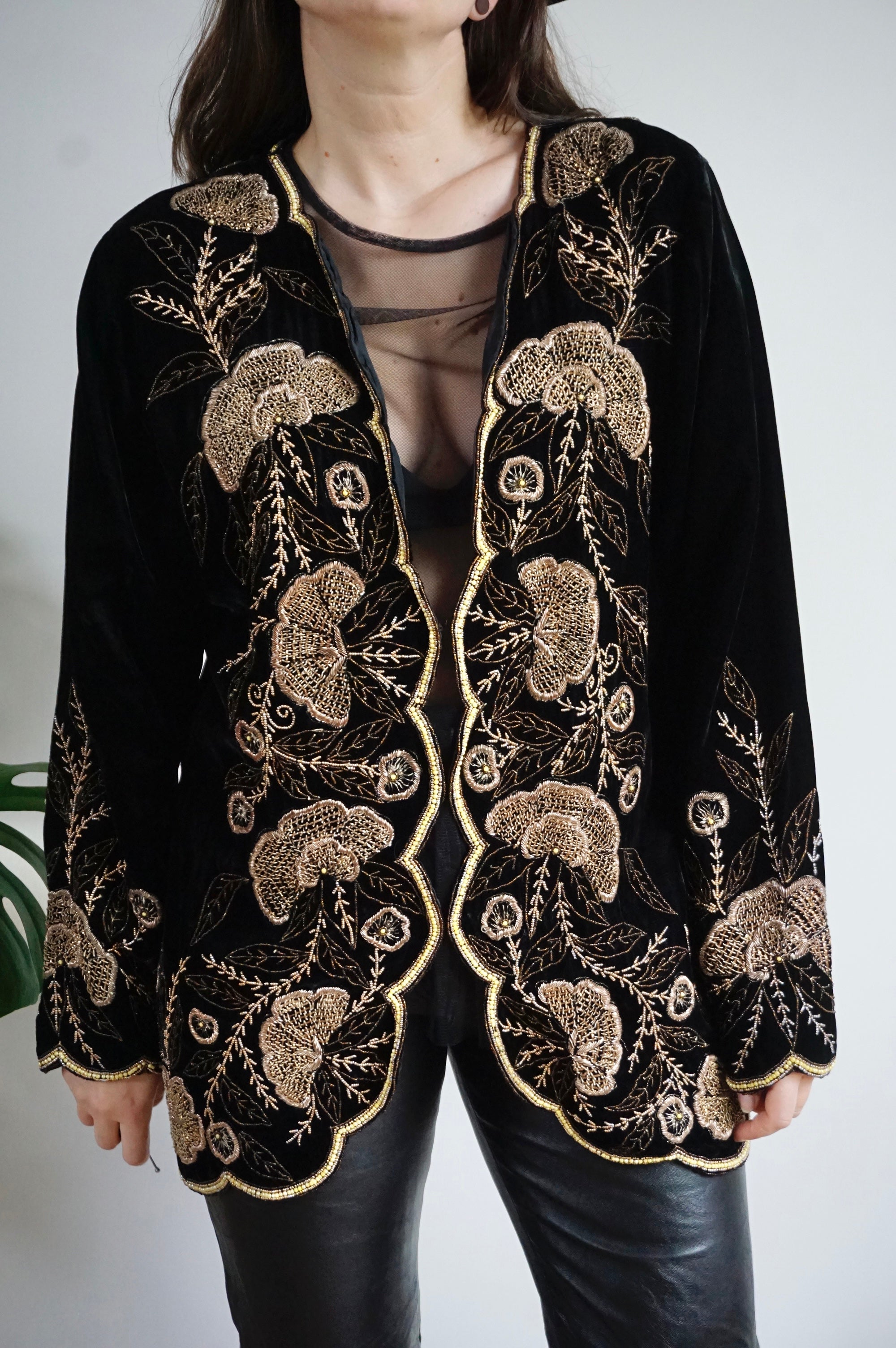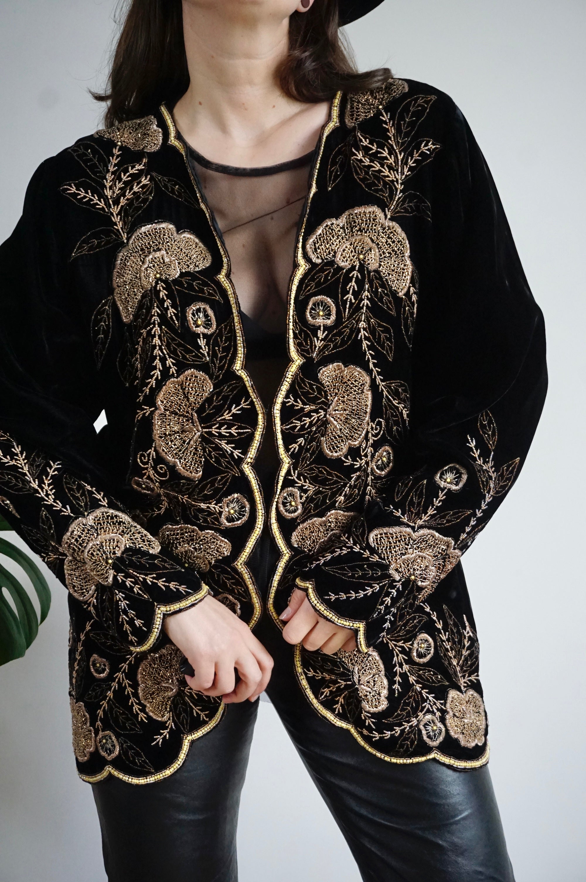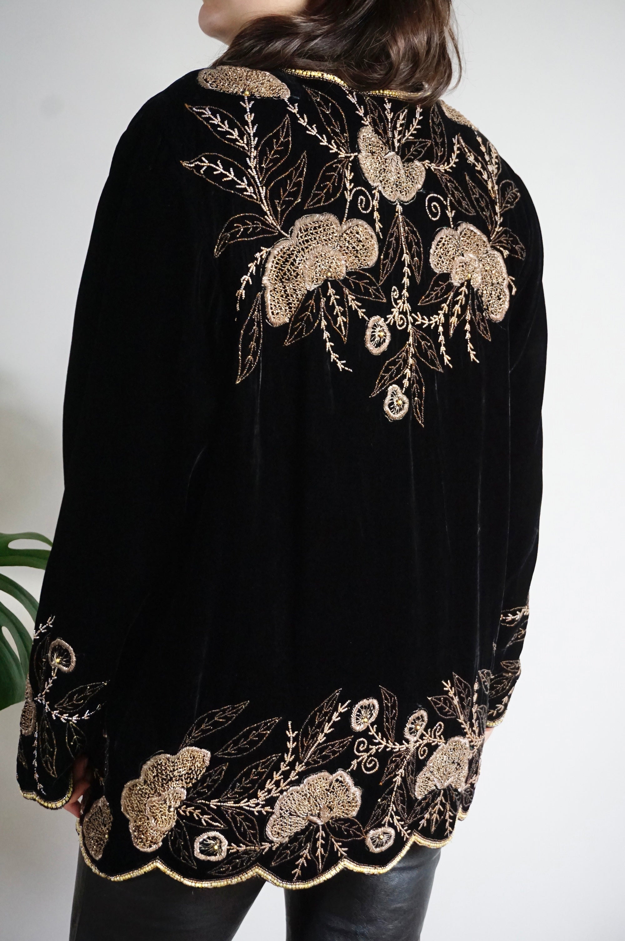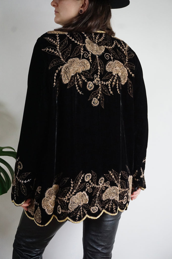 The Holy Grail - Vintage Velvet Blazer - Embroidered & Beaded details - L